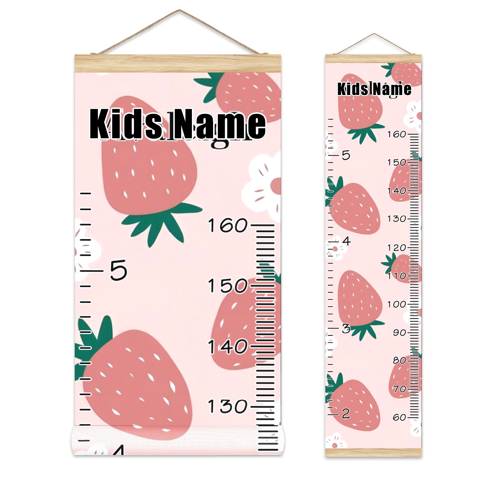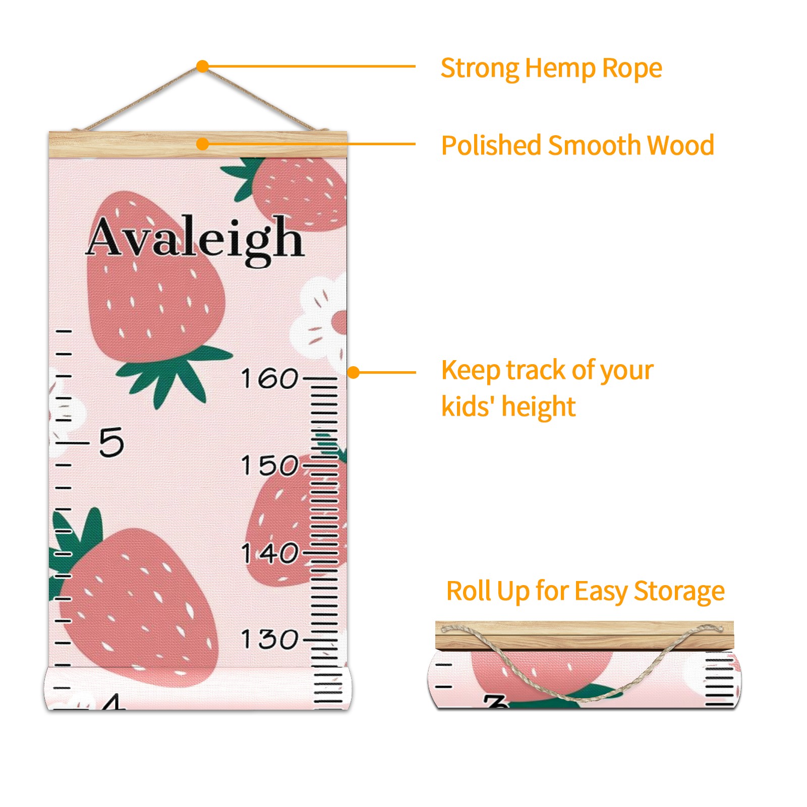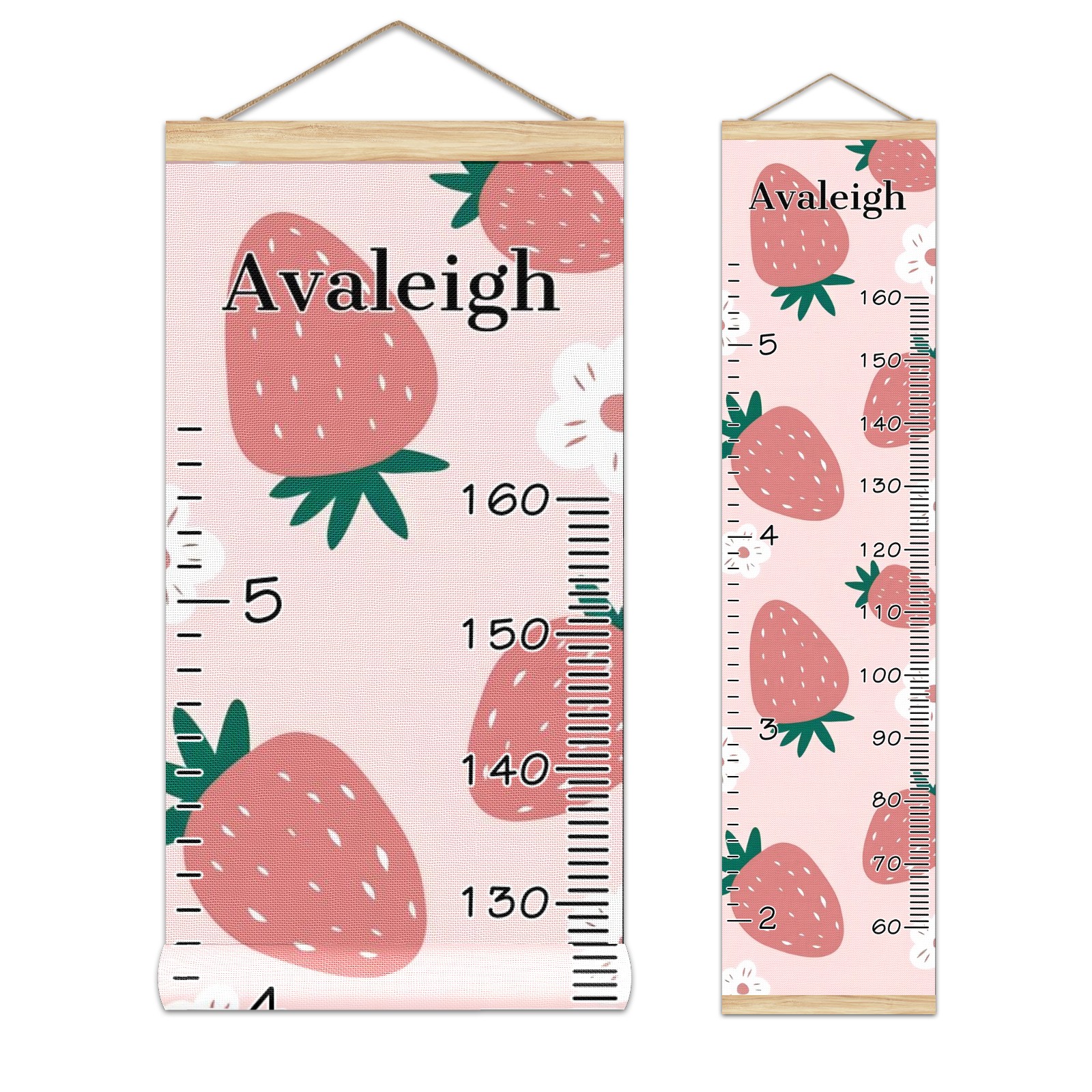 Personalized Kids Name Growth Chart Ruler for Wall Wood Frame Canvas Height Measure Chart 13.4x56 in Hanging Growth Chart Strawberry11.24 Boys Girls Room Decor