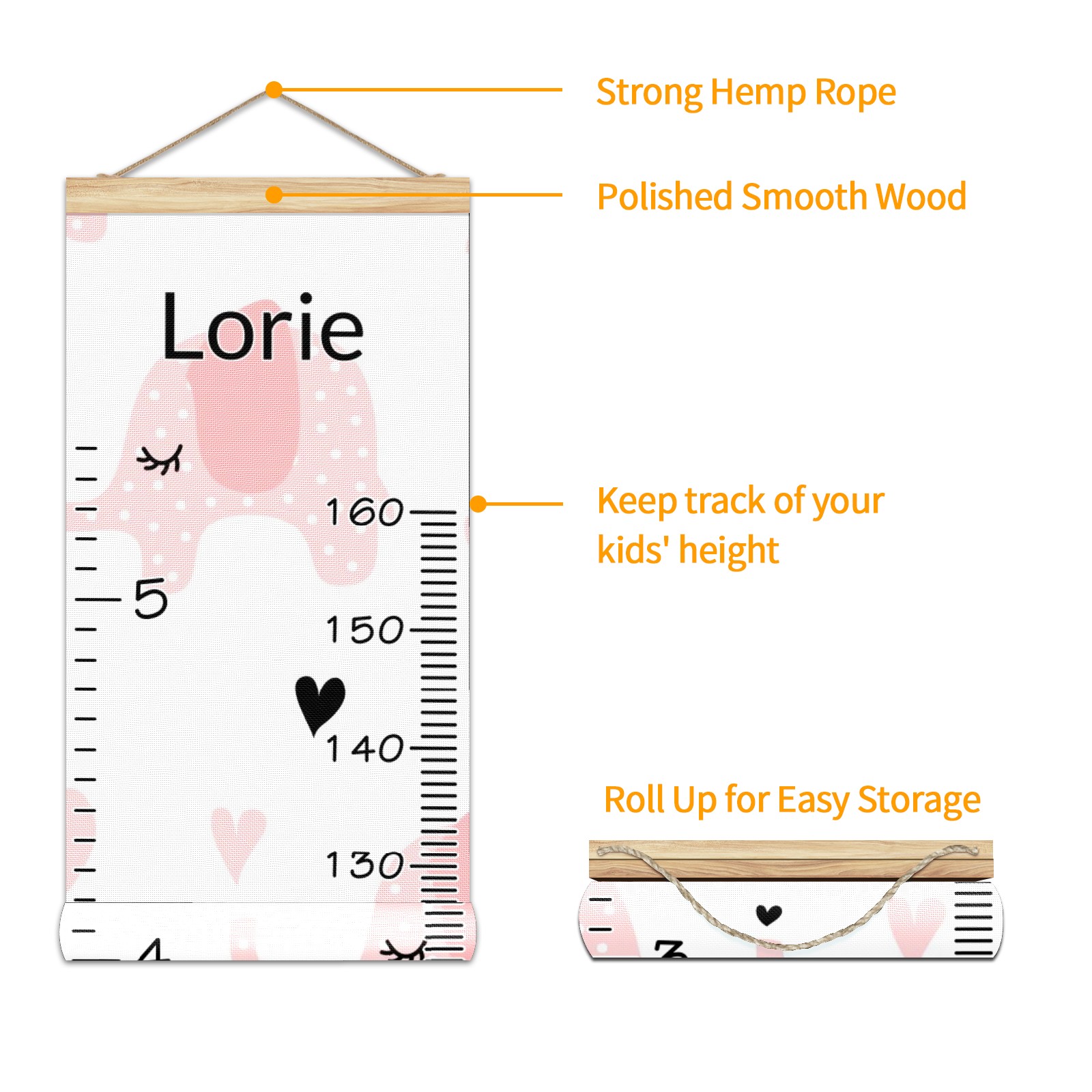 • <p><b>Features:</b></p> <p>Rope for Hanging</p> <p>Material: Linen + Wood</p> <p>Dimensions: 13.4x56 inches</p> <p>Package Included: 1 * Baby Growth Chart</p> <p><b>Baby height growth chart can be used anywhere</b></p> <p>Ideal for kids nursery decoration, kids bedroom, interior walls or windows, playroom, living room, homedecoration.Add name and make the growth chart special!</p> <p><b>Easy to fold and carry</b></p> <p>With rope at the top of the growth chart, it is easy to install and remove.You can fold it and unfold any time any where.</p> <p><b>Perfect Gift Idea for Kids</b></p> <p>Environmental and non-toxic for kids use, it must be a perfect gift for baby, kids, girls, and boys.This is a best choice for your friend who have kids or baby as a popular gift.</p> <p><b>Easy to read</b></p> <p>Measurement accrate with 2 scales, Centimeters and feet. The letters are big enough, very easy to read.</p> <p><b>60cm(23.6inch) Over Ground Design</b></p> <p>Not only can protect from dust and other damage, but also will not interfere in floor cleaning.</p>