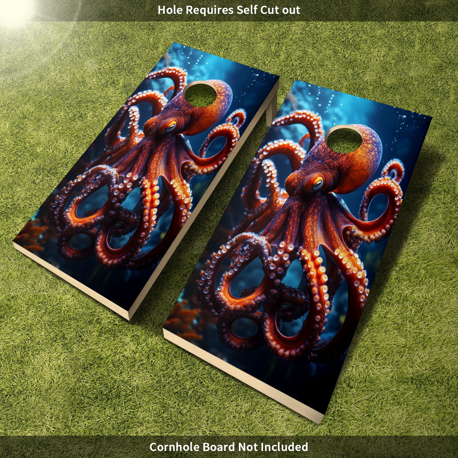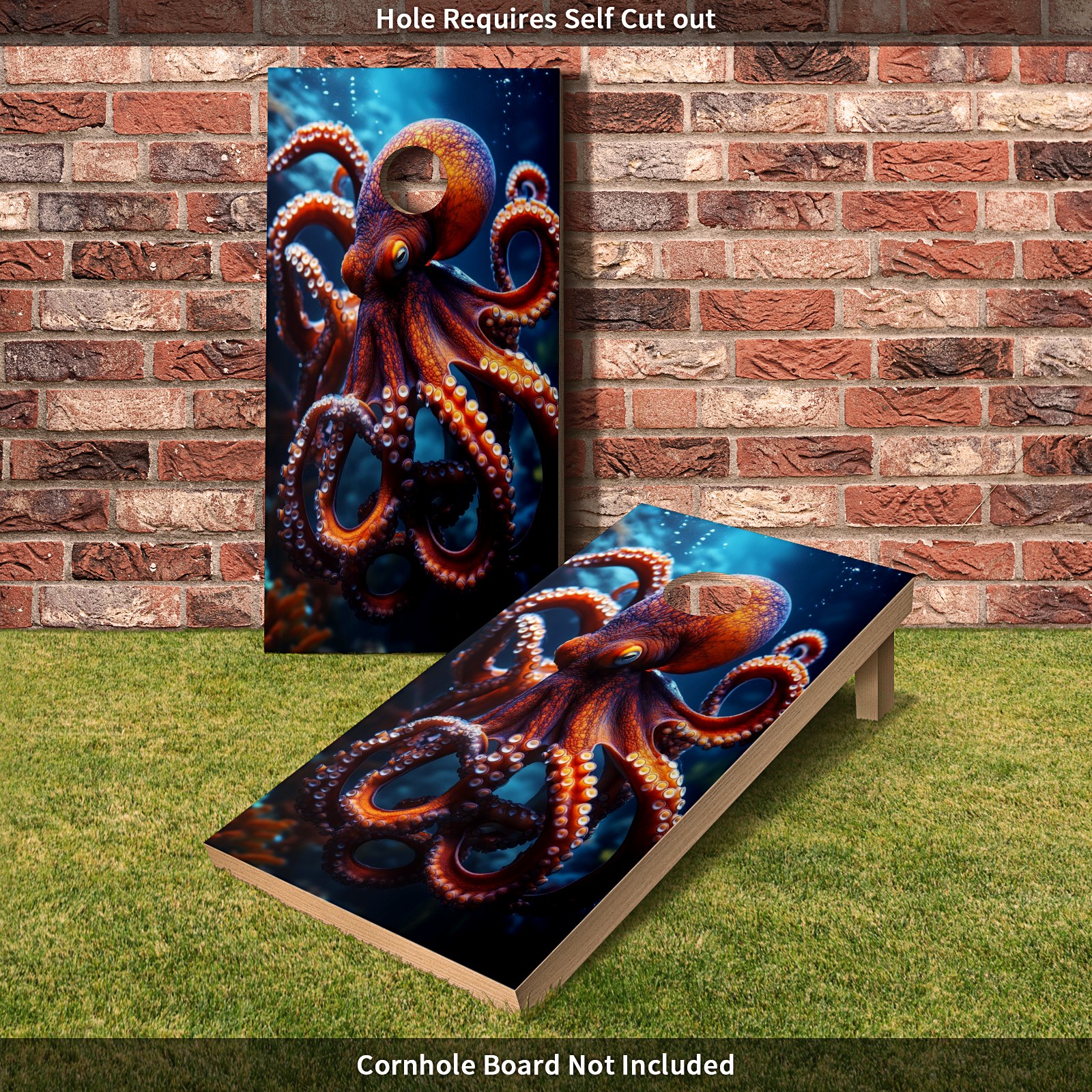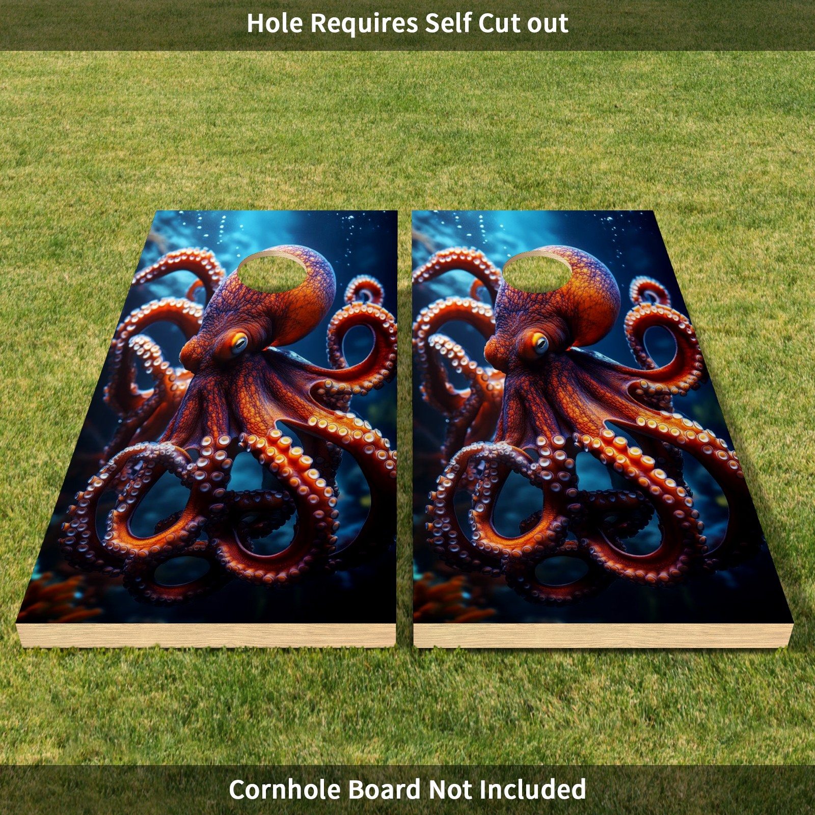 Cornhole Game Sticker- Deep Sea Octopus Vinyl Skin, Perfect for Family Events, Social Gatherings, Decorative Games Stickers Dimensions: 2' x 4' - Set of 2