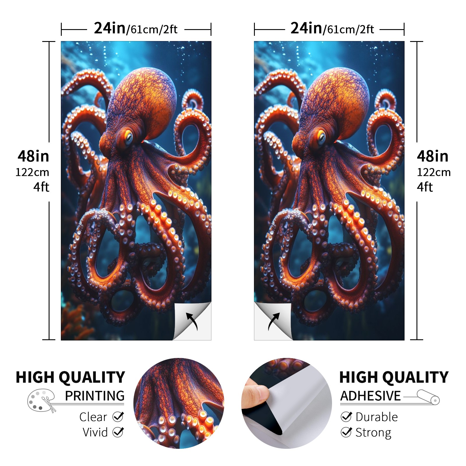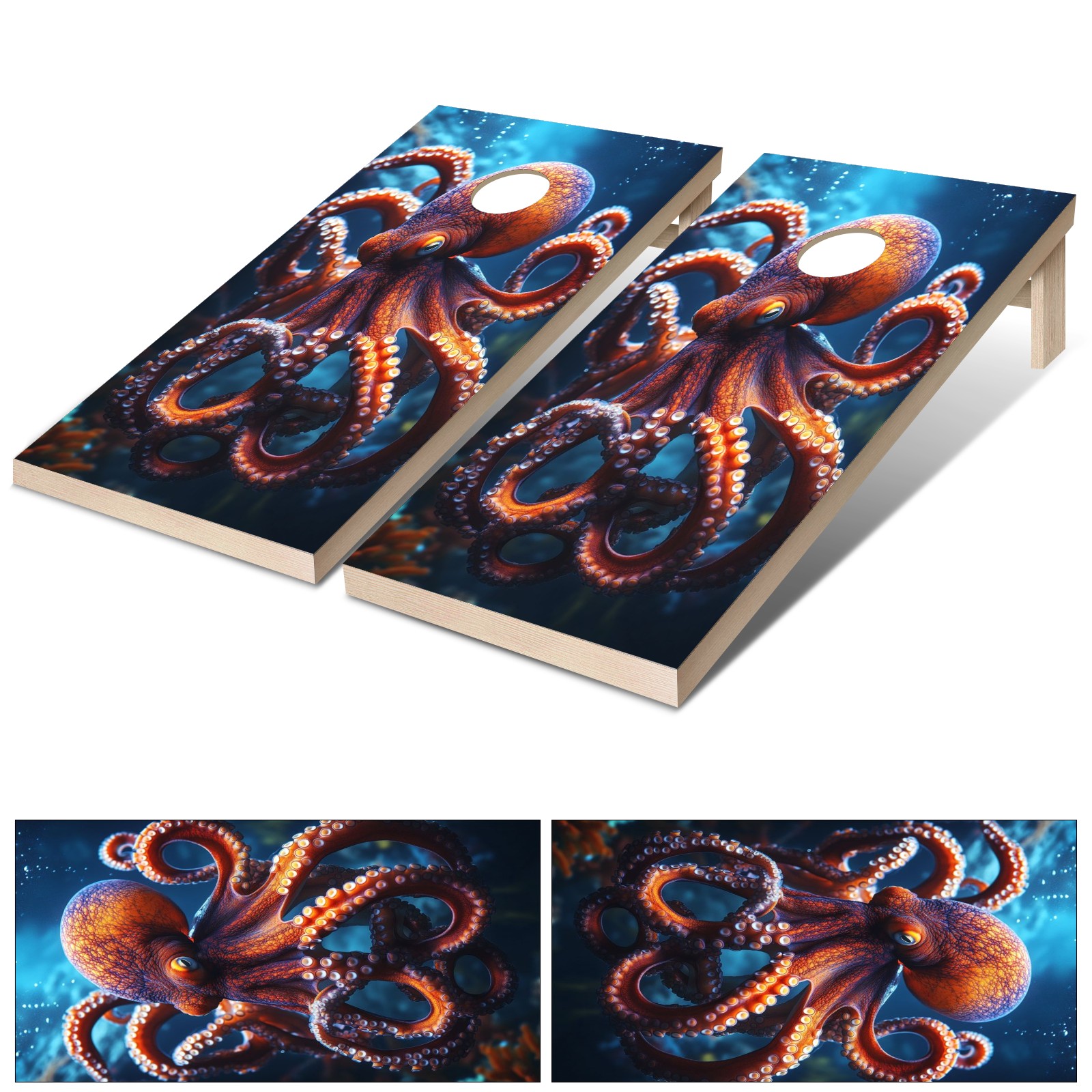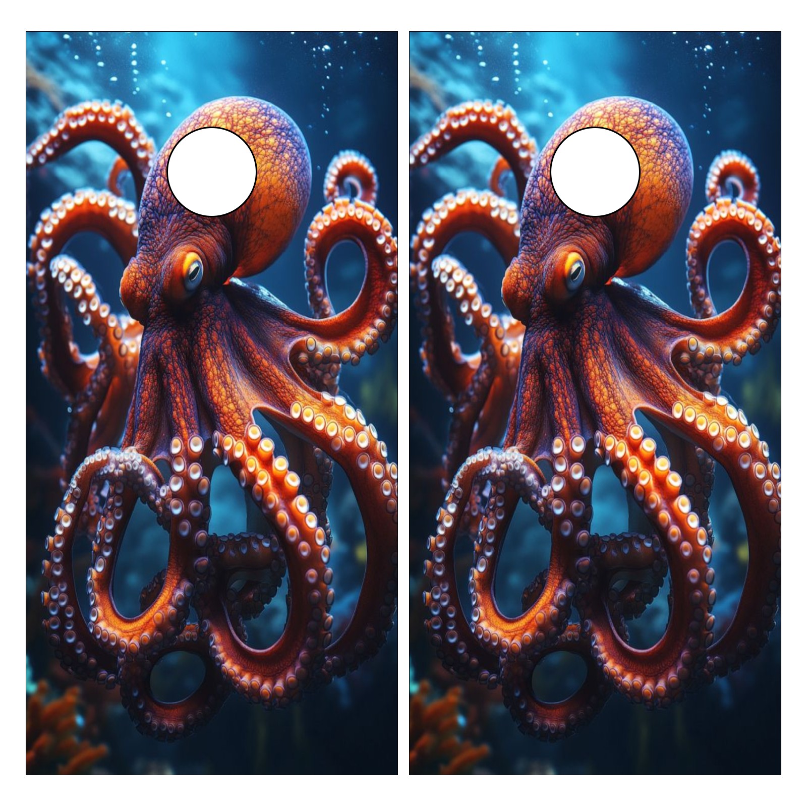 Cornhole Game Sticker- Deep Sea Octopus Vinyl Skin, Perfect for Family Events, Social Gatherings, Decorative Games Stickers Dimensions: 2' x 4' - Set of 2