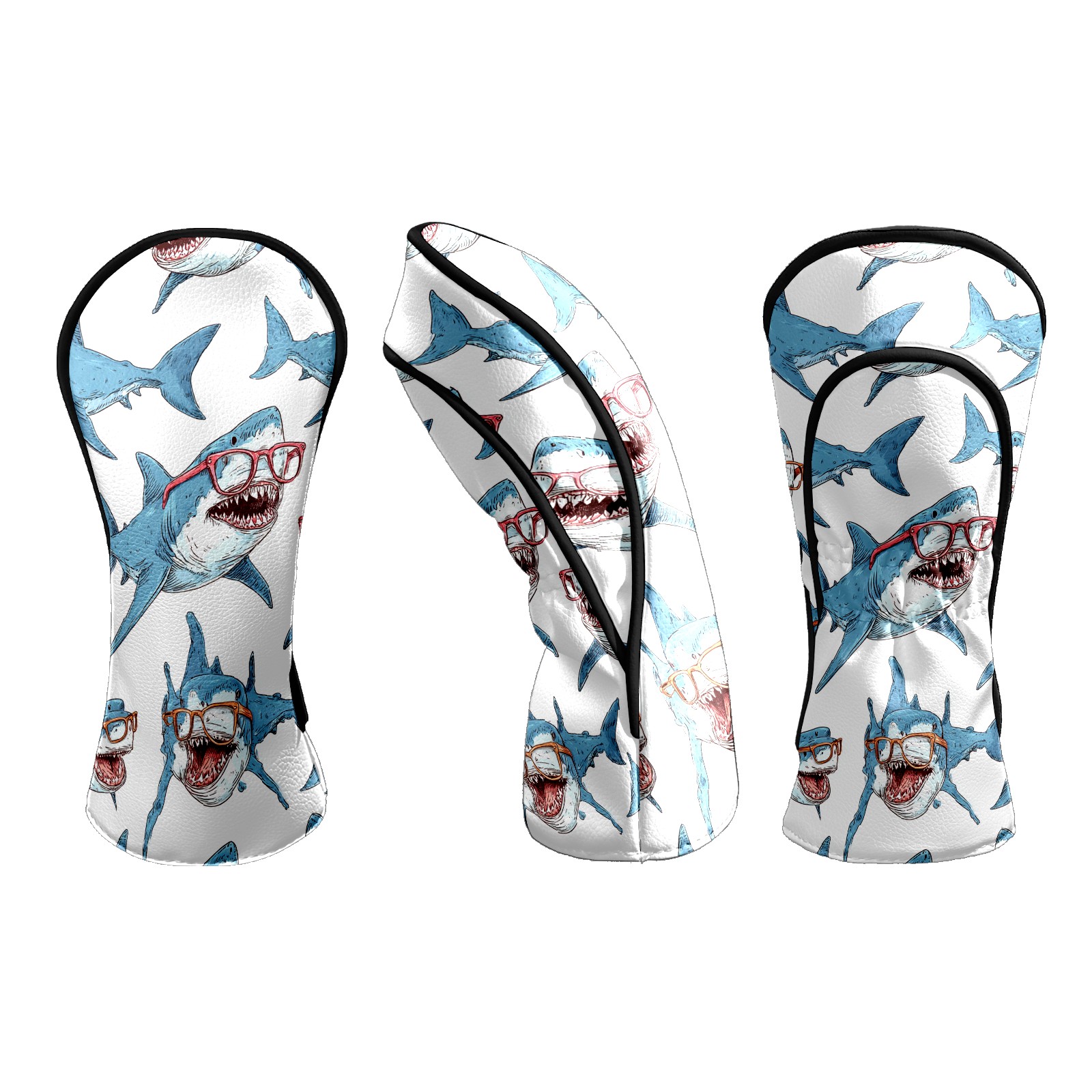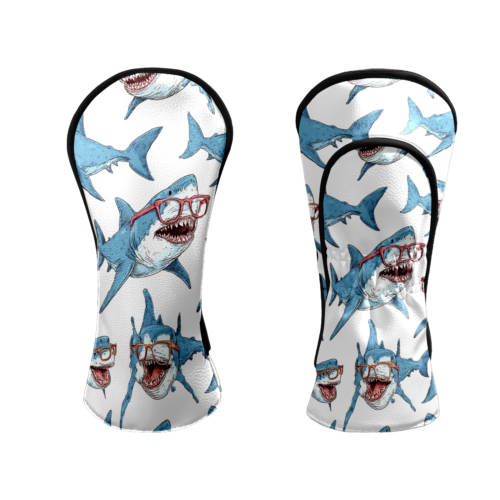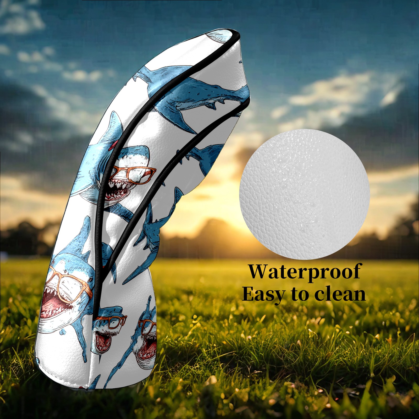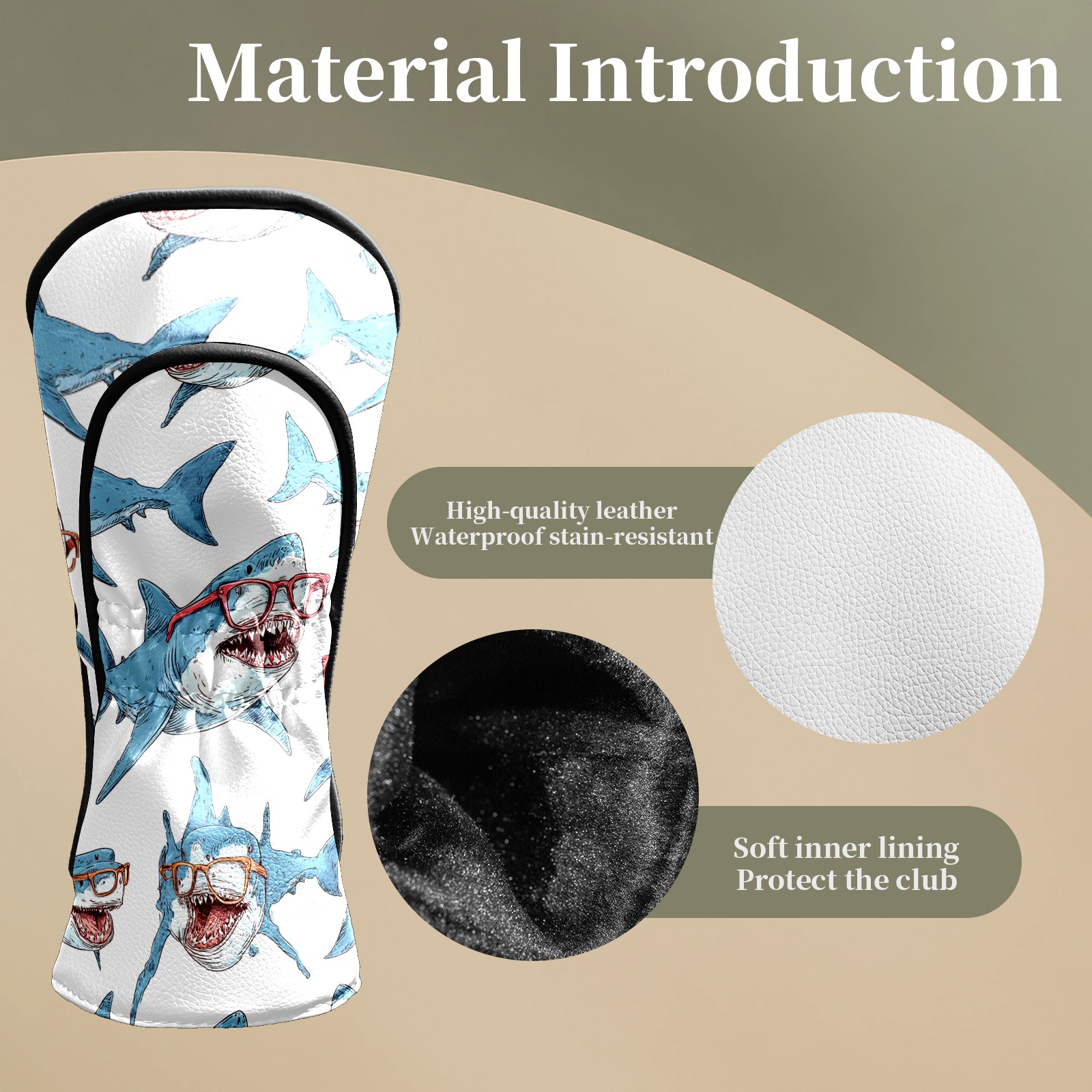 Counullo Golf Head Covers - Blue Funny Sharks Driver Fairway Headcover, Durable PU Leather & Soft Velvet Lining, Secure Elastic Band, Perfect Christmas Golf Gift for Men