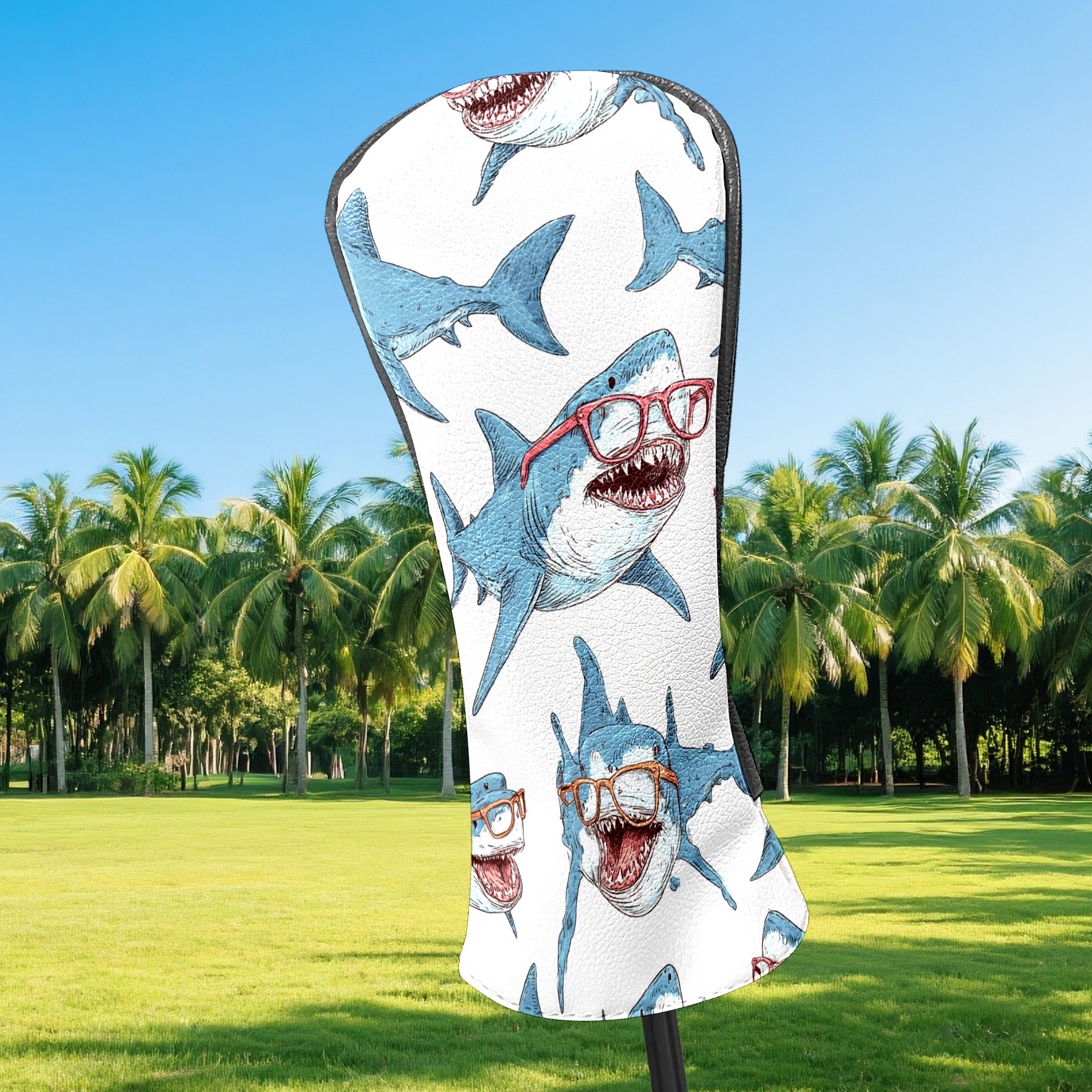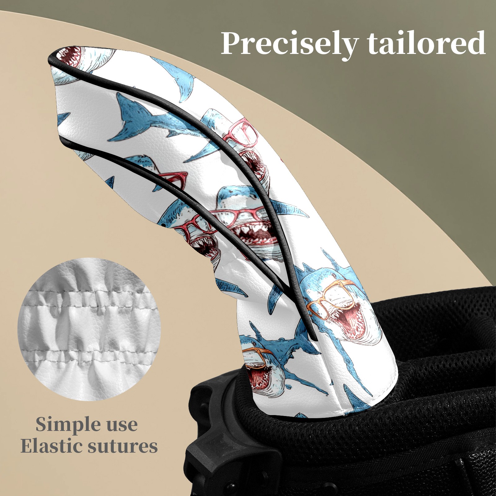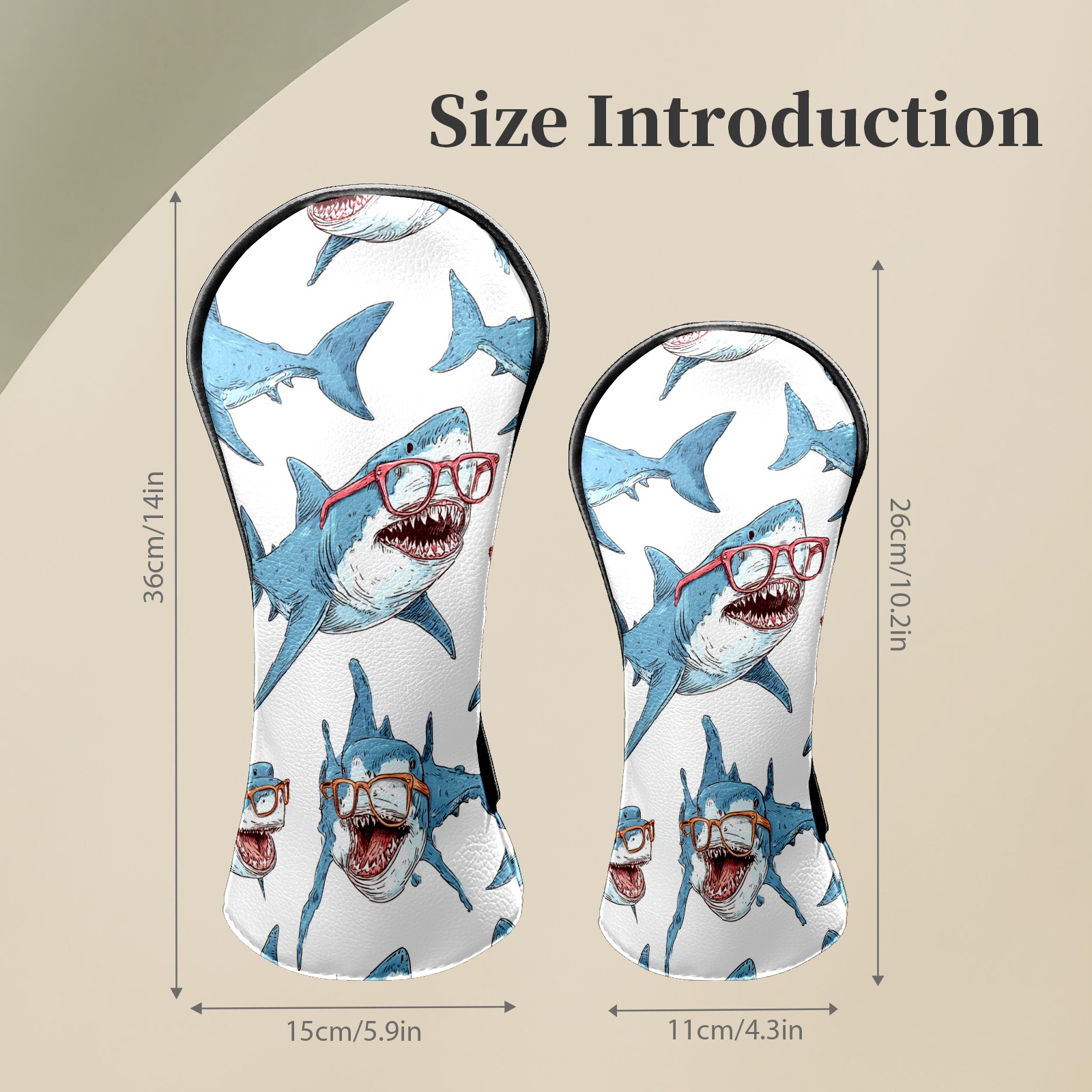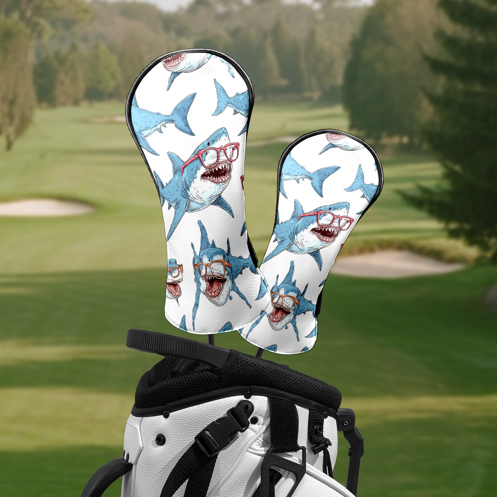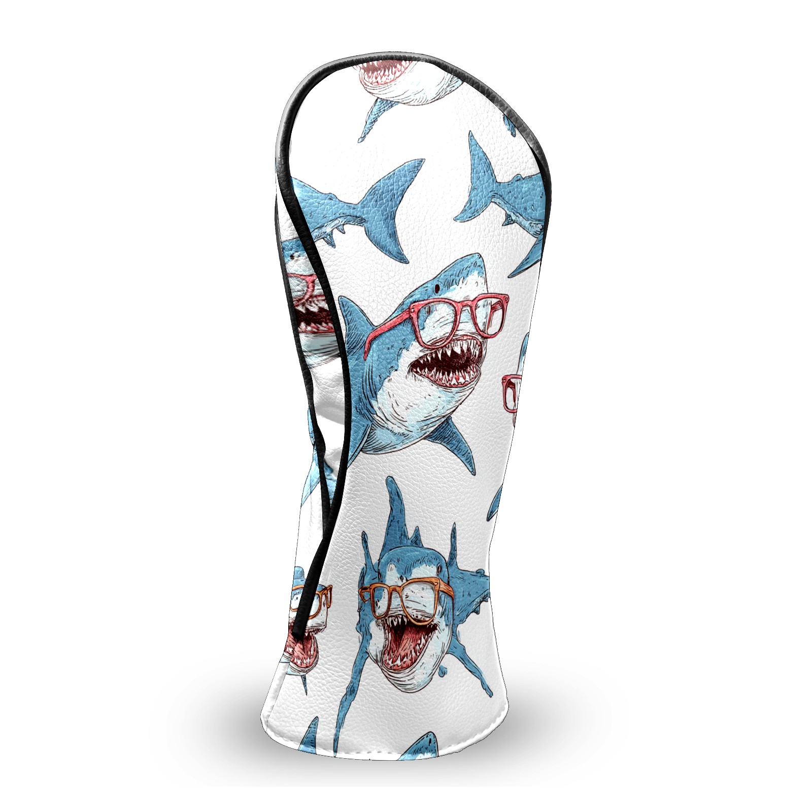 Counullo Golf Head Covers - Blue Funny Sharks Driver Fairway Headcover, Durable PU Leather & Soft Velvet Lining, Secure Elastic Band, Perfect Christmas Golf Gift for Men