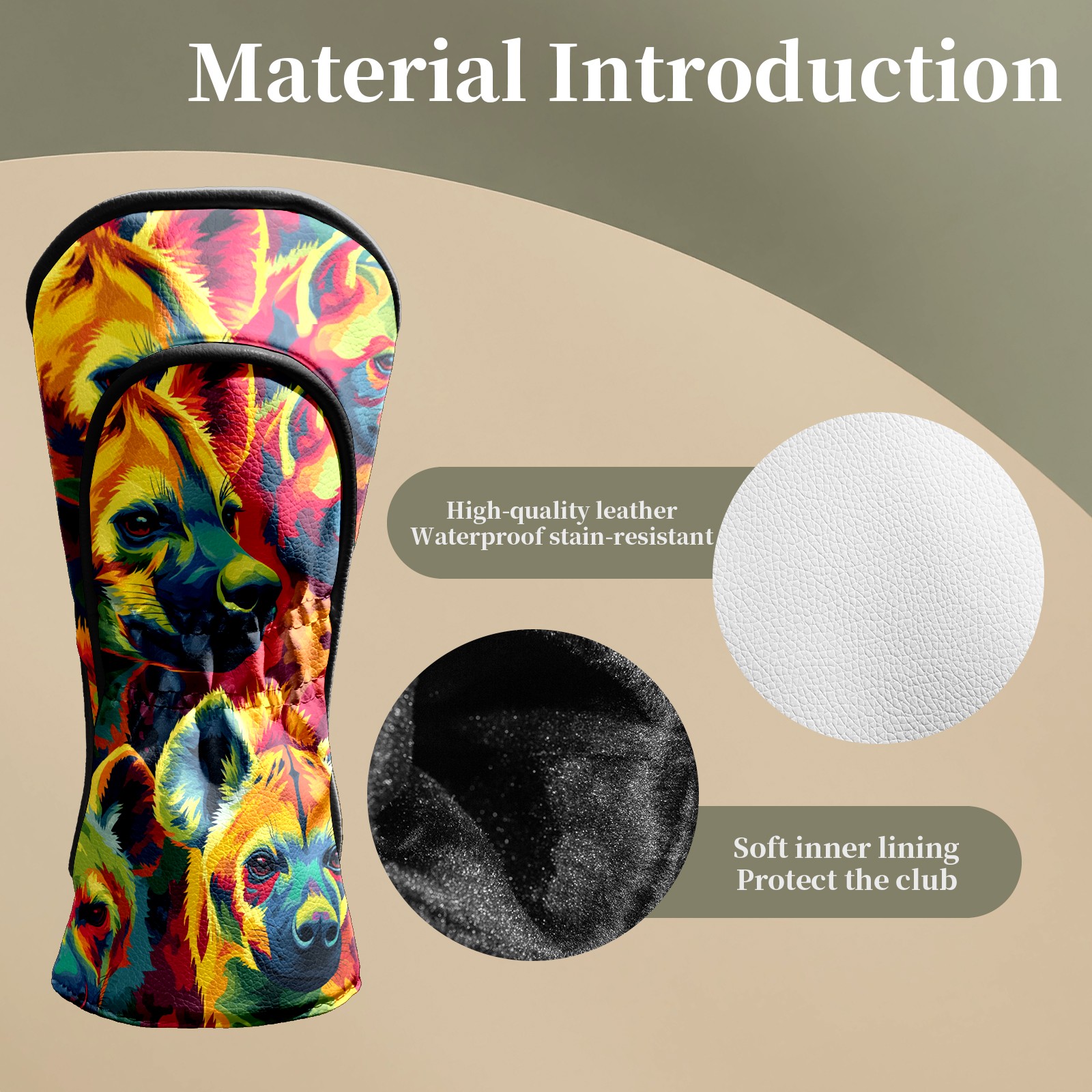 Counullo Golf Head Covers - Multicolor Hyenas Driver Fairway Headcover, Durable PU Leather & Soft Velvet Lining, Secure Elastic Band, Perfect Christmas Golf Gift for Men