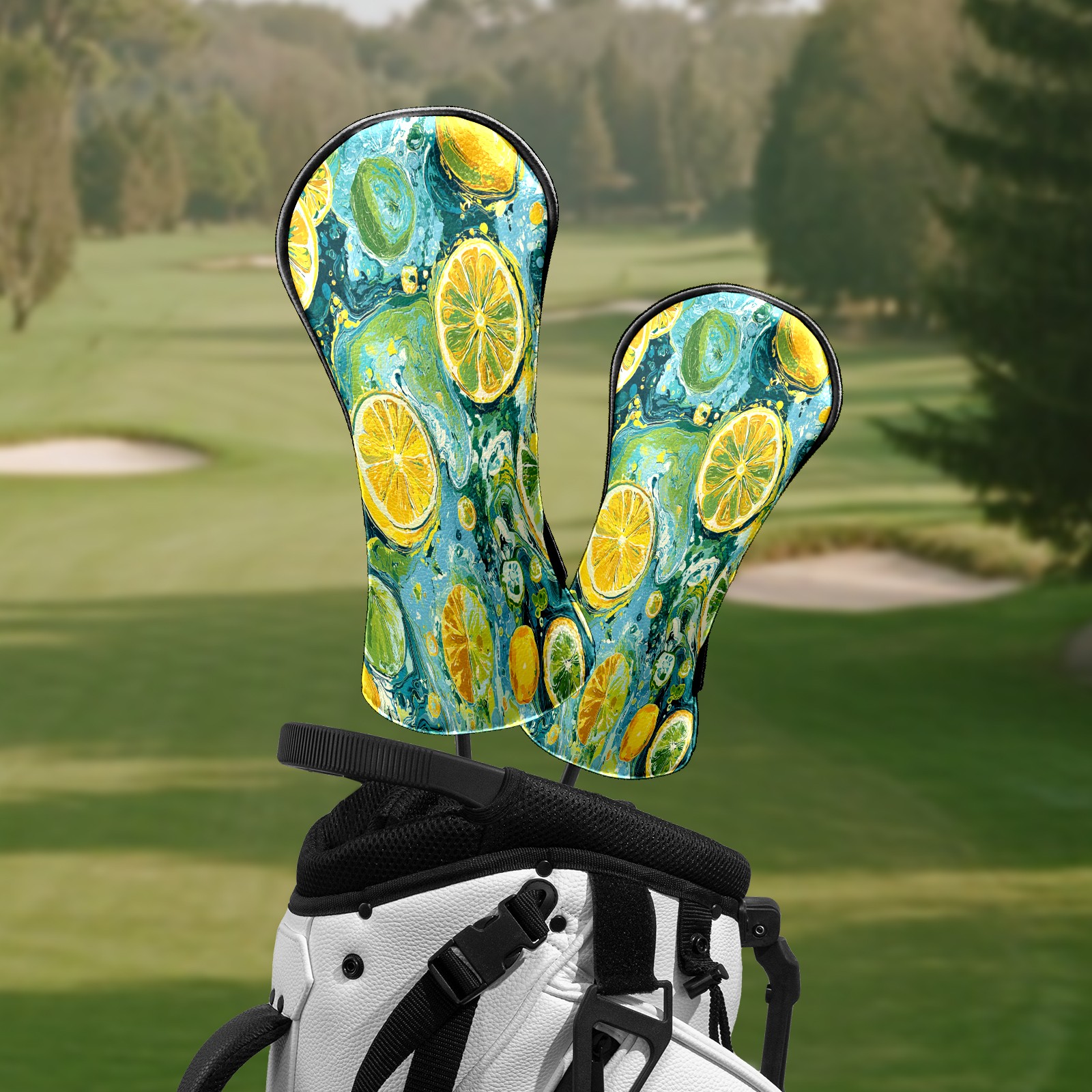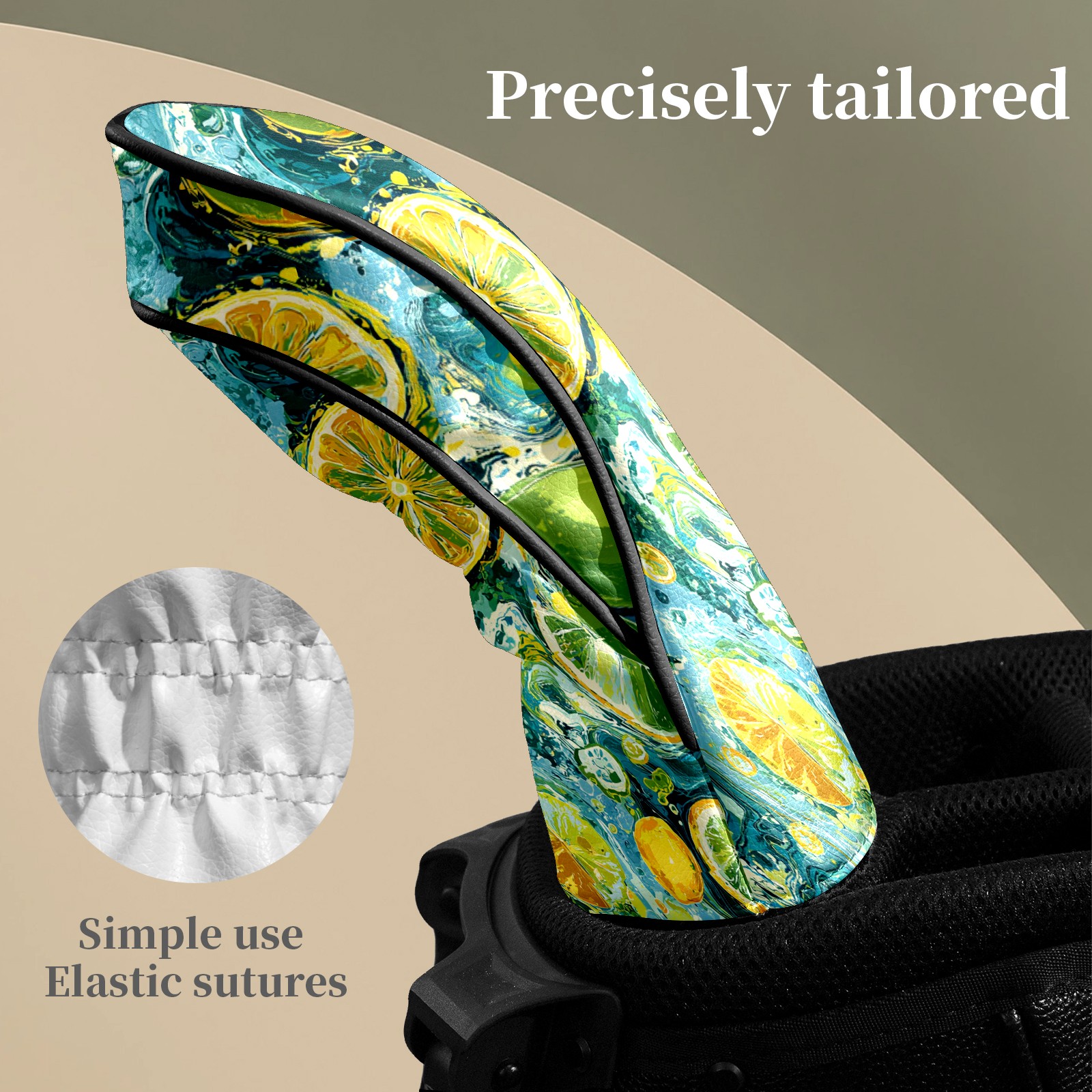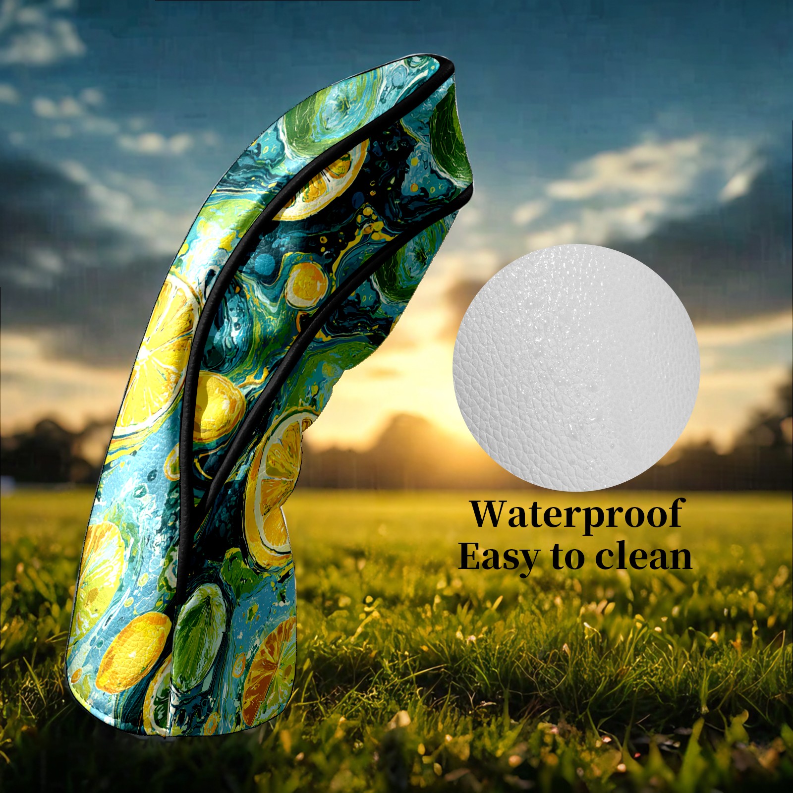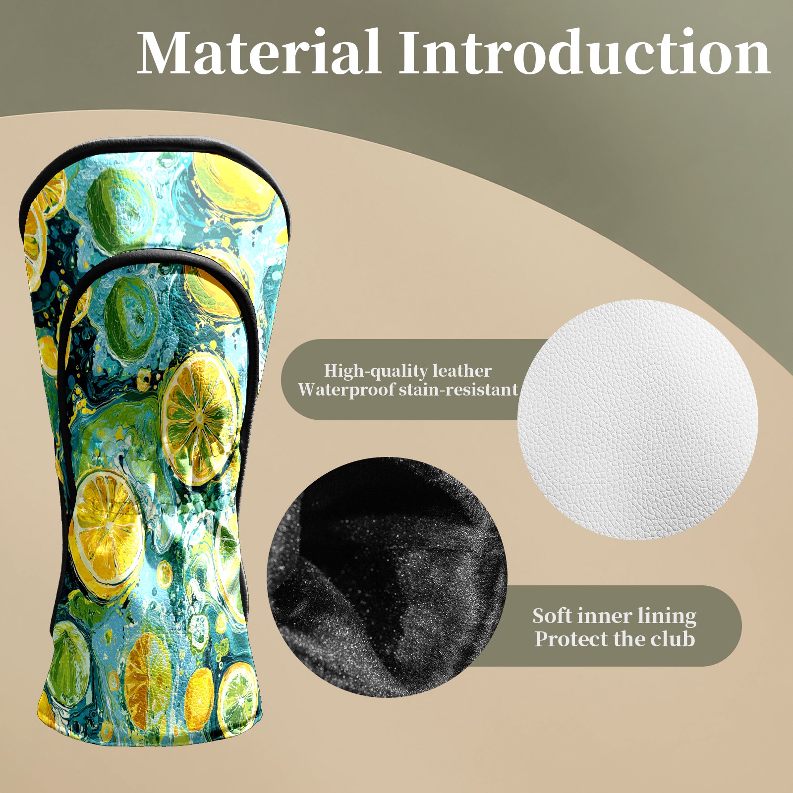 Counullo Golf Head Covers - Green Lemon Pattern Driver Fairway Headcover, Durable PU Leather & Soft Velvet Lining, Secure Elastic Band, Perfect Christmas Golf Gift for Men