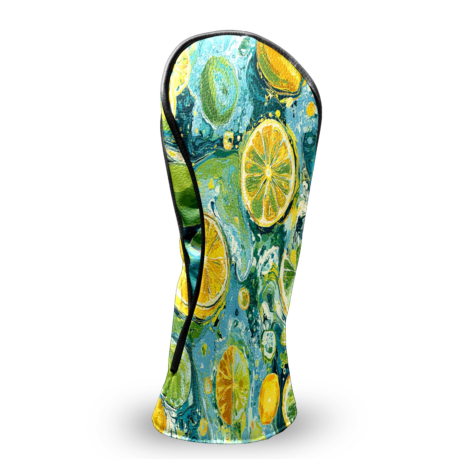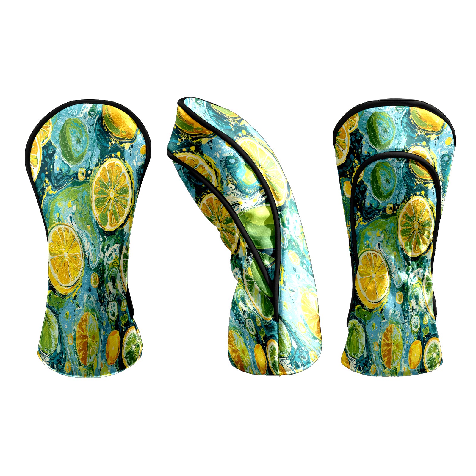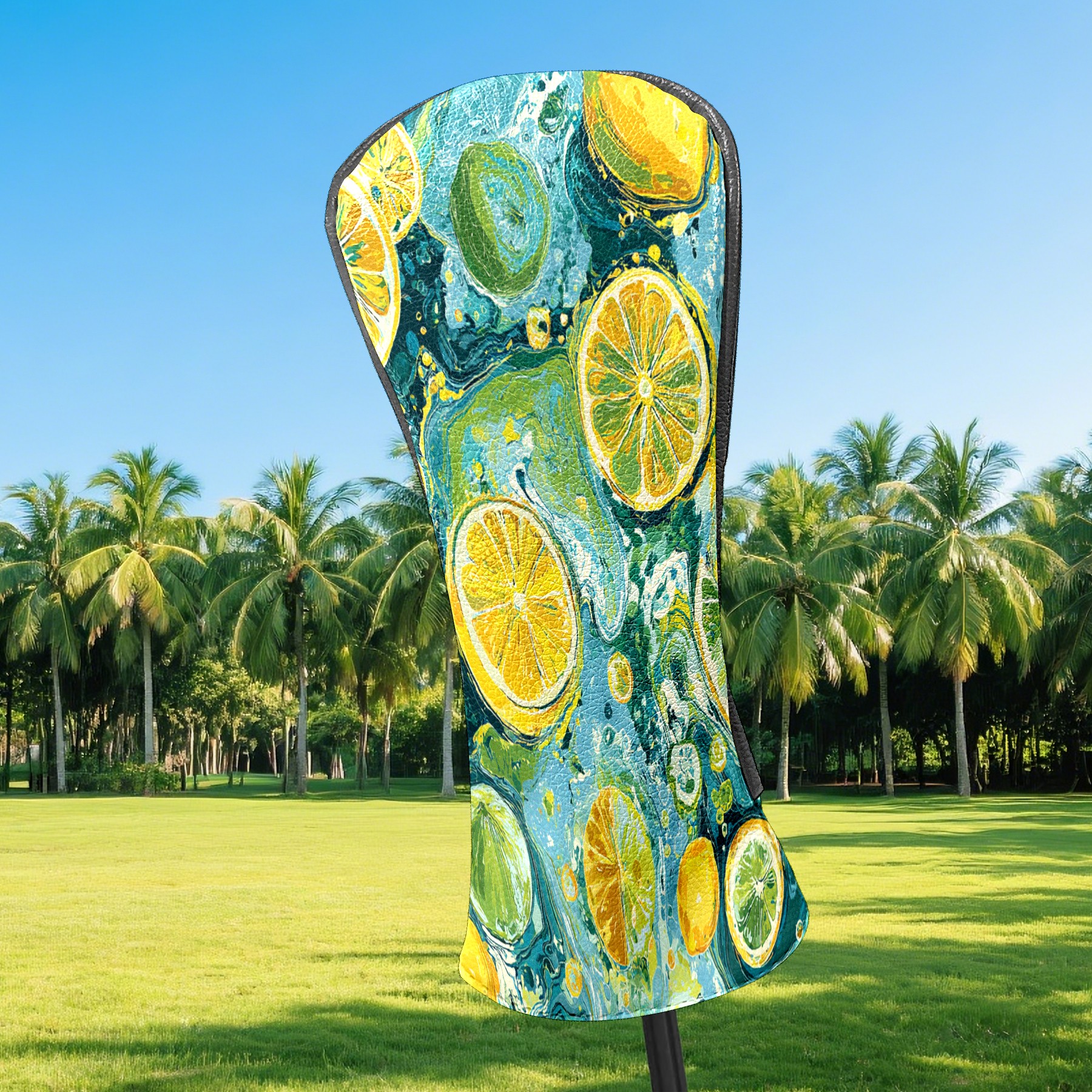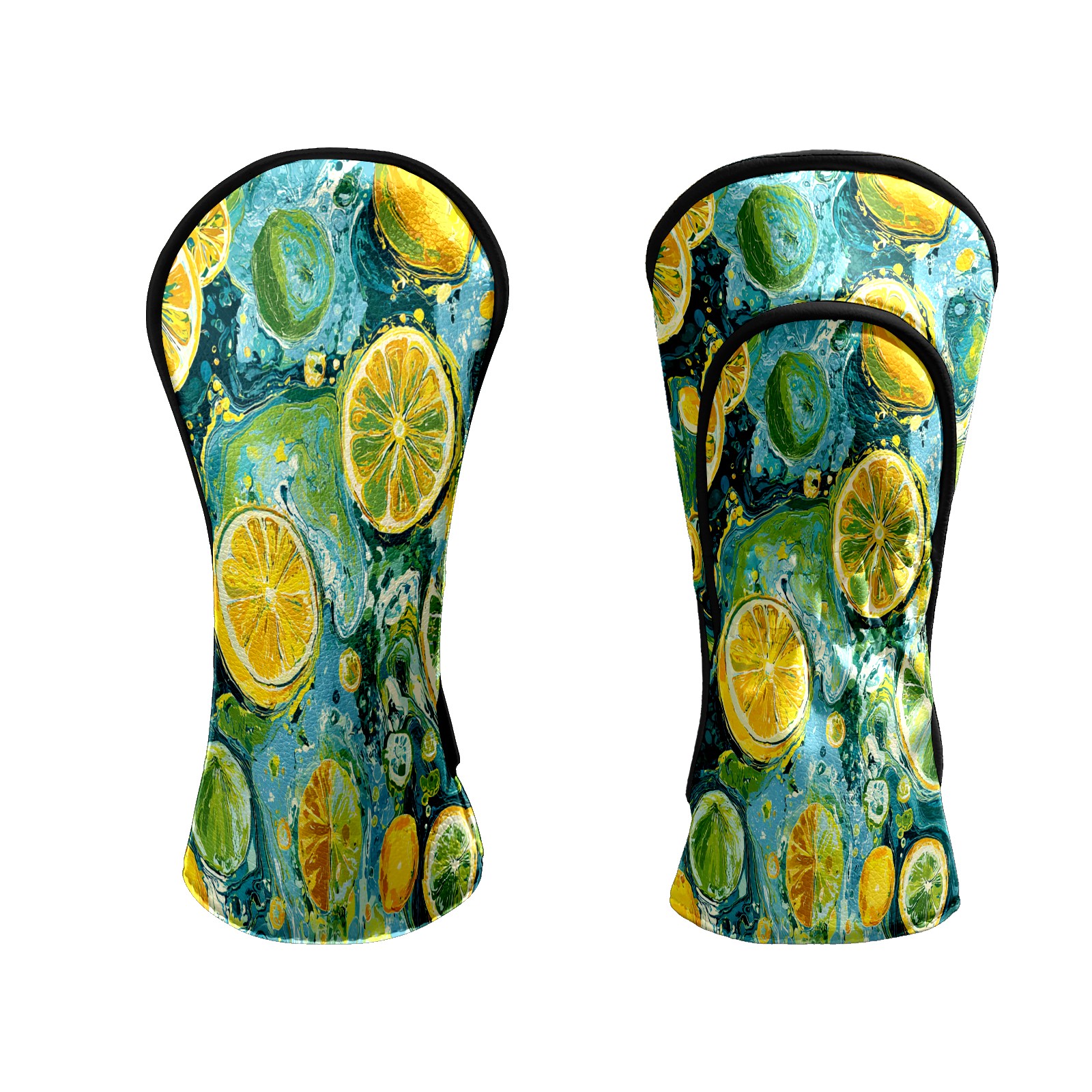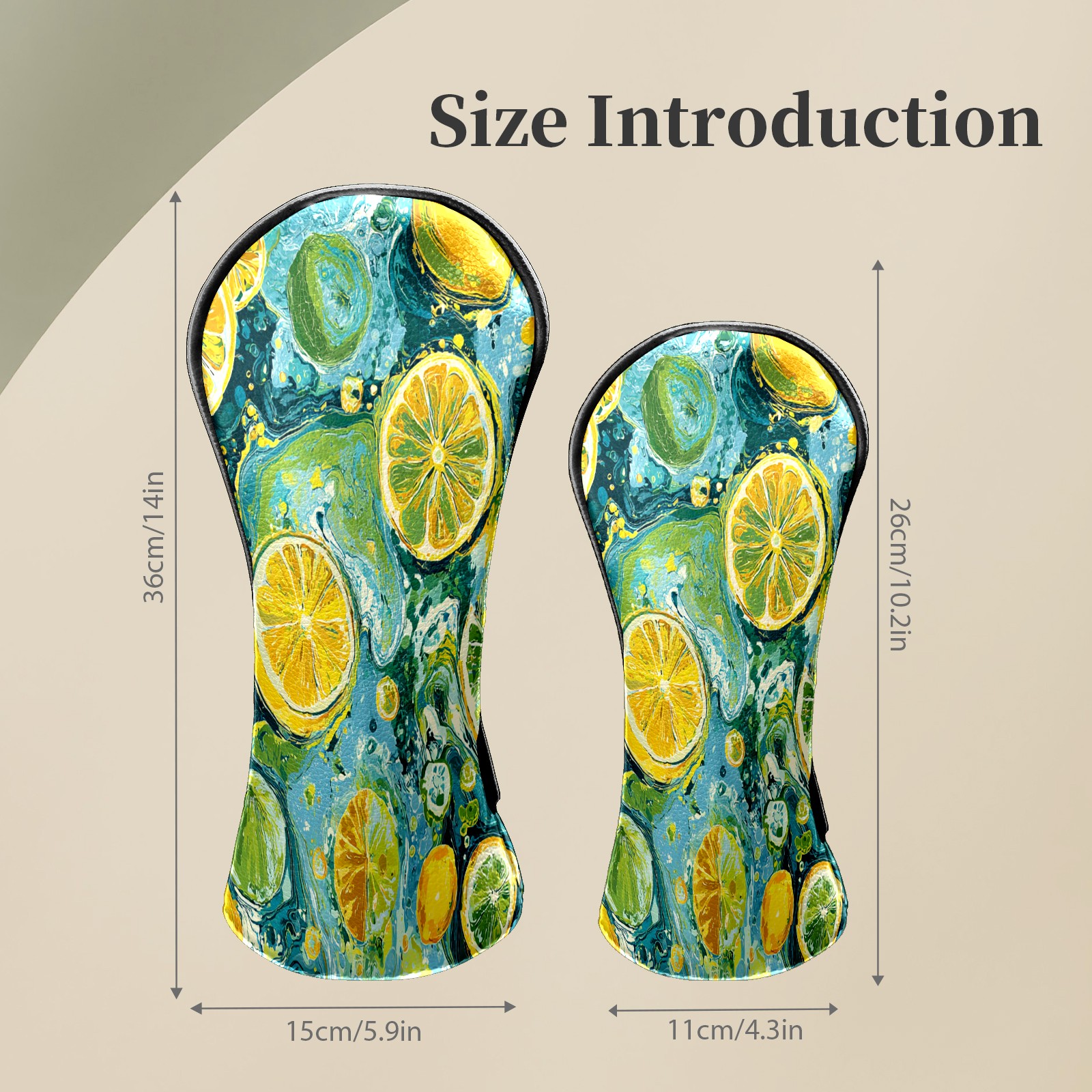 Counullo Golf Head Covers - Green Lemon Pattern Driver Fairway Headcover, Durable PU Leather & Soft Velvet Lining, Secure Elastic Band, Perfect Christmas Golf Gift for Men