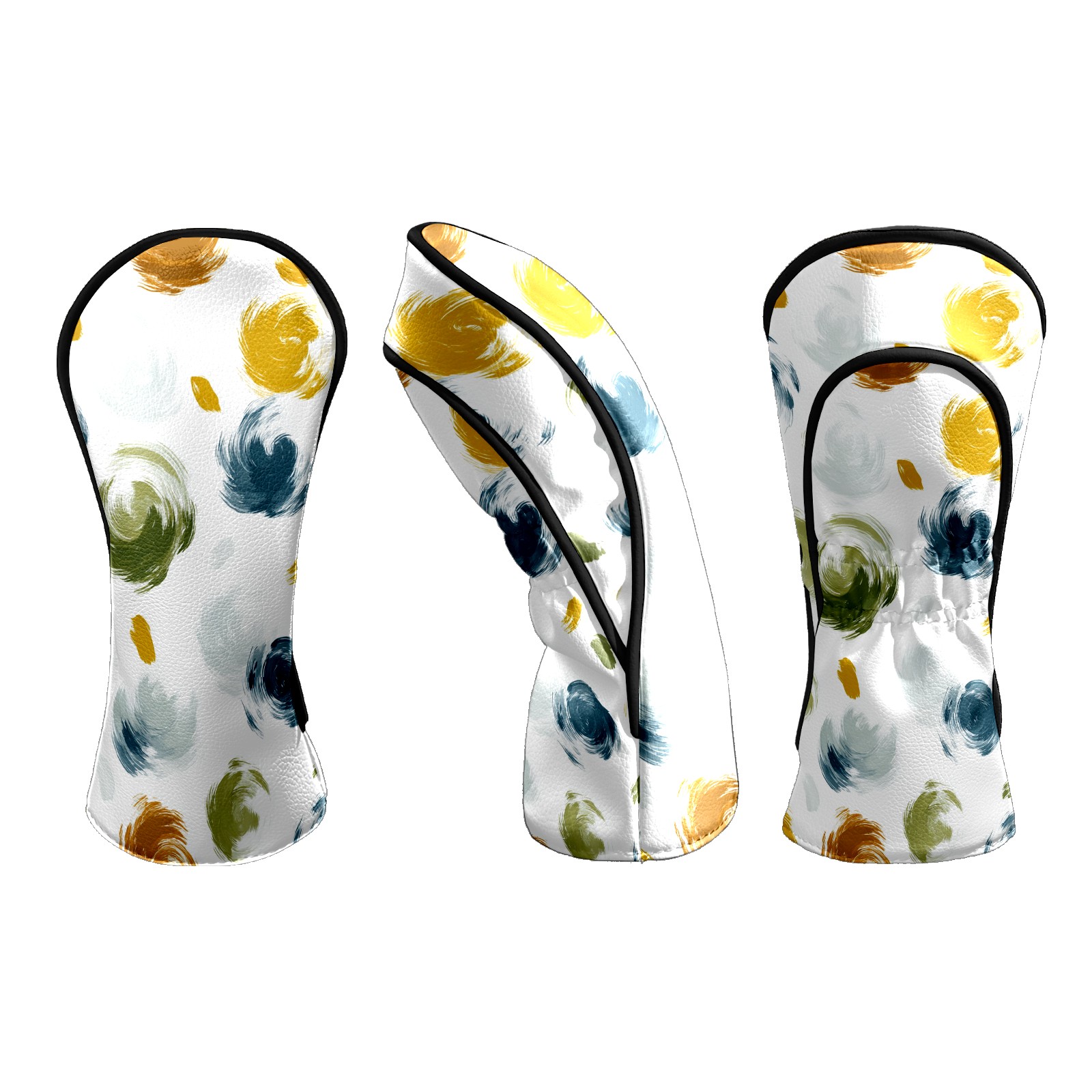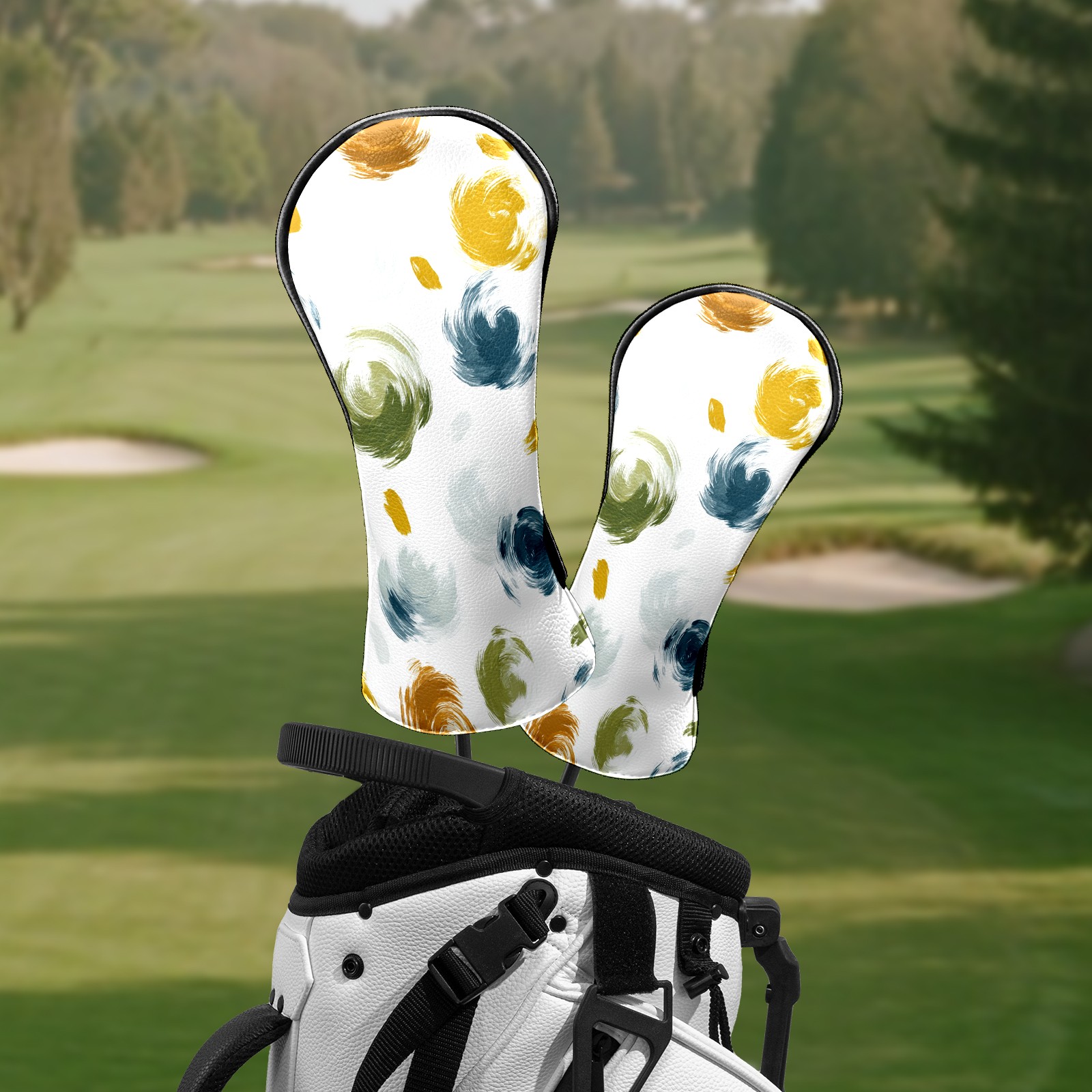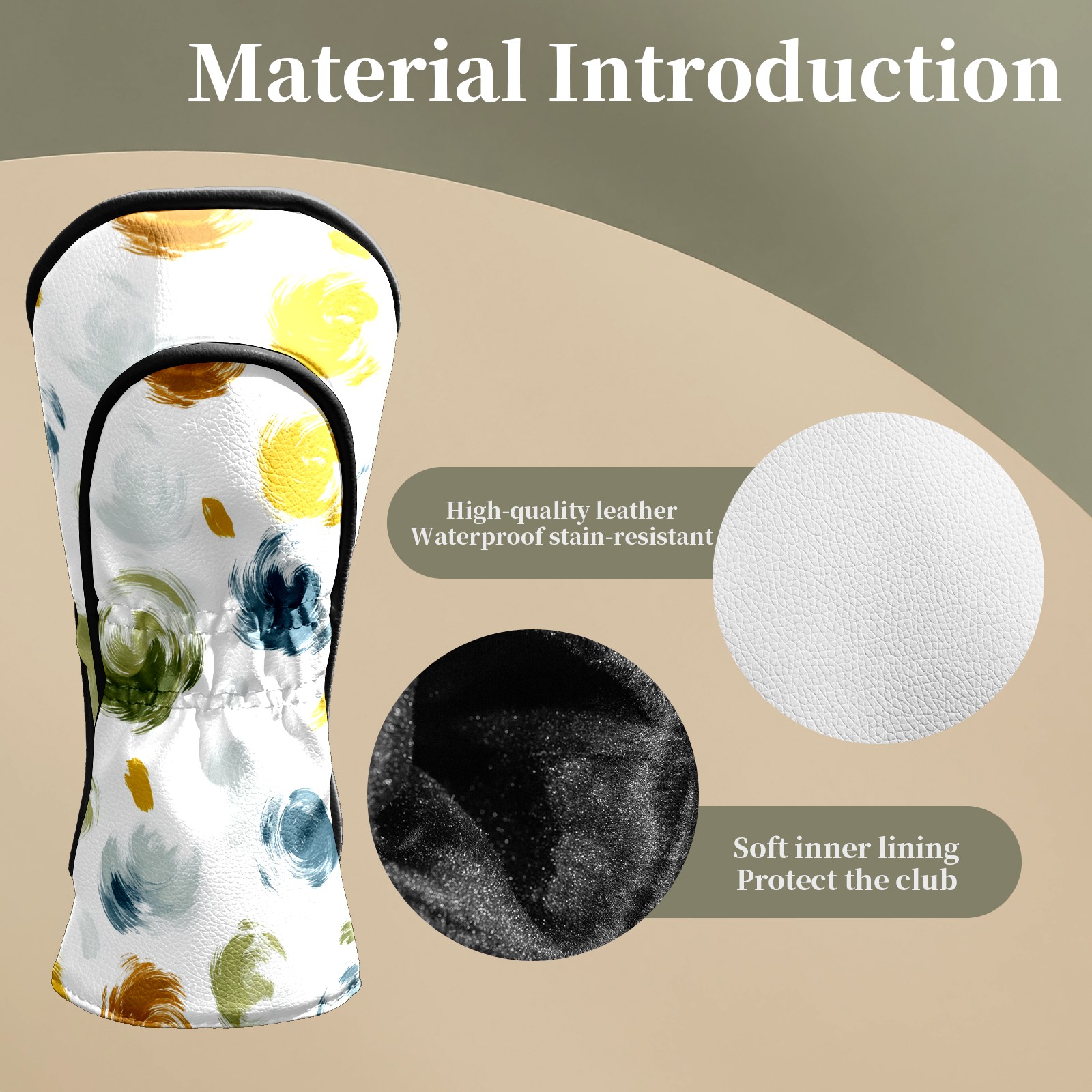 Counullo Golf Head Covers - Beige Color Dots Driver Fairway Headcover, Durable PU Leather & Soft Velvet Lining, Secure Elastic Band, Perfect Christmas Golf Gift for Men