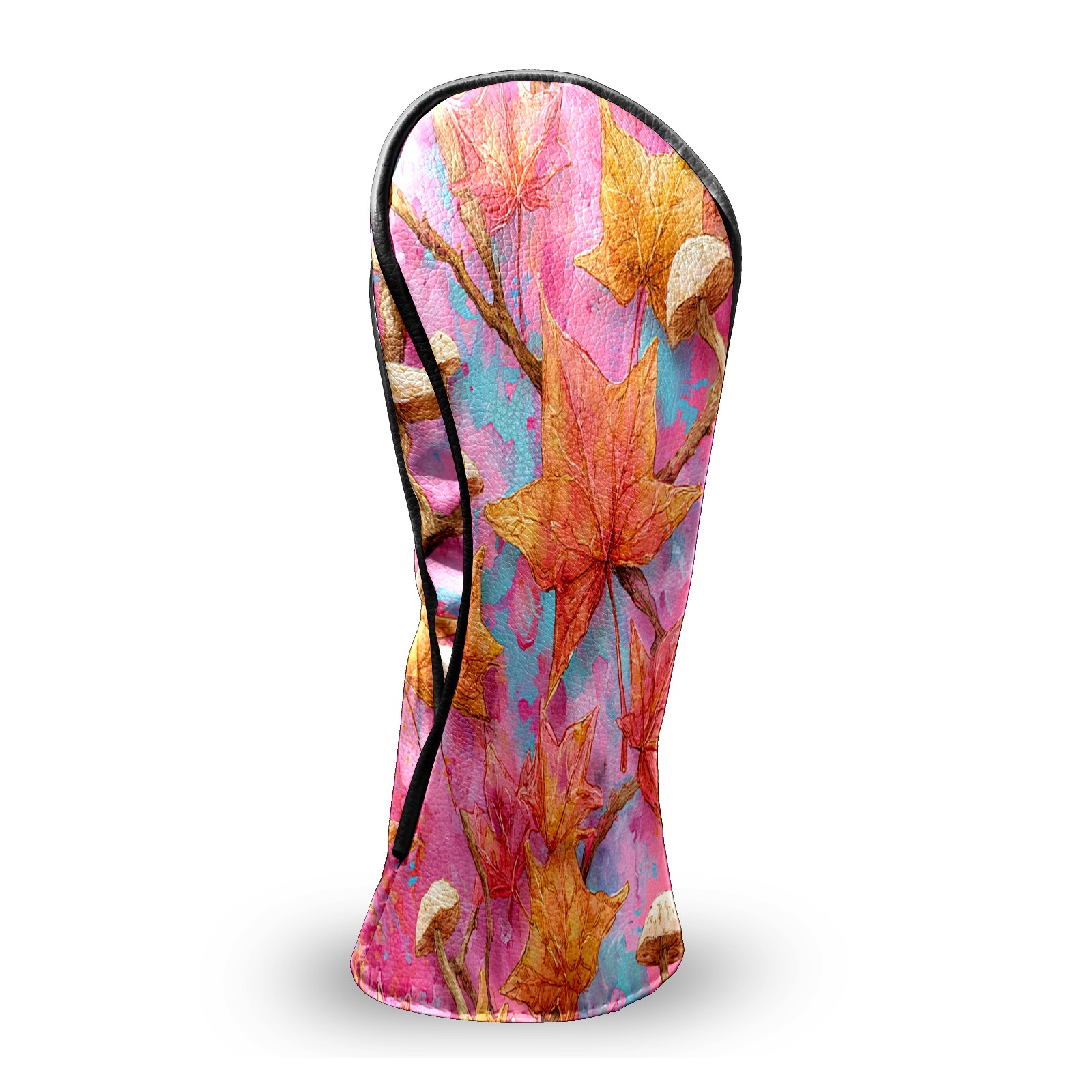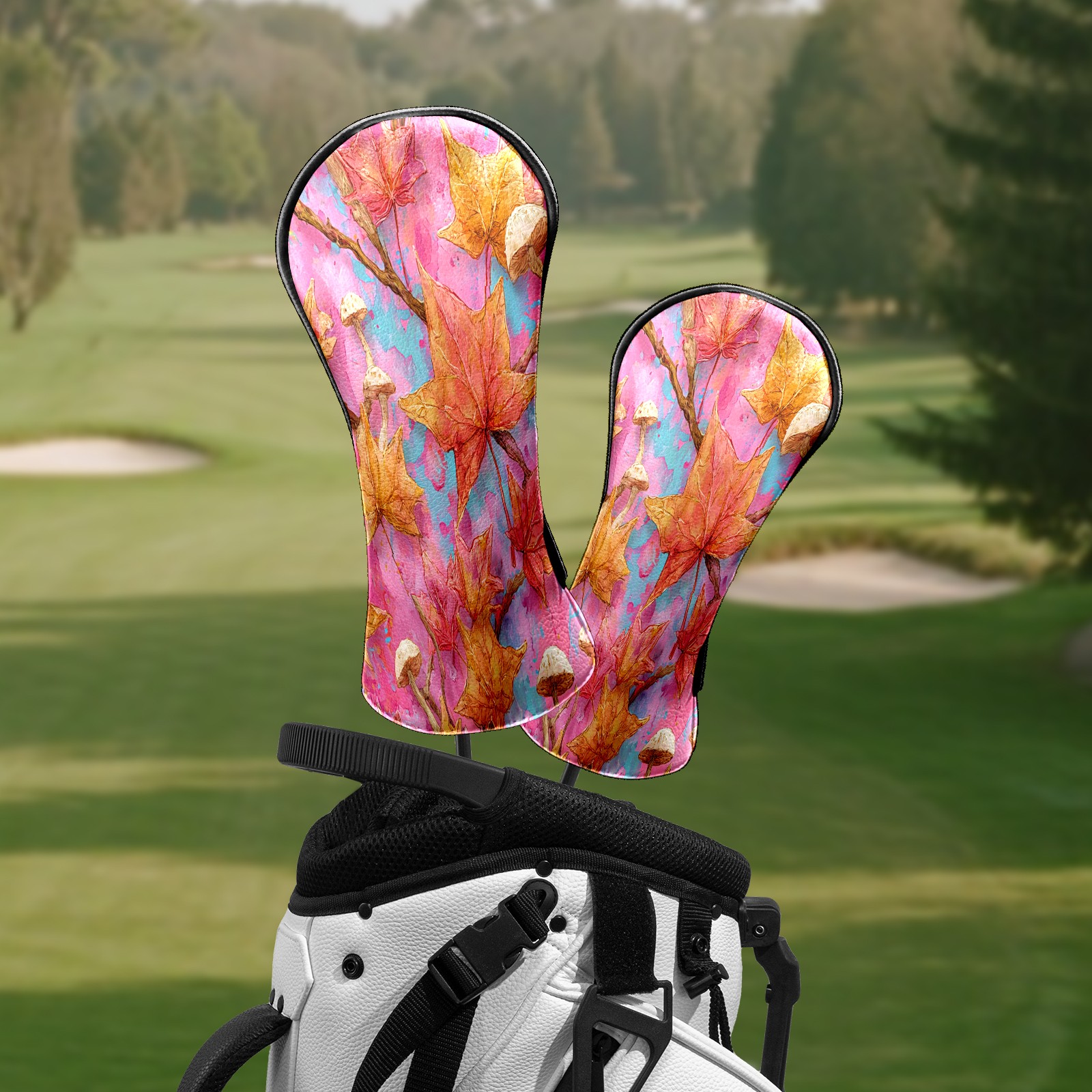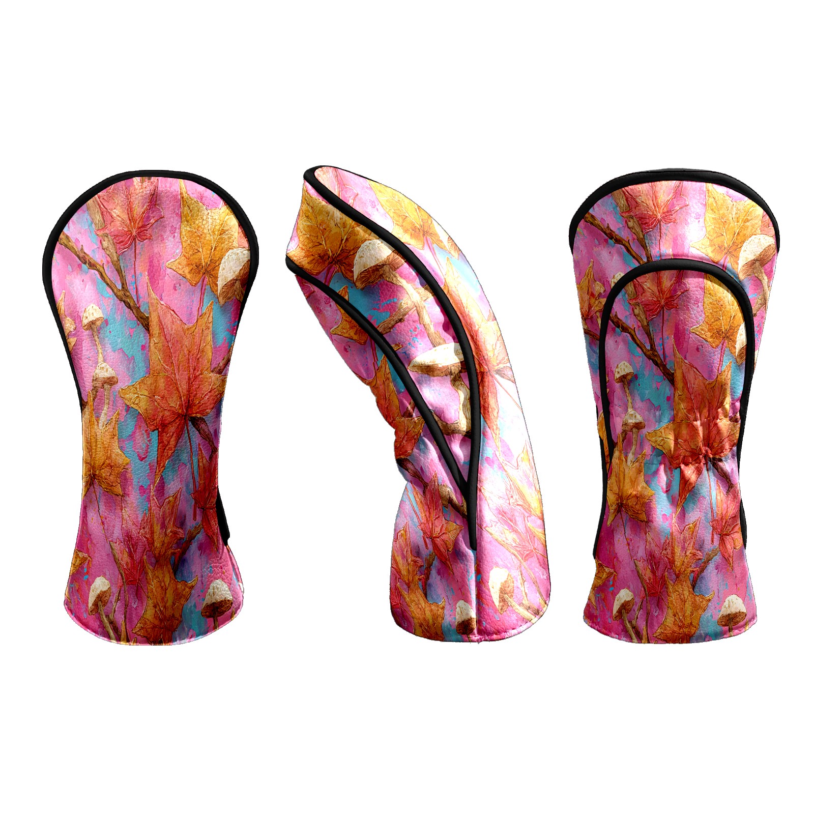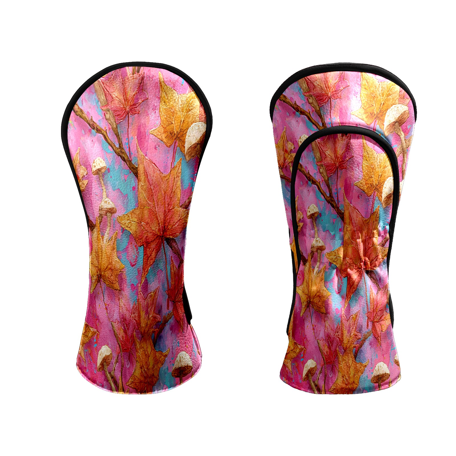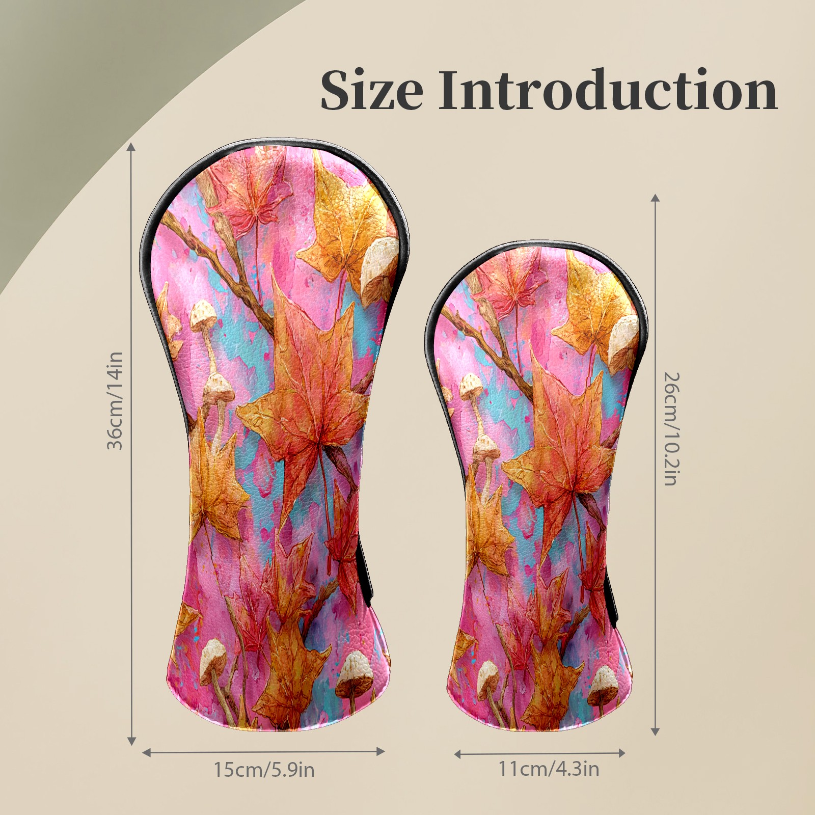 Counullo Golf Head Covers - Pink Autumn Leaves Driver Fairway Headcover, Durable PU Leather & Soft Velvet Lining, Secure Elastic Band, Perfect Christmas Golf Gift for Men