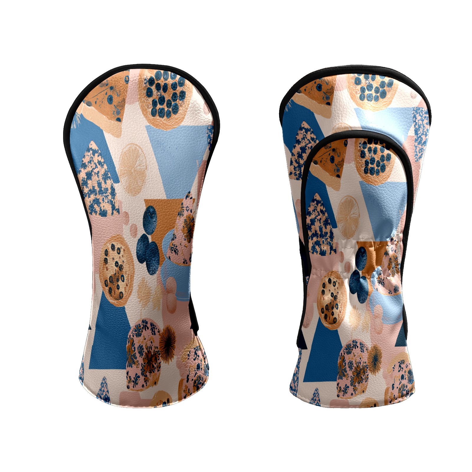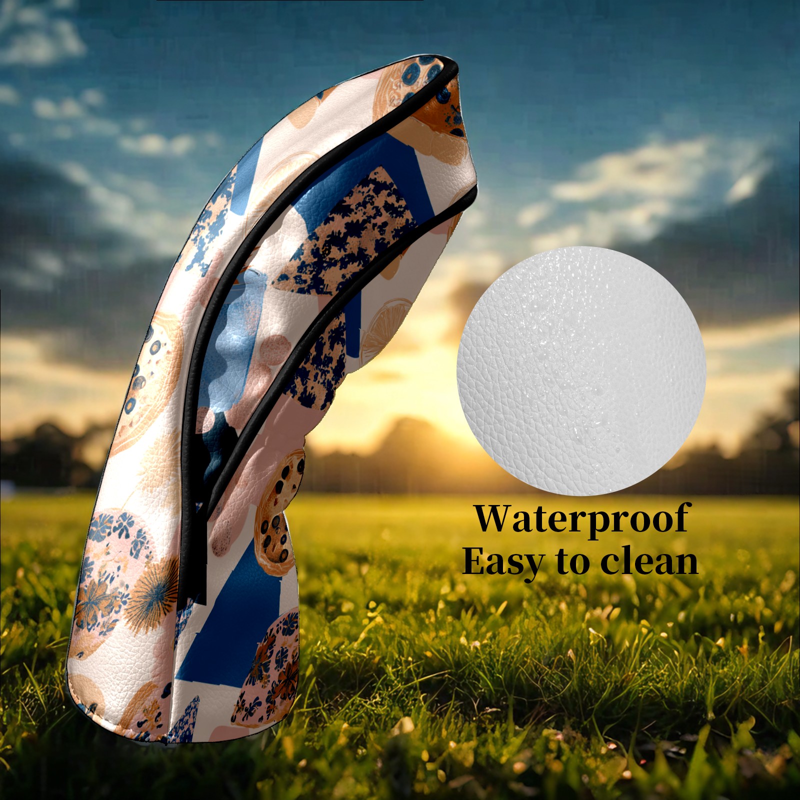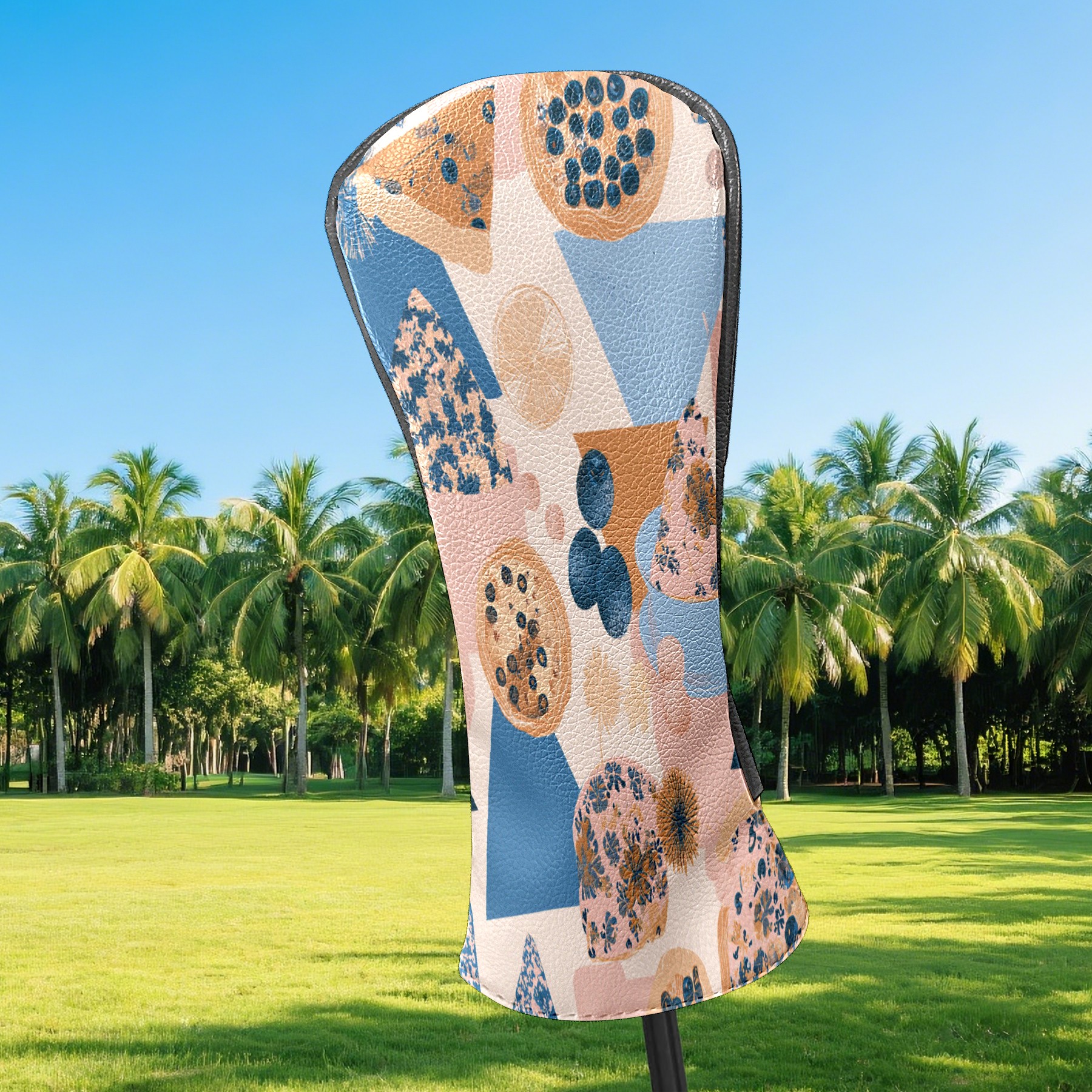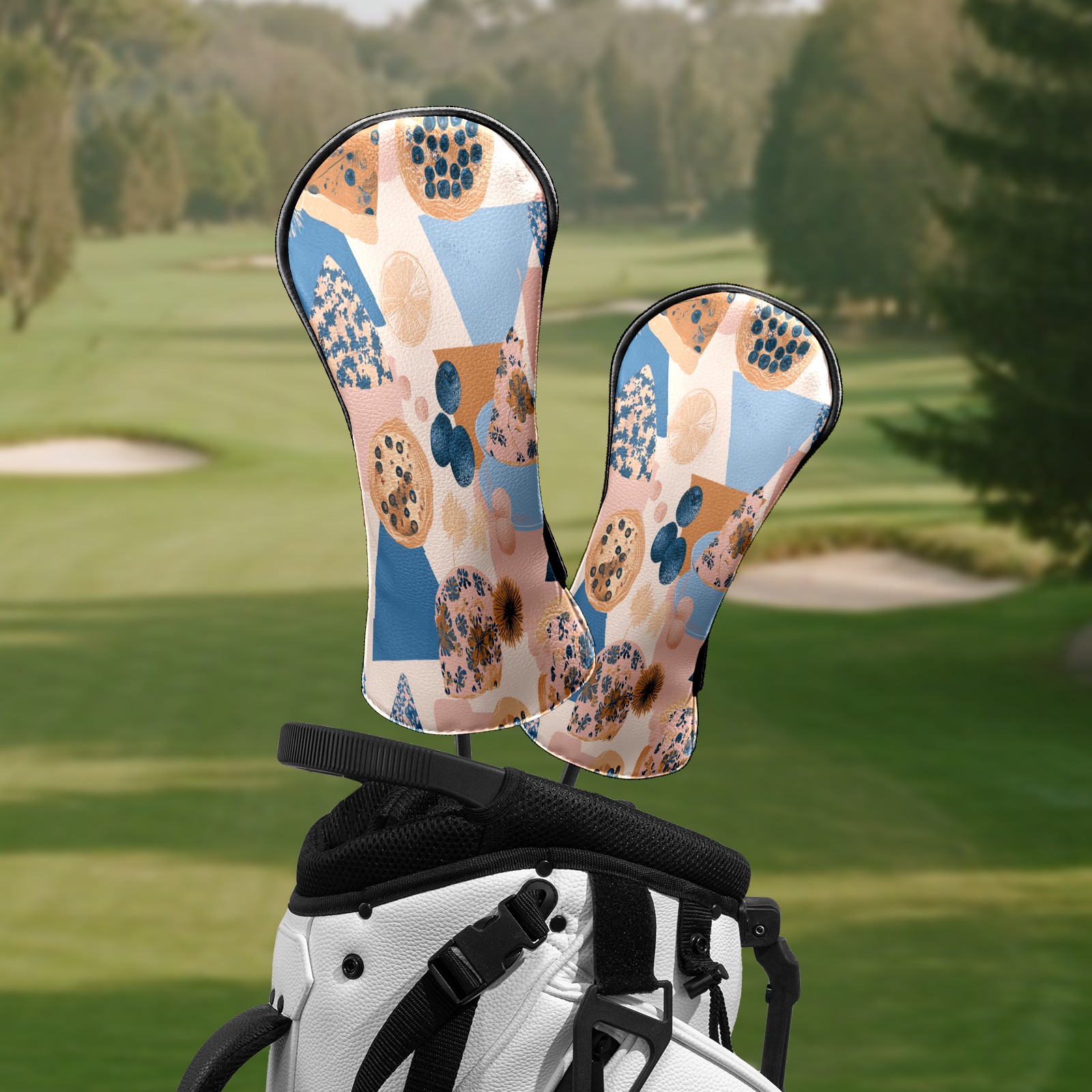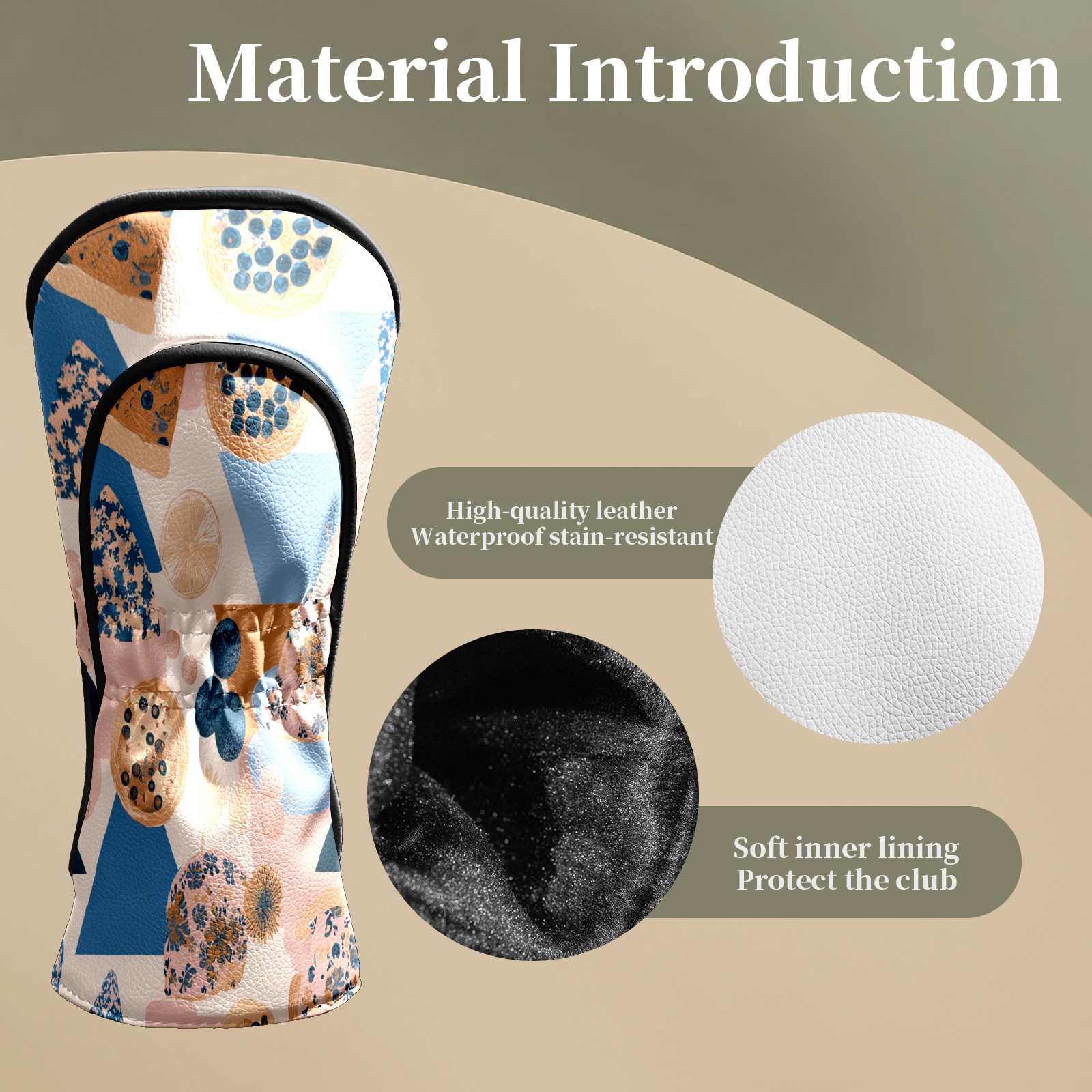 Counullo Golf Head Covers - Multicolor Geometric Driver Fairway Headcover, Durable PU Leather & Soft Velvet Lining, Secure Elastic Band, Perfect Christmas Golf Gift for Men