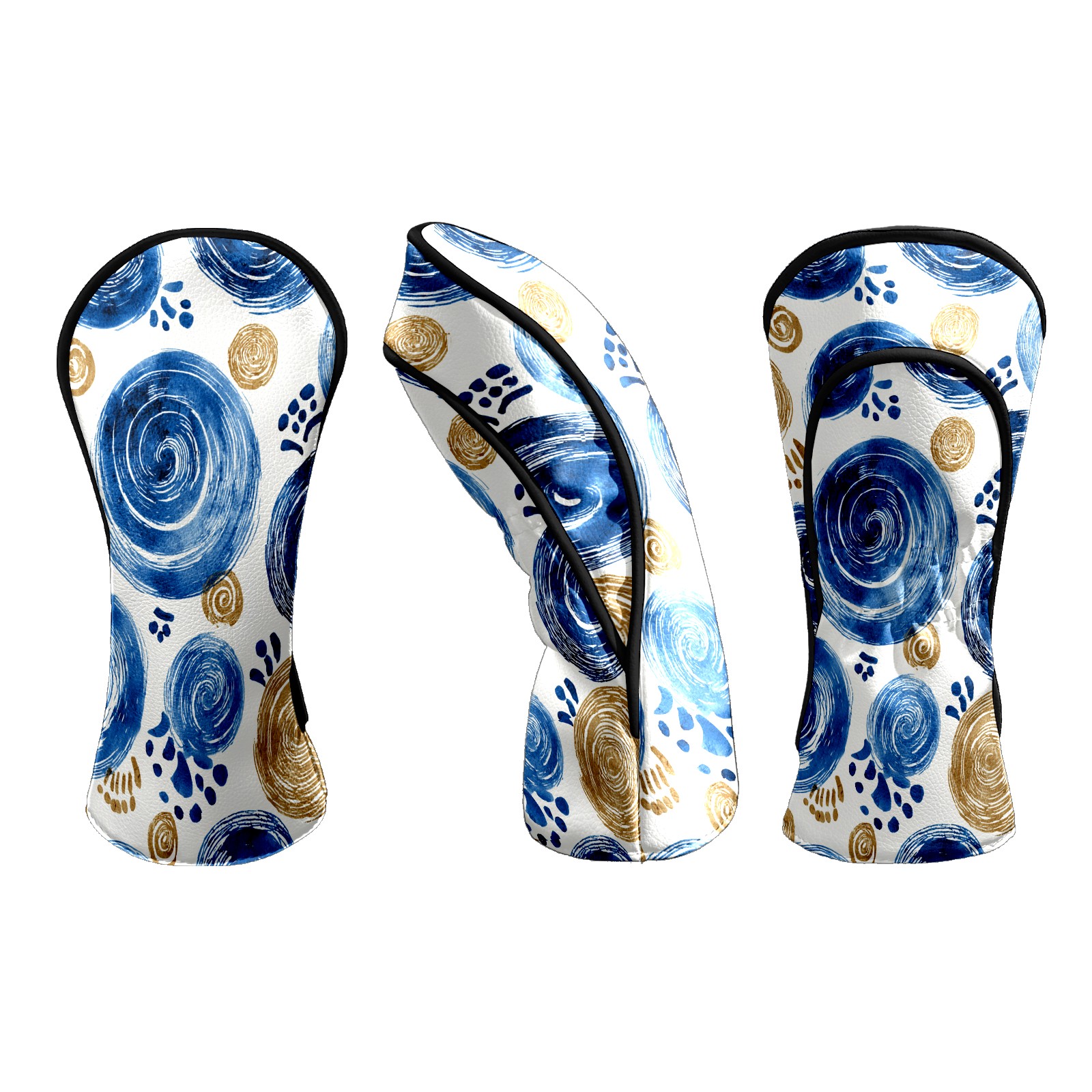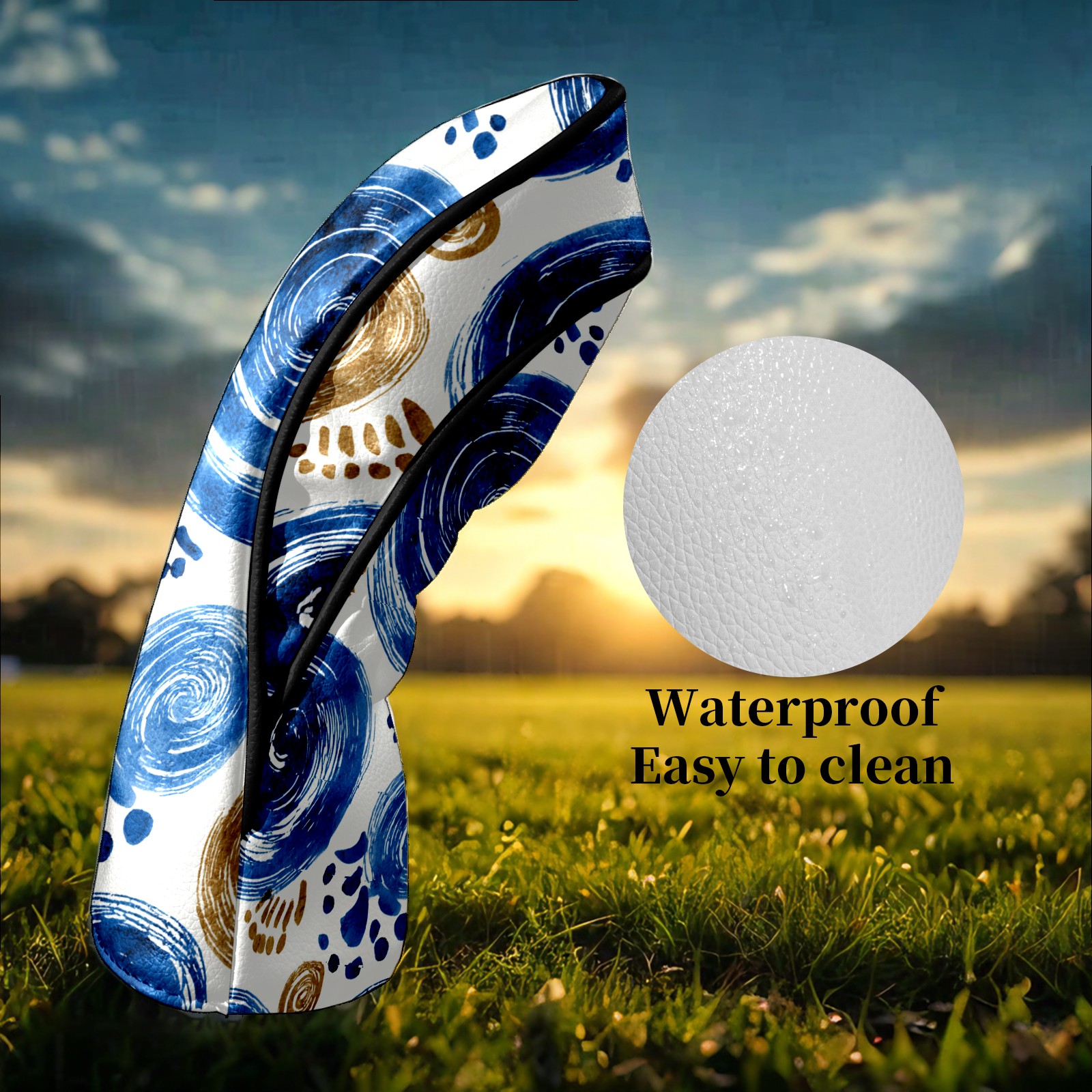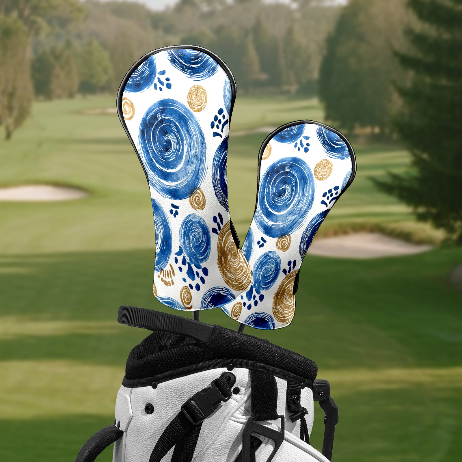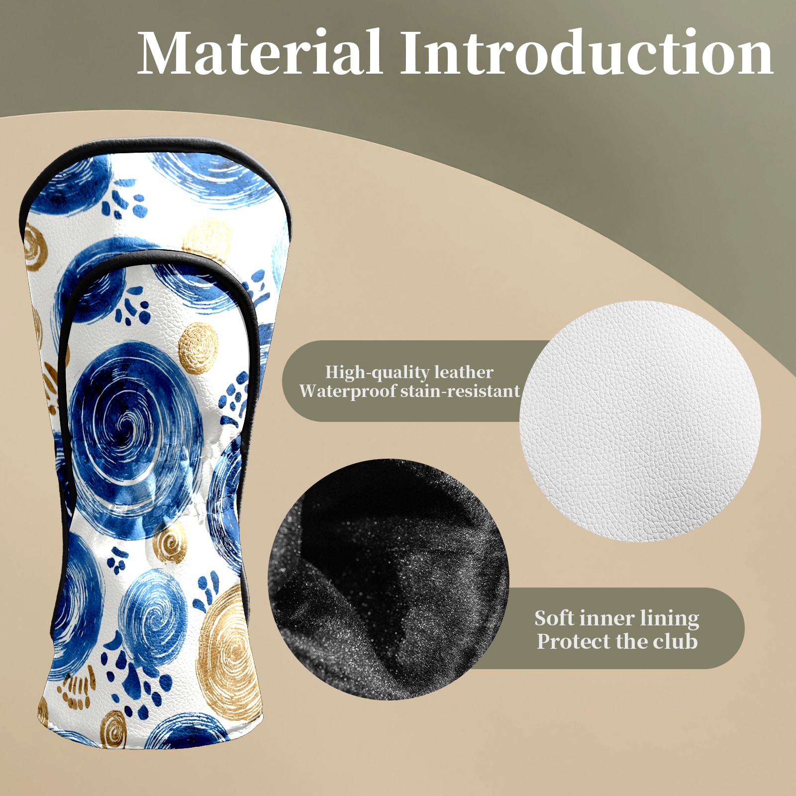 Counullo Golf Head Covers - Blue Swirls Driver Fairway Headcover, Durable PU Leather & Soft Velvet Lining, Secure Elastic Band, Perfect Christmas Golf Gift for Men