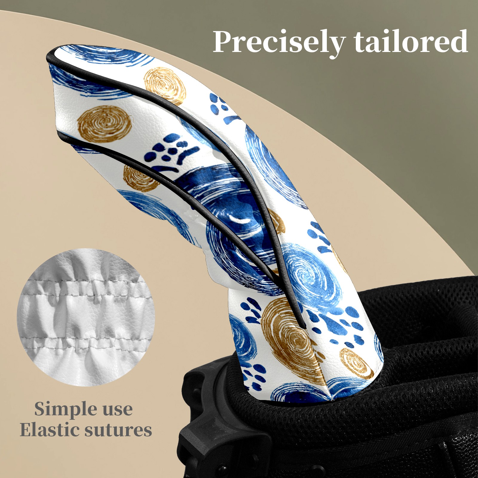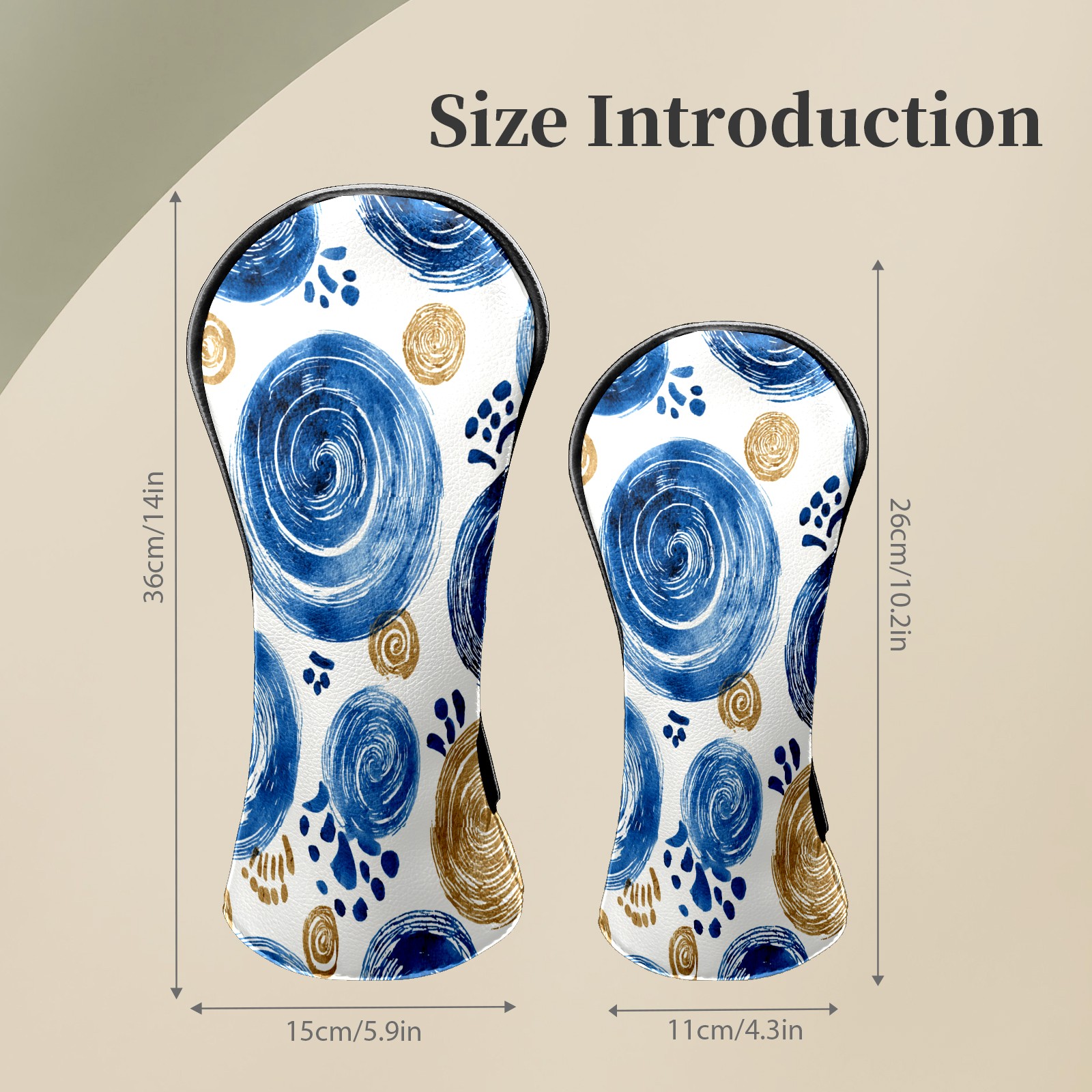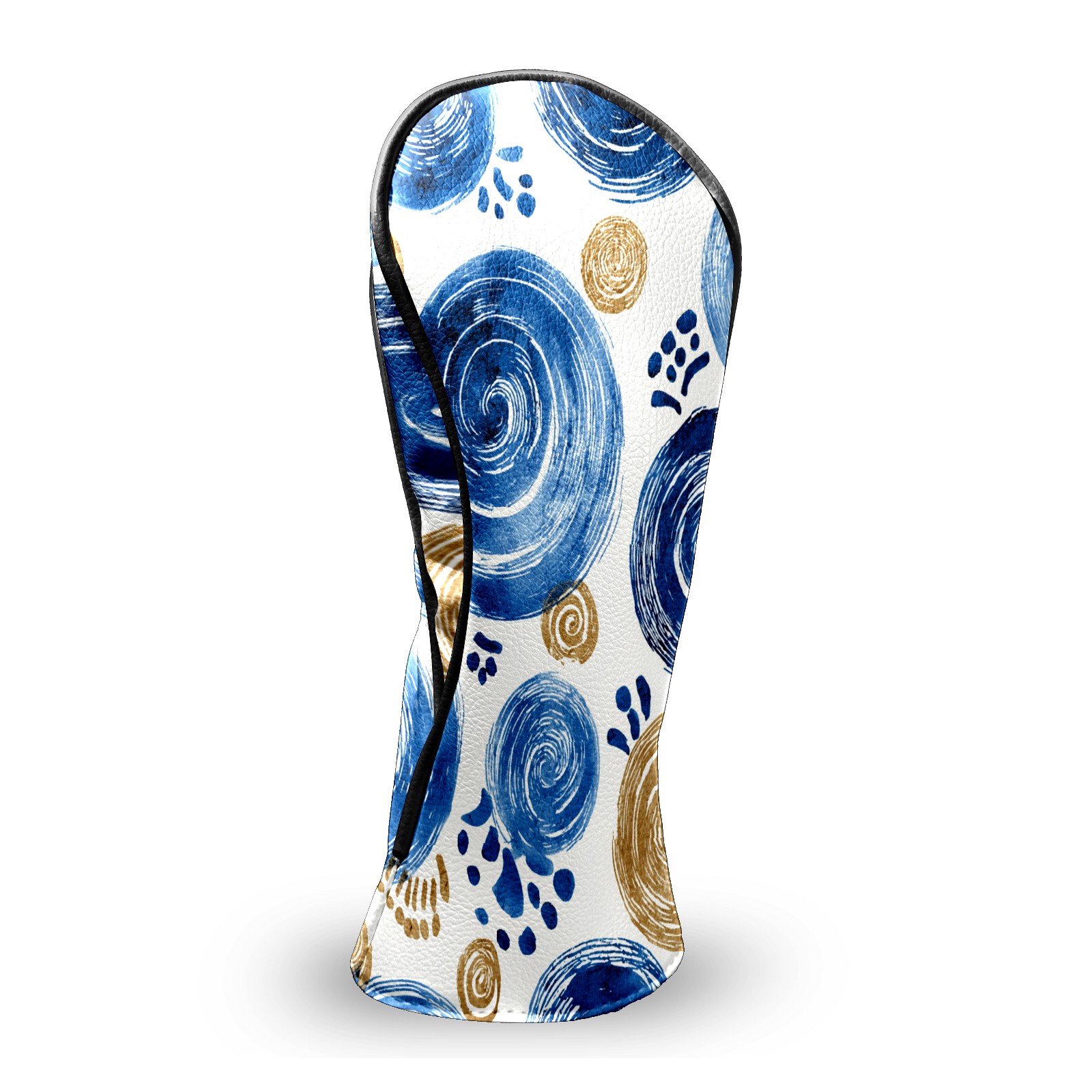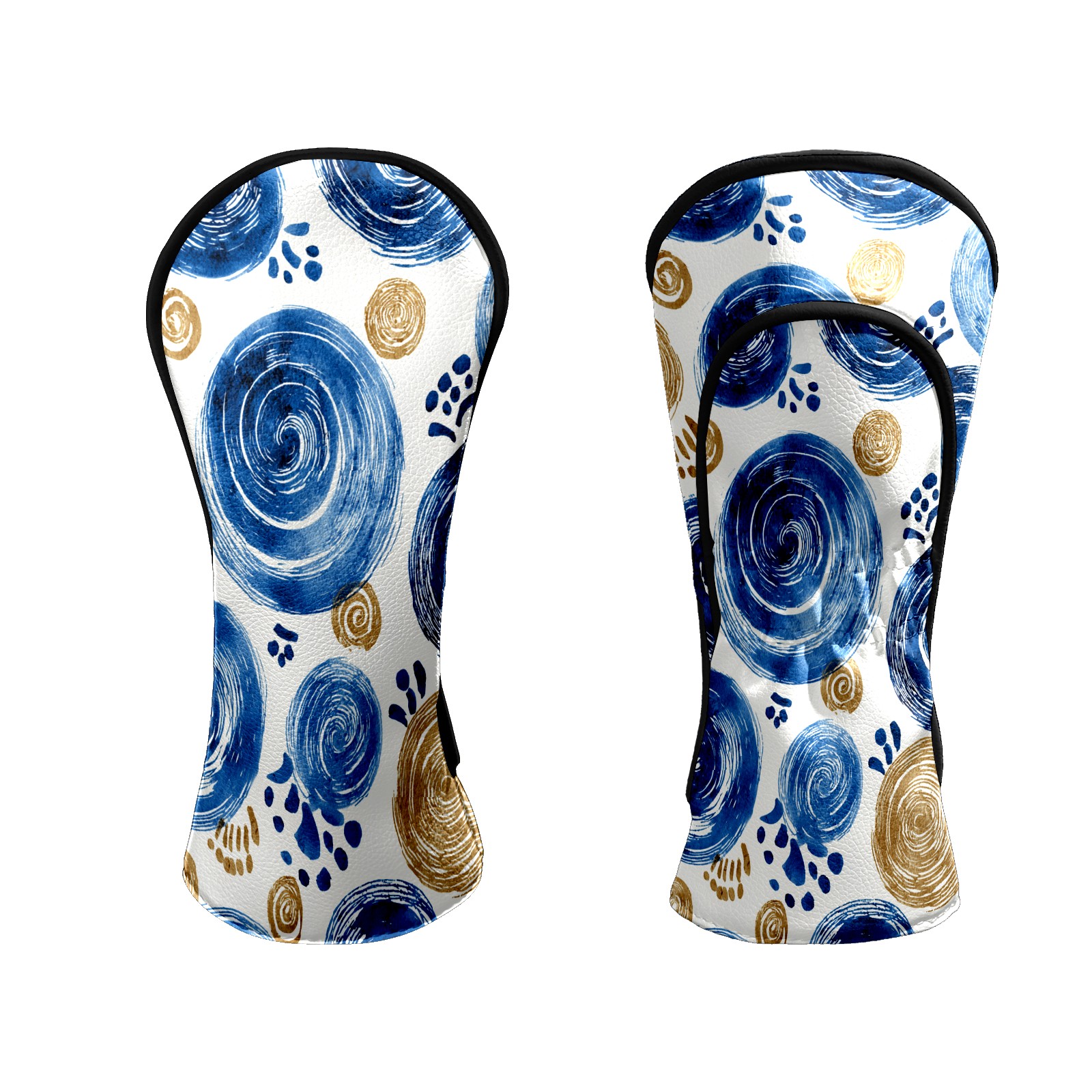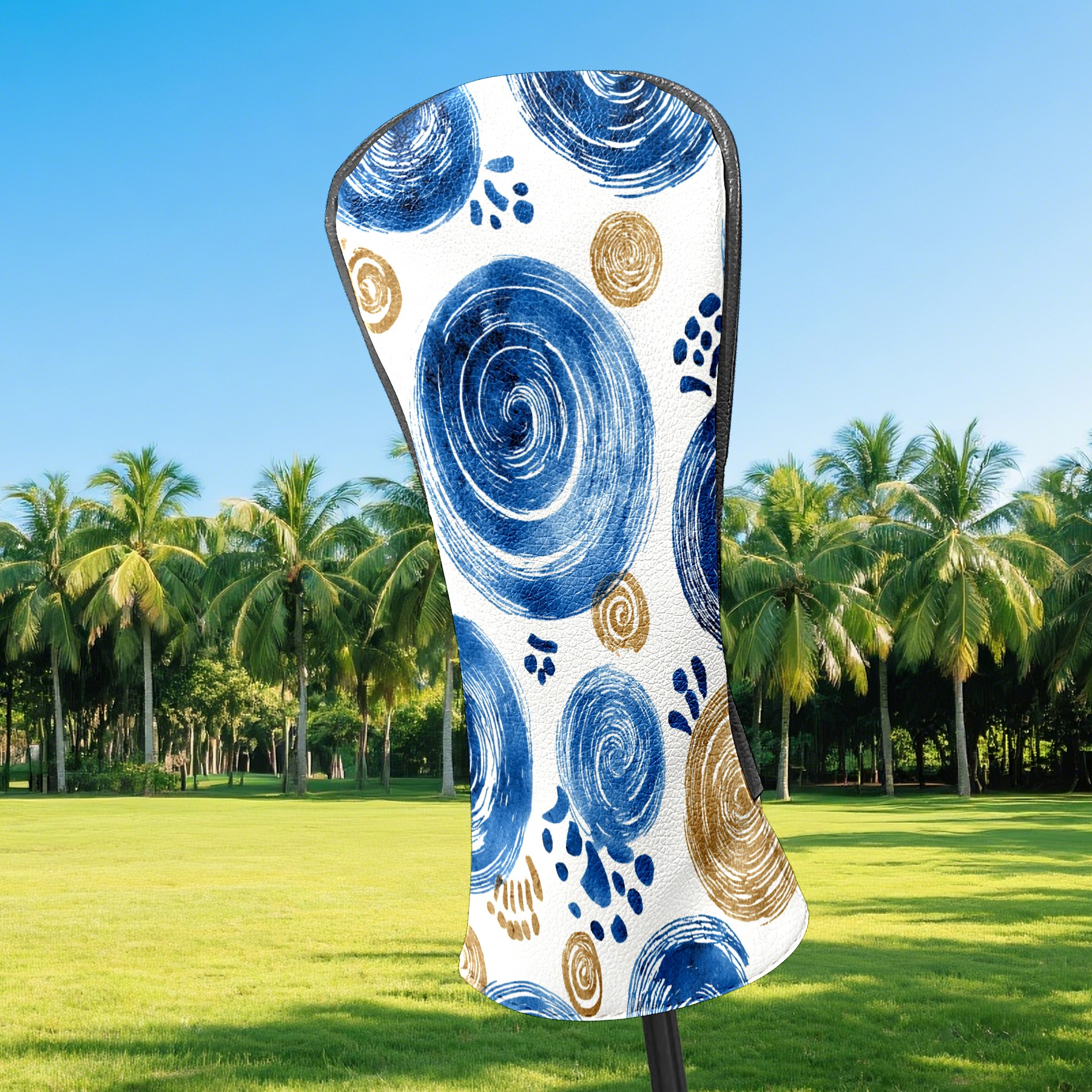Counullo Golf Head Covers - Blue Swirls Driver Fairway Headcover, Durable PU Leather & Soft Velvet Lining, Secure Elastic Band, Perfect Christmas Golf Gift for Men