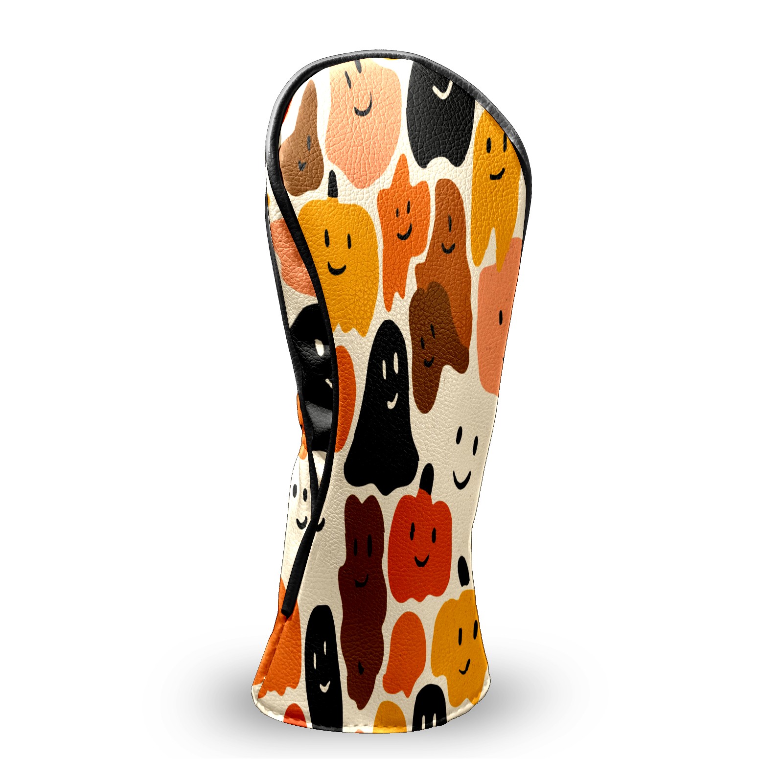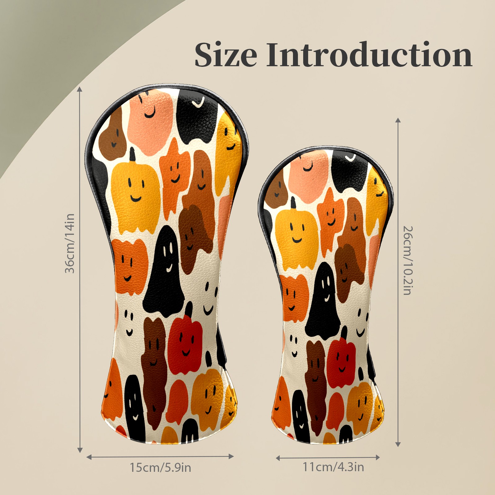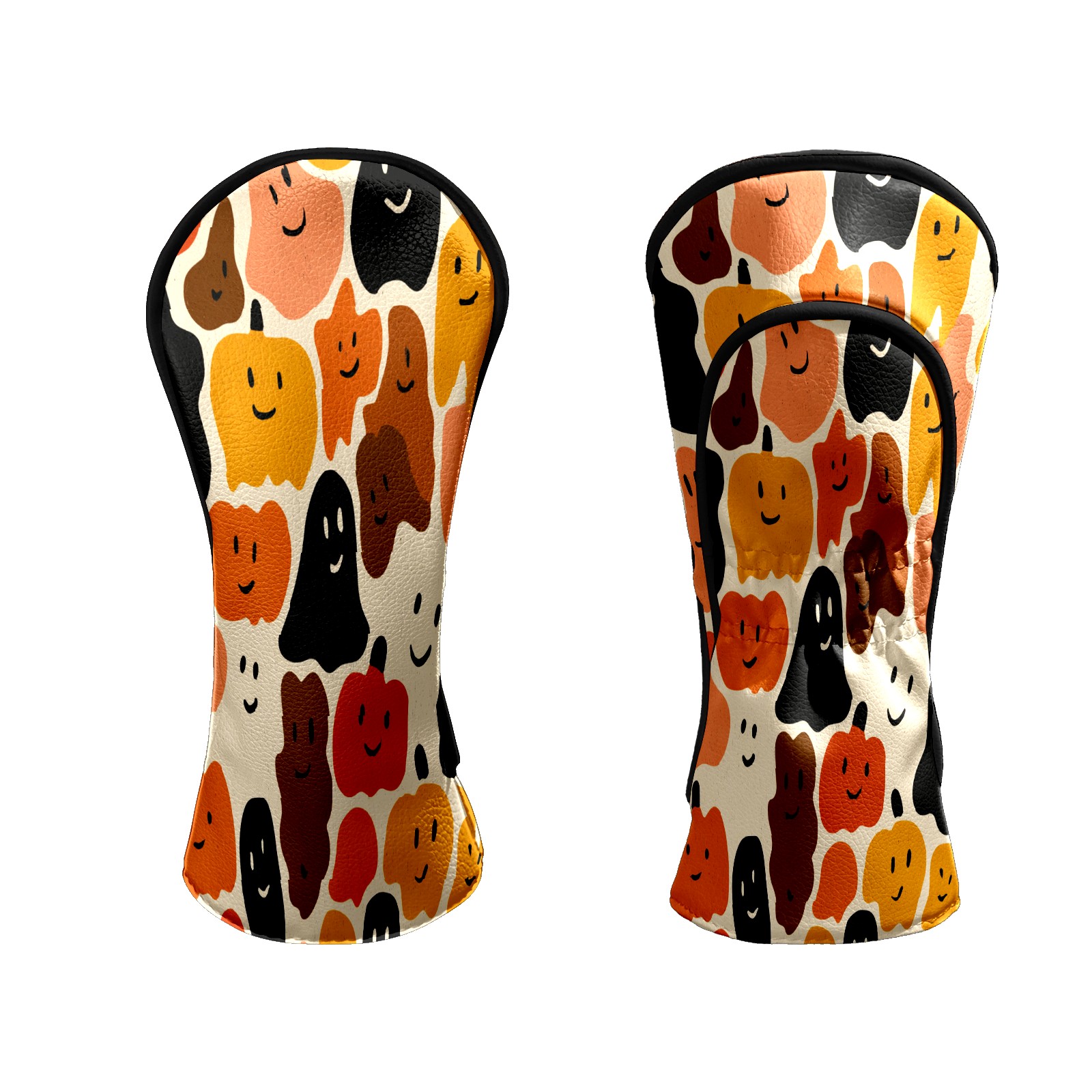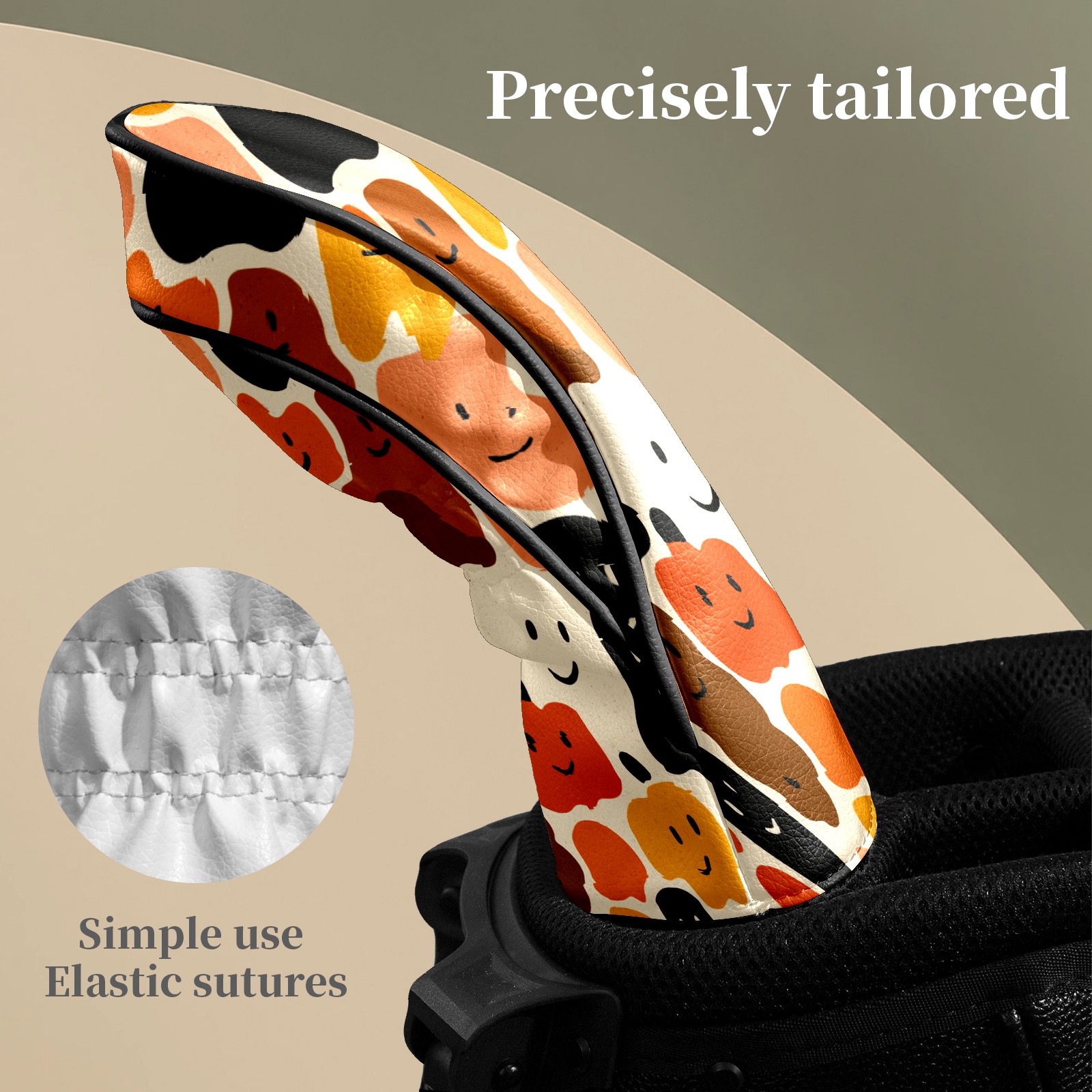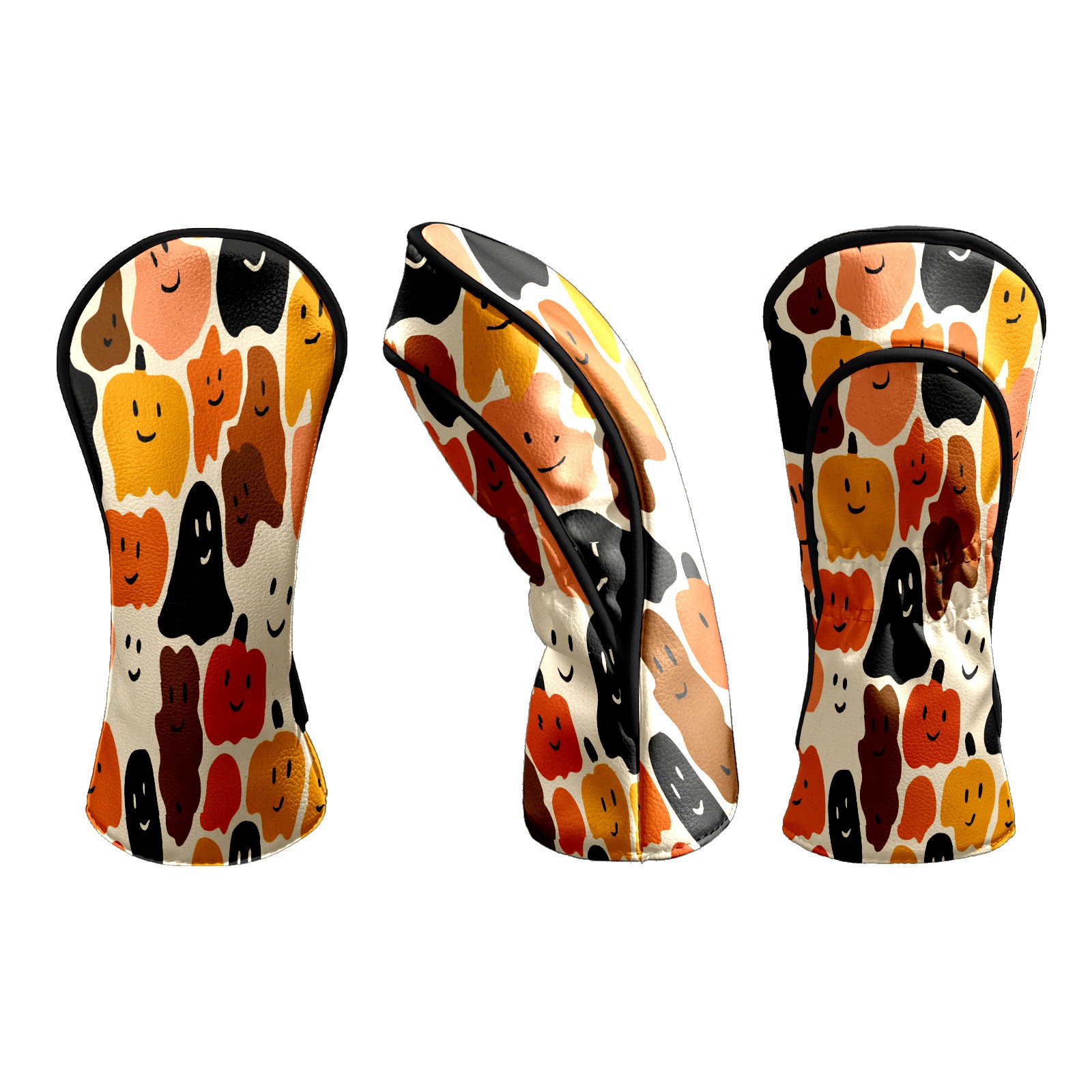 Counullo Golf Head Covers - Orange Halloween Faces Driver Fairway Headcover, Durable PU Leather & Soft Velvet Lining, Secure Elastic Band, Perfect Christmas Golf Gift for Men