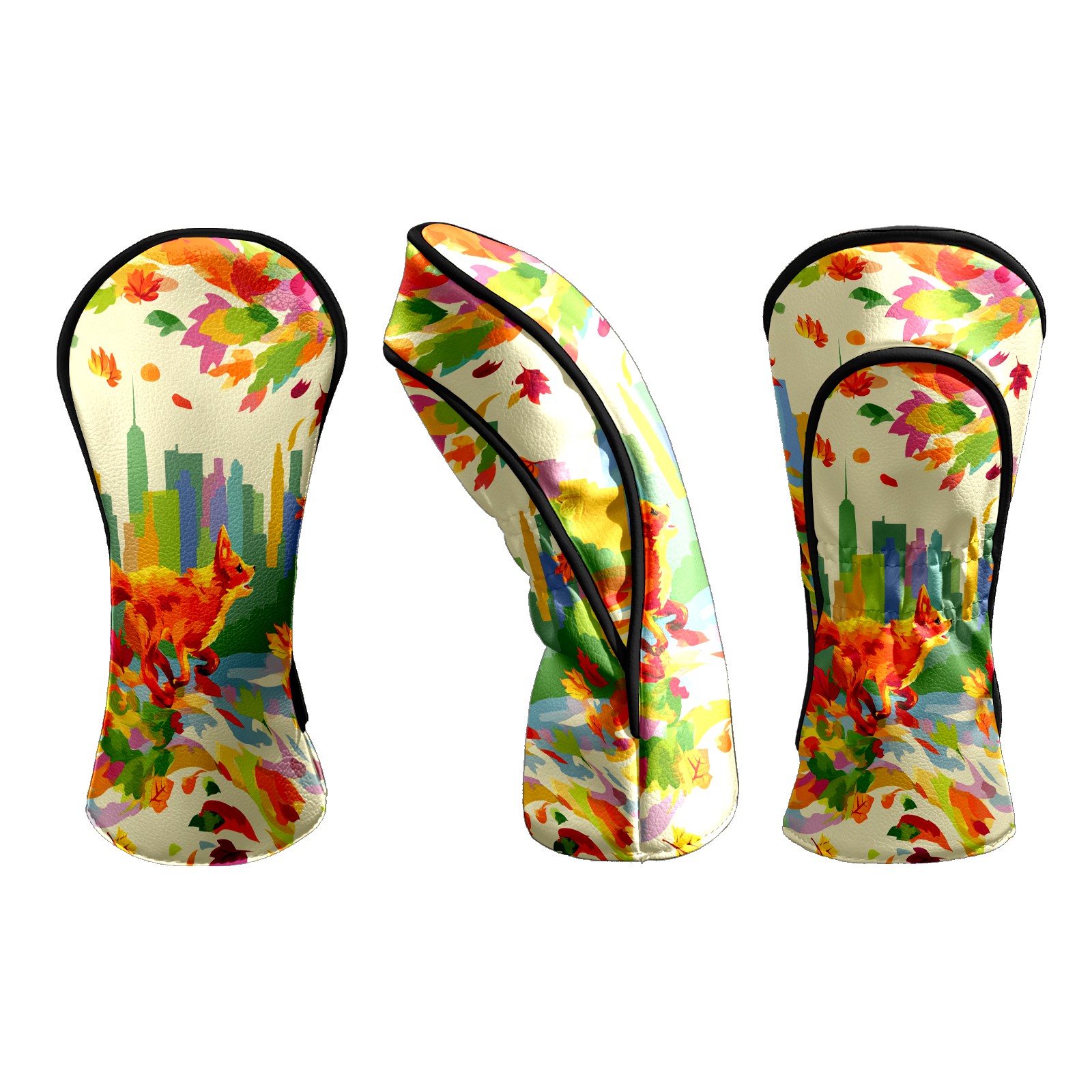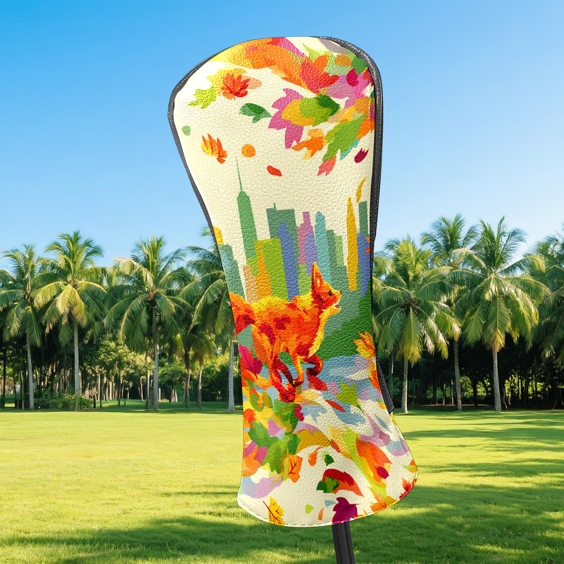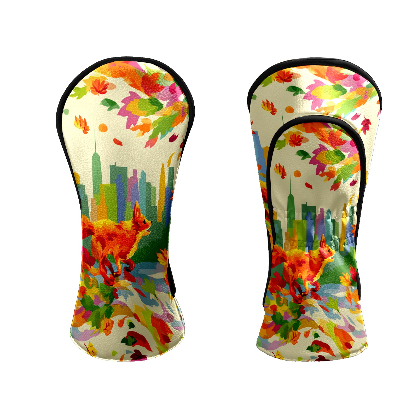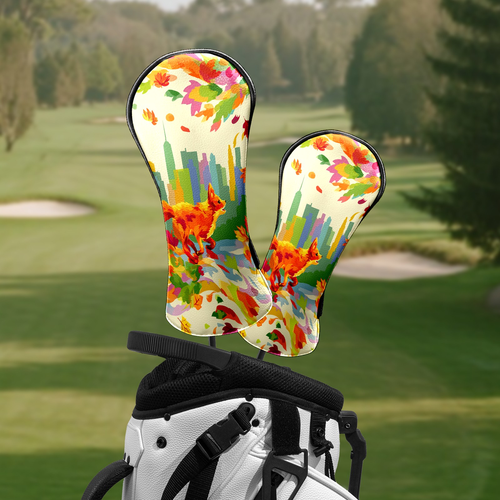 Counullo Golf Head Covers - Multicolor Fox City Driver Fairway Headcover, Durable PU Leather & Soft Velvet Lining, Secure Elastic Band, Perfect Christmas Golf Gift for Men
