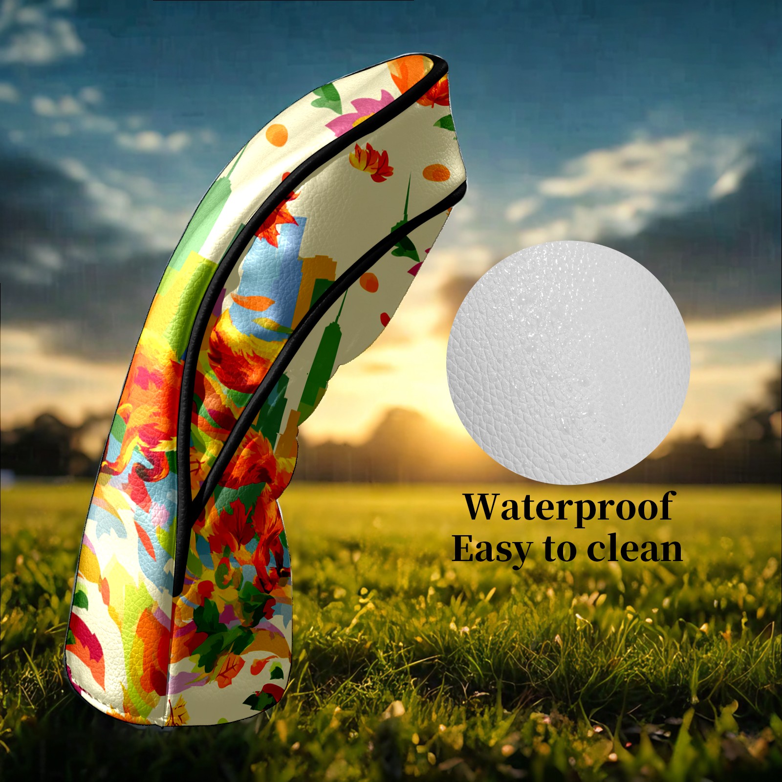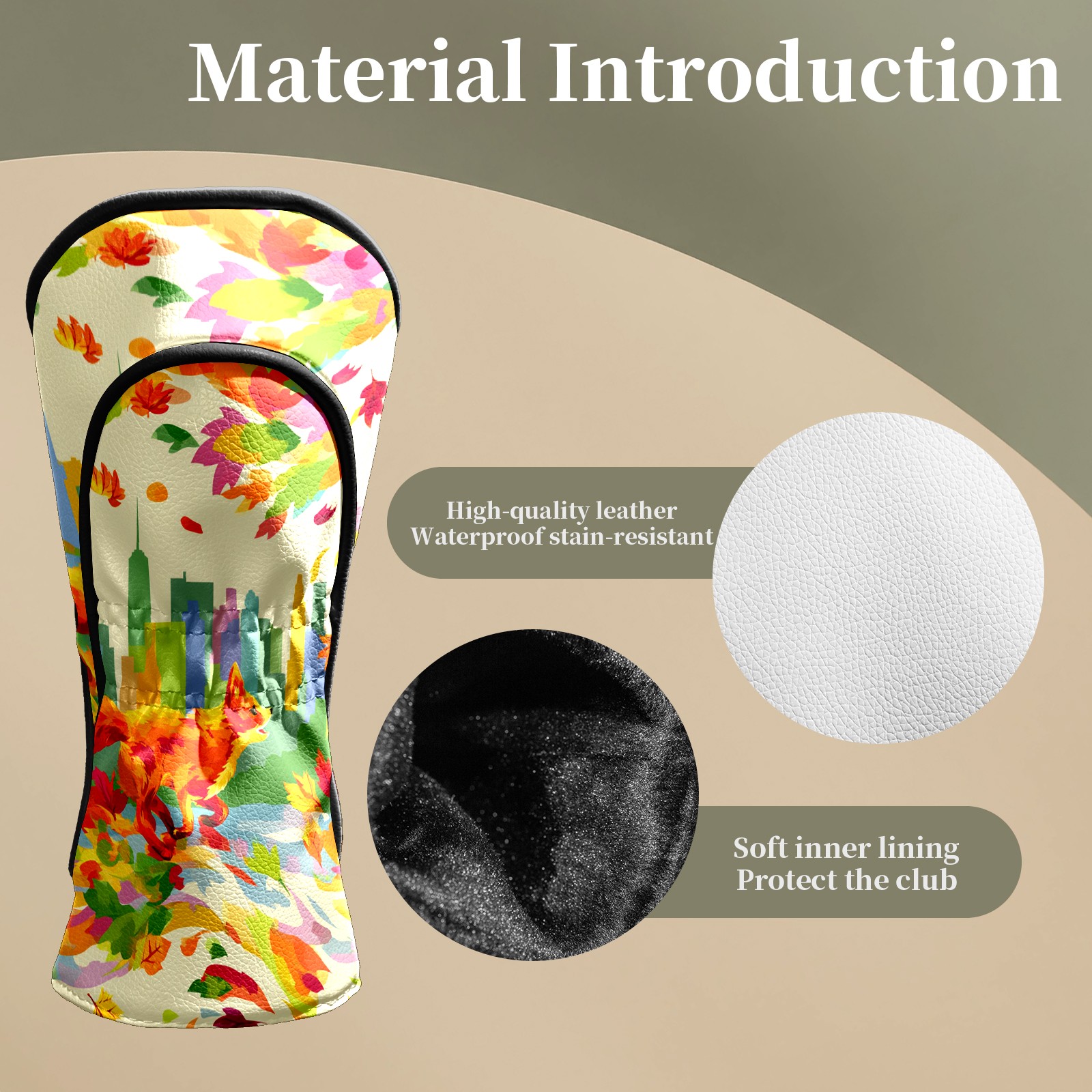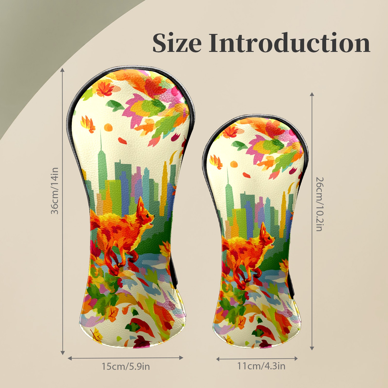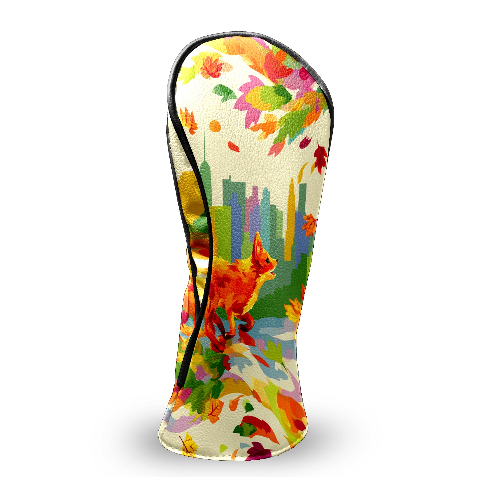 Counullo Golf Head Covers - Multicolor Fox City Driver Fairway Headcover, Durable PU Leather & Soft Velvet Lining, Secure Elastic Band, Perfect Christmas Golf Gift for Men