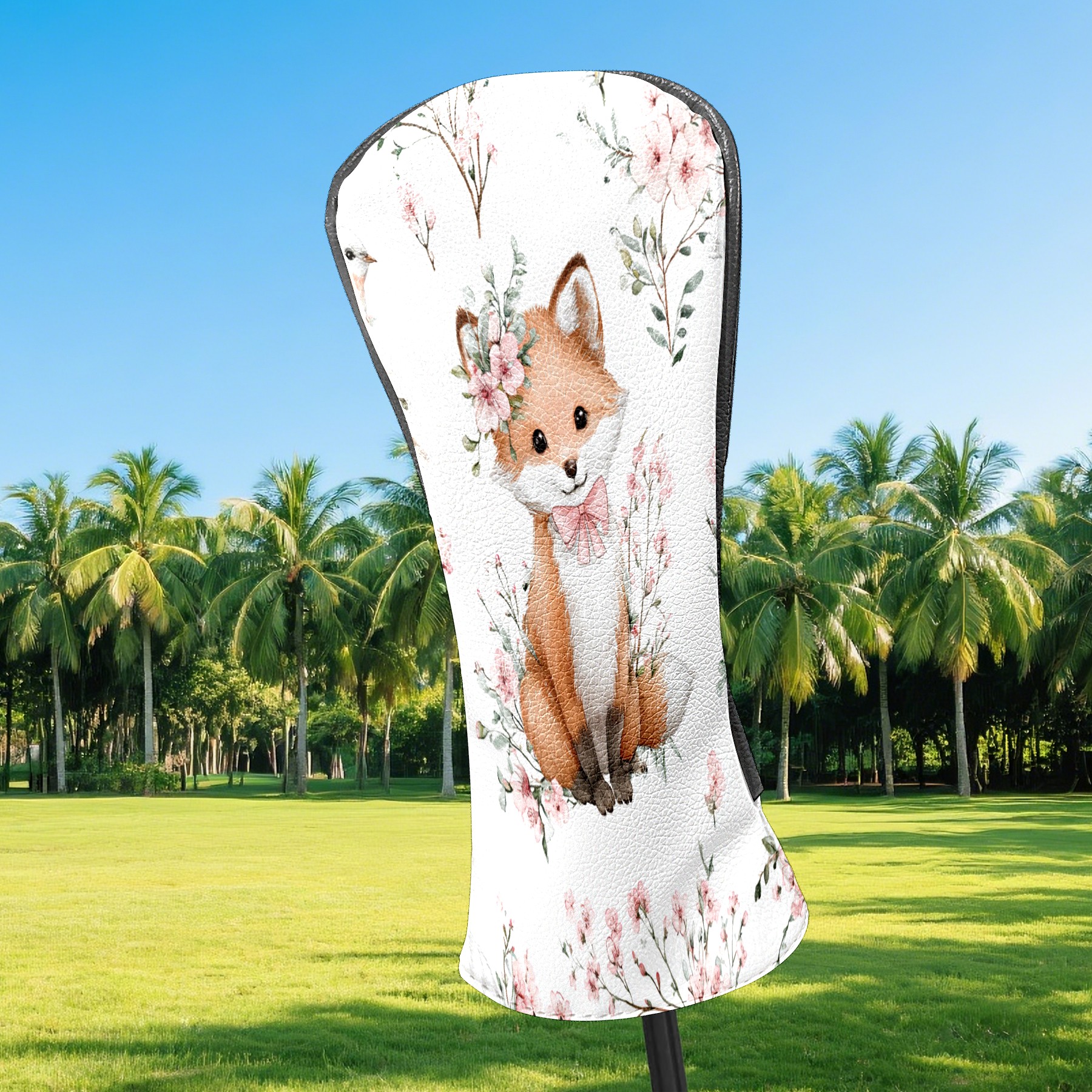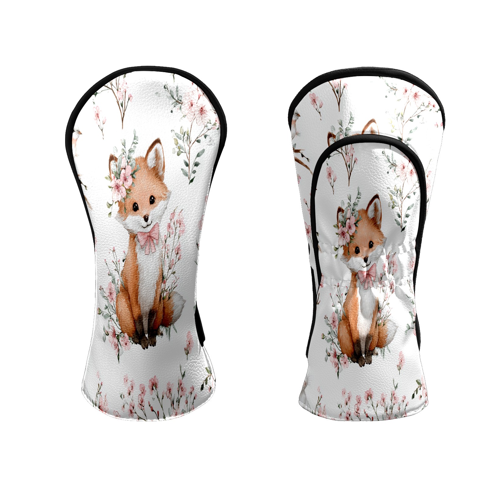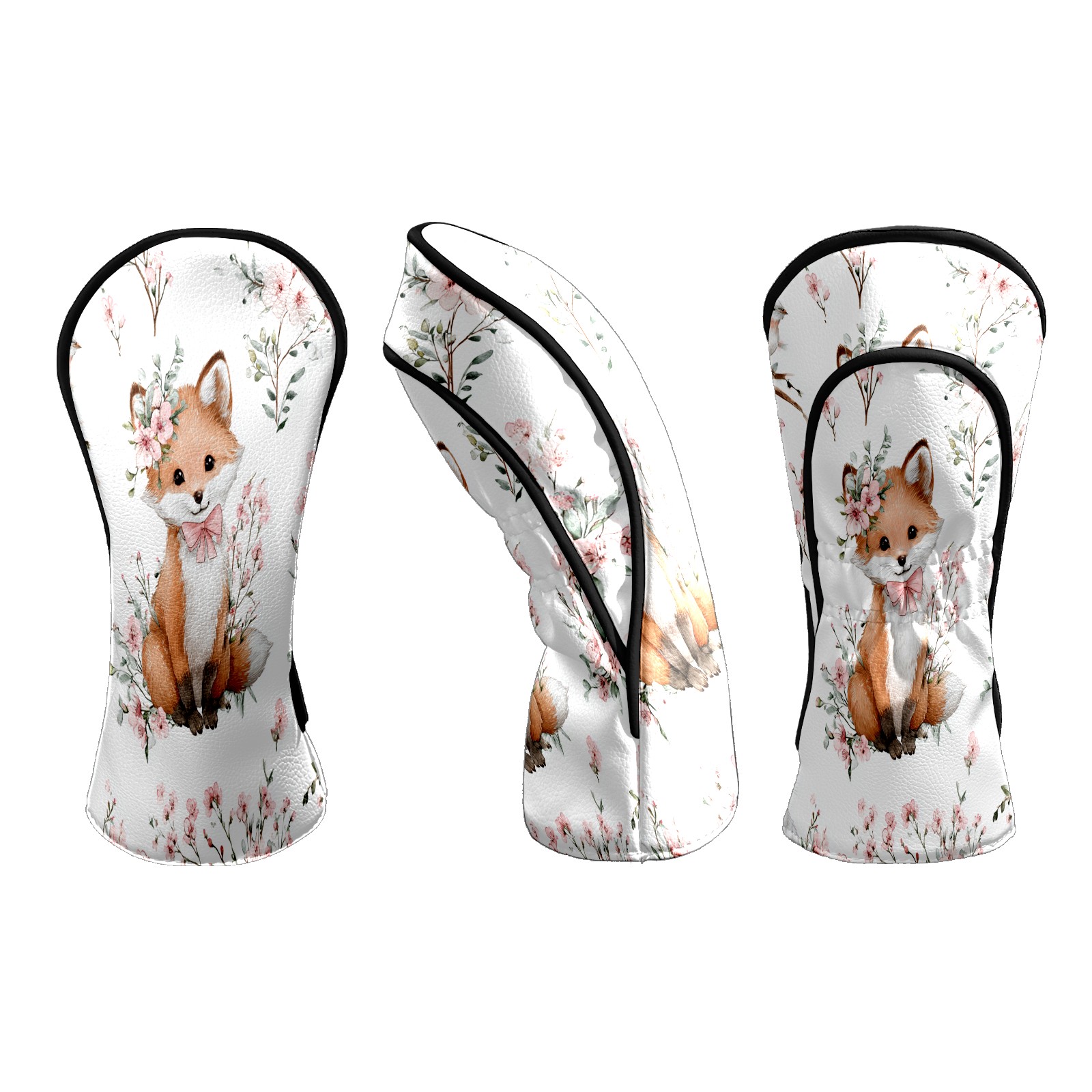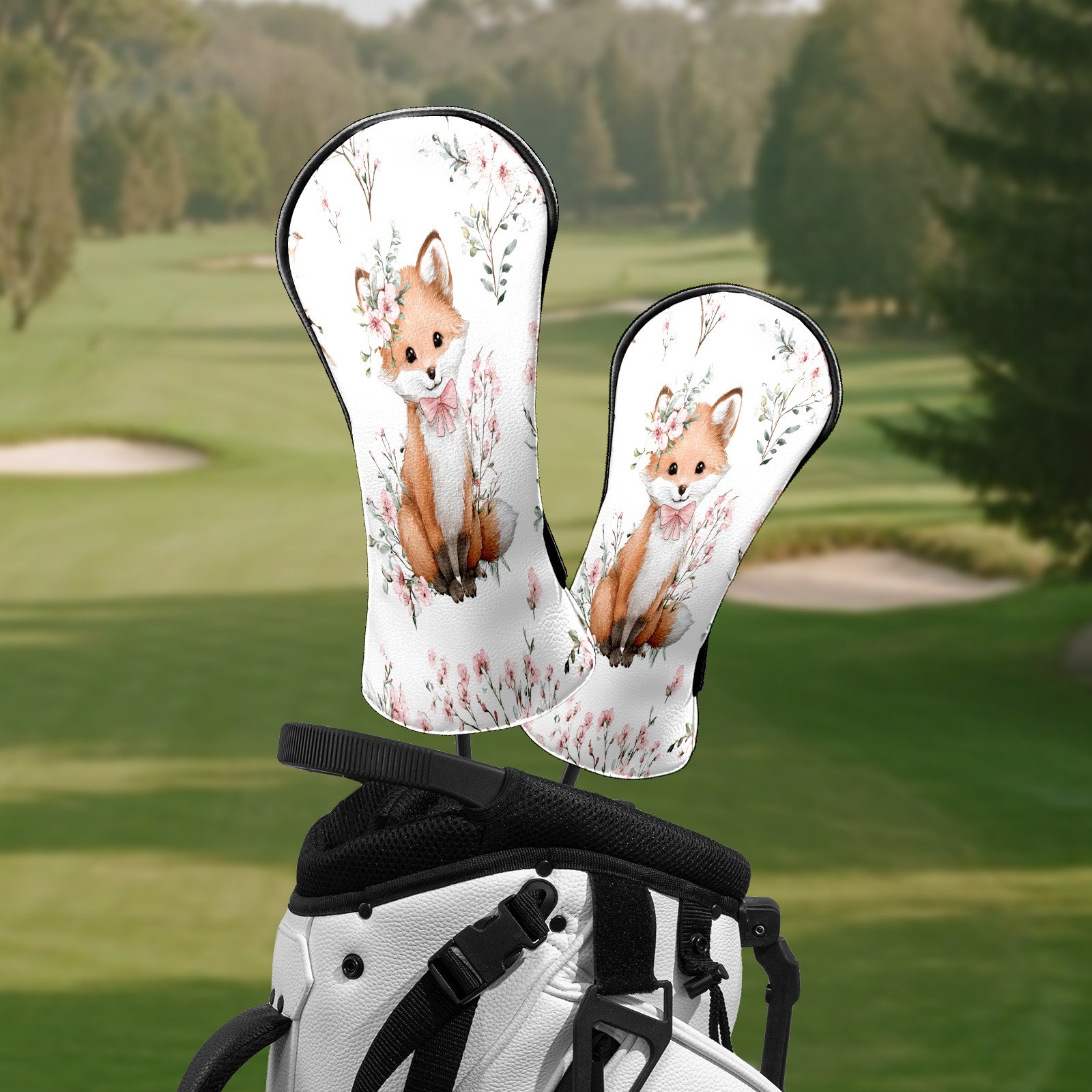 Counullo Golf Head Covers - White Flower Fox Driver Fairway Headcover, Durable PU Leather & Soft Velvet Lining, Secure Elastic Band, Perfect Christmas Golf Gift for Men