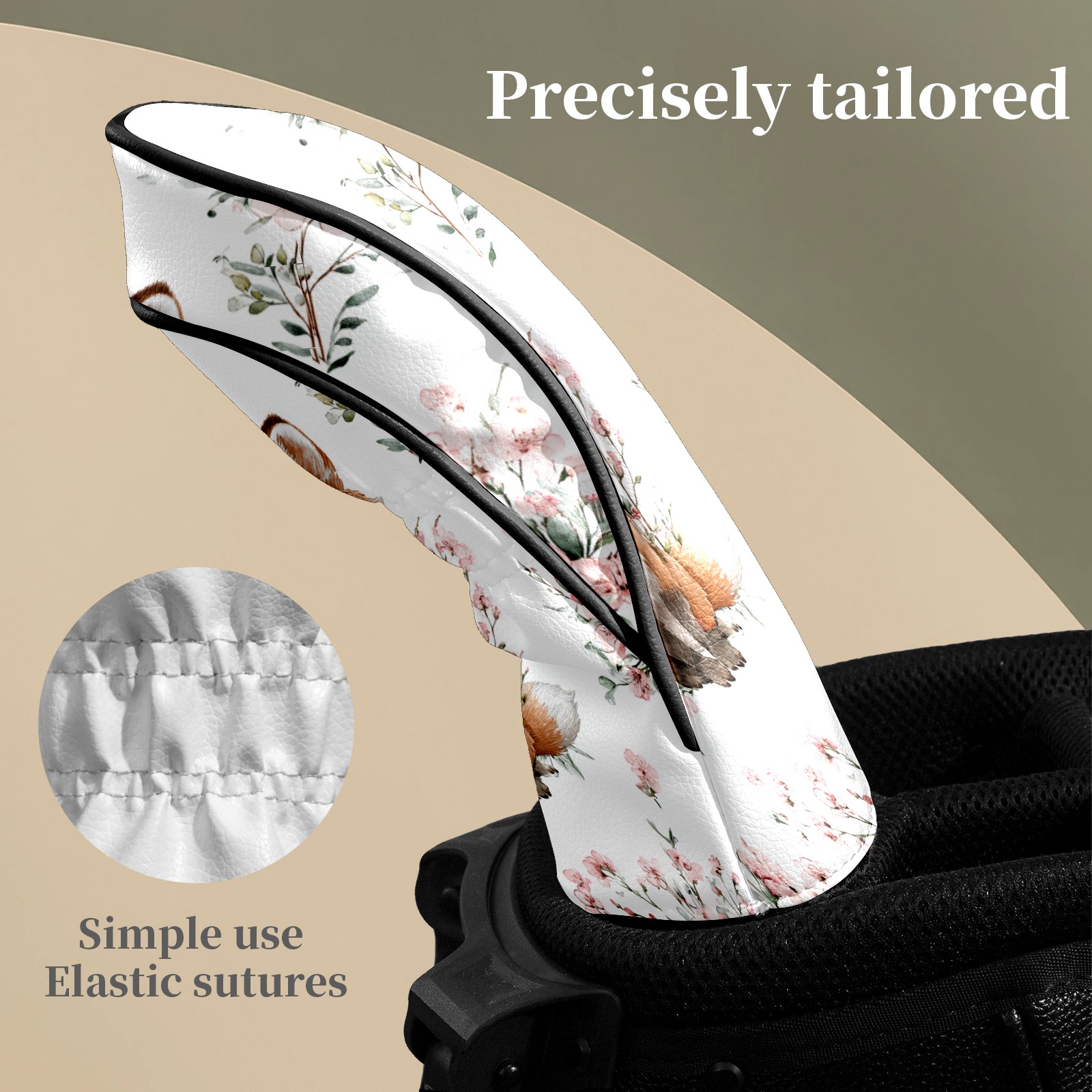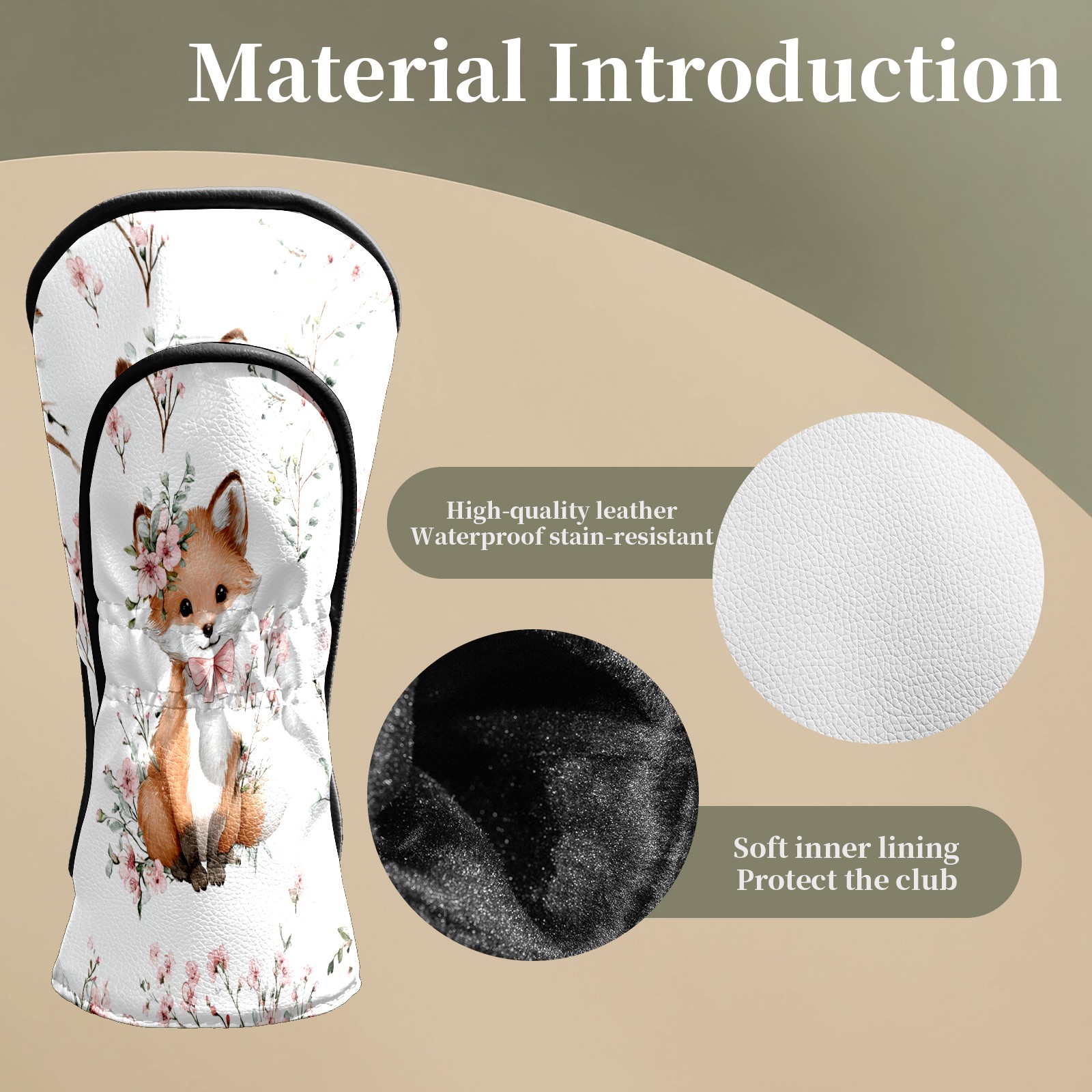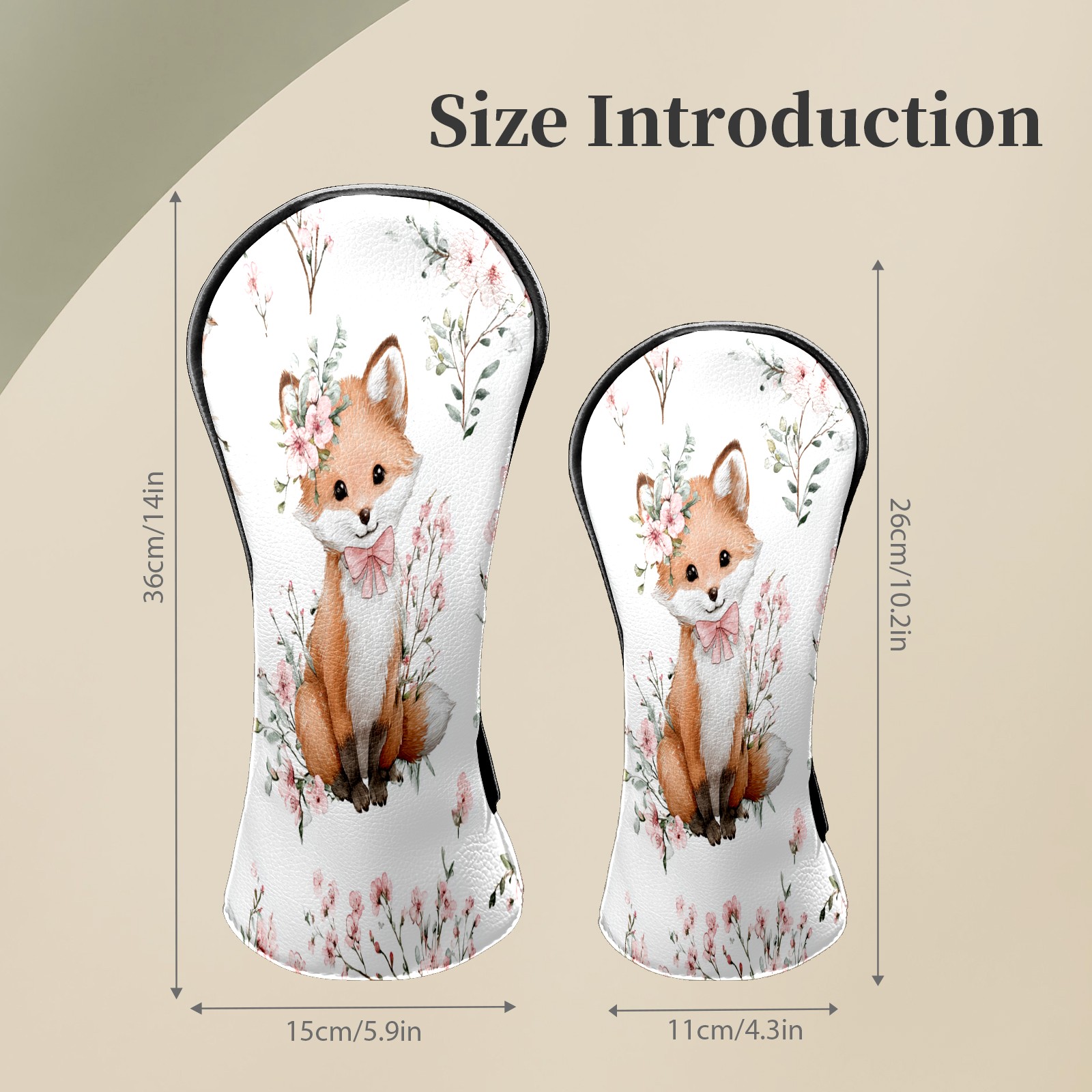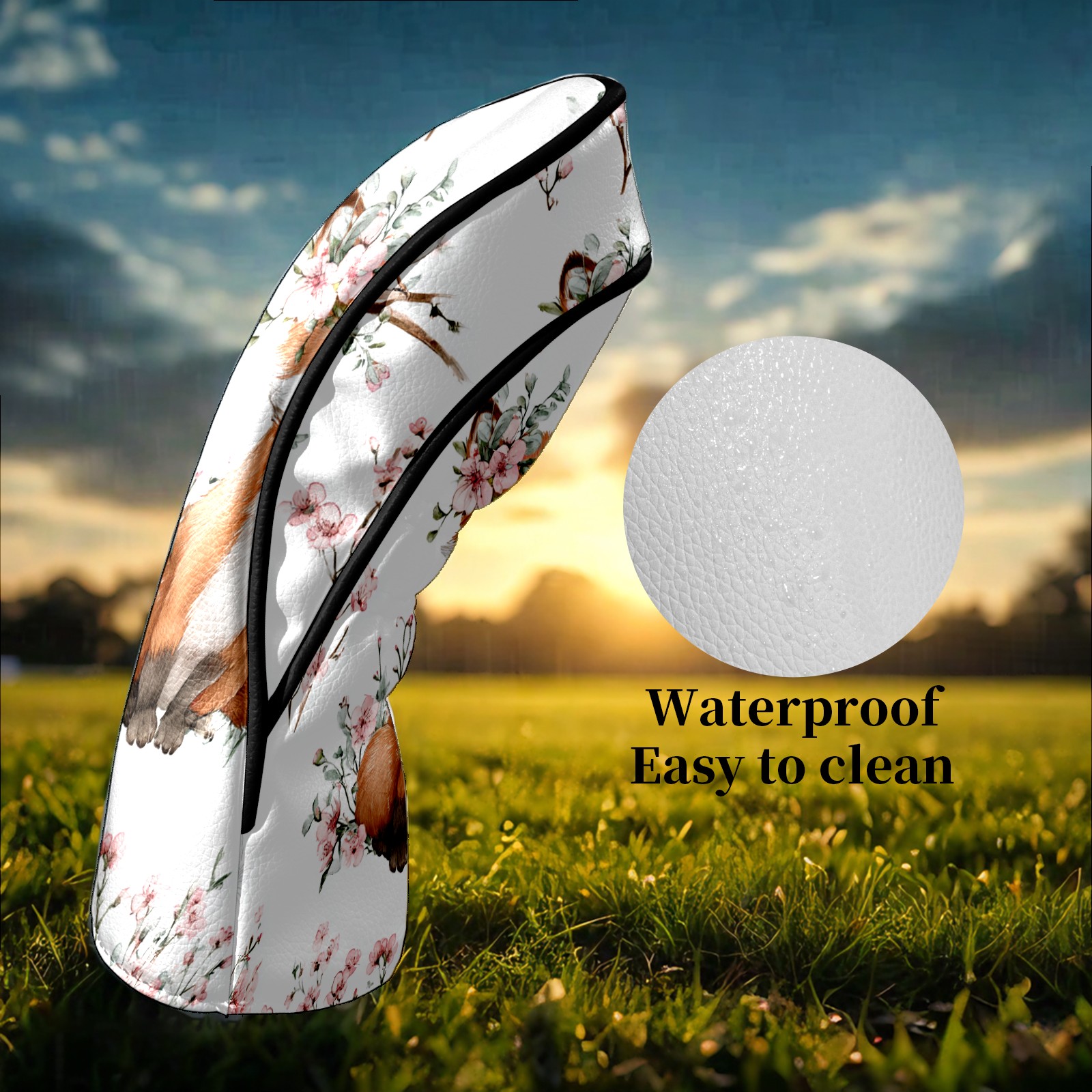 Counullo Golf Head Covers - White Flower Fox Driver Fairway Headcover, Durable PU Leather & Soft Velvet Lining, Secure Elastic Band, Perfect Christmas Golf Gift for Men