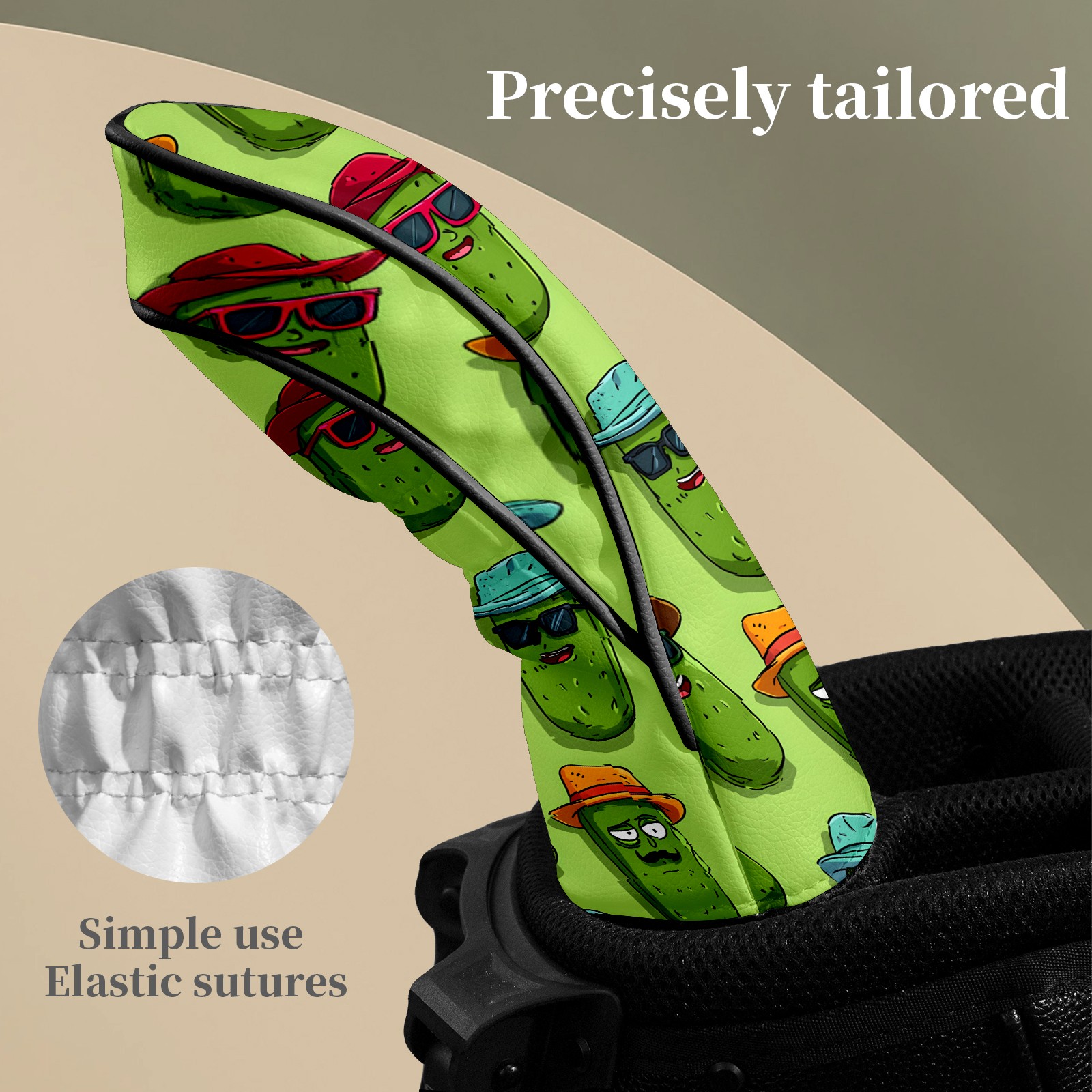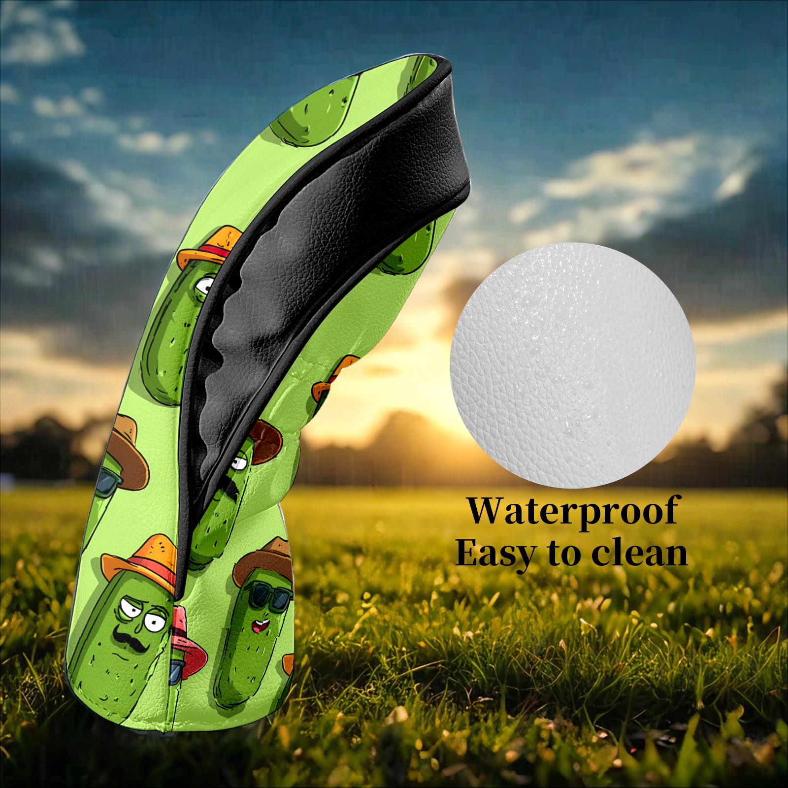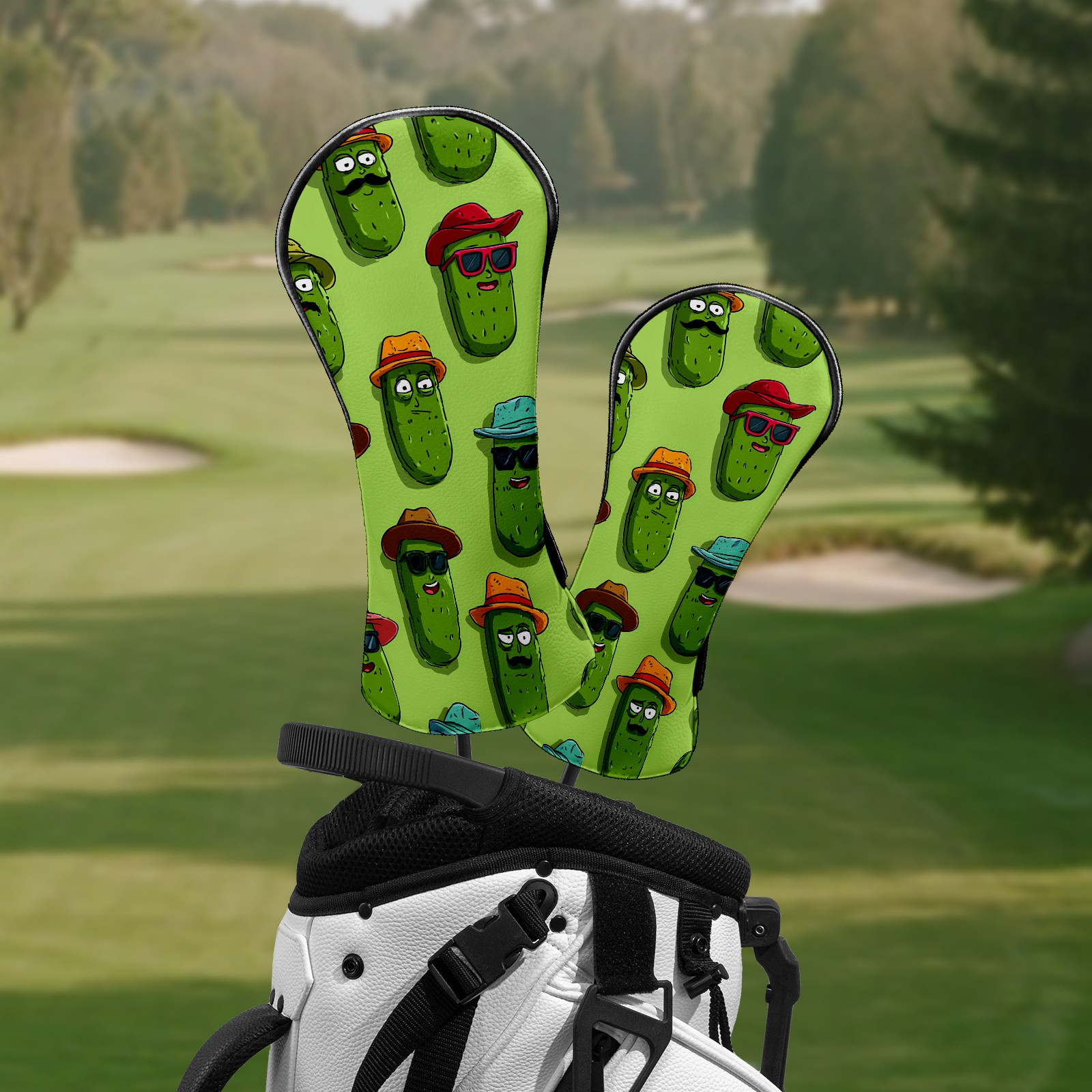Counullo Golf Head Covers - Pickles Green Driver Fairway Headcover, Durable PU Leather & Soft Velvet Lining, Secure Elastic Band, Perfect Christmas Golf Gift for Men