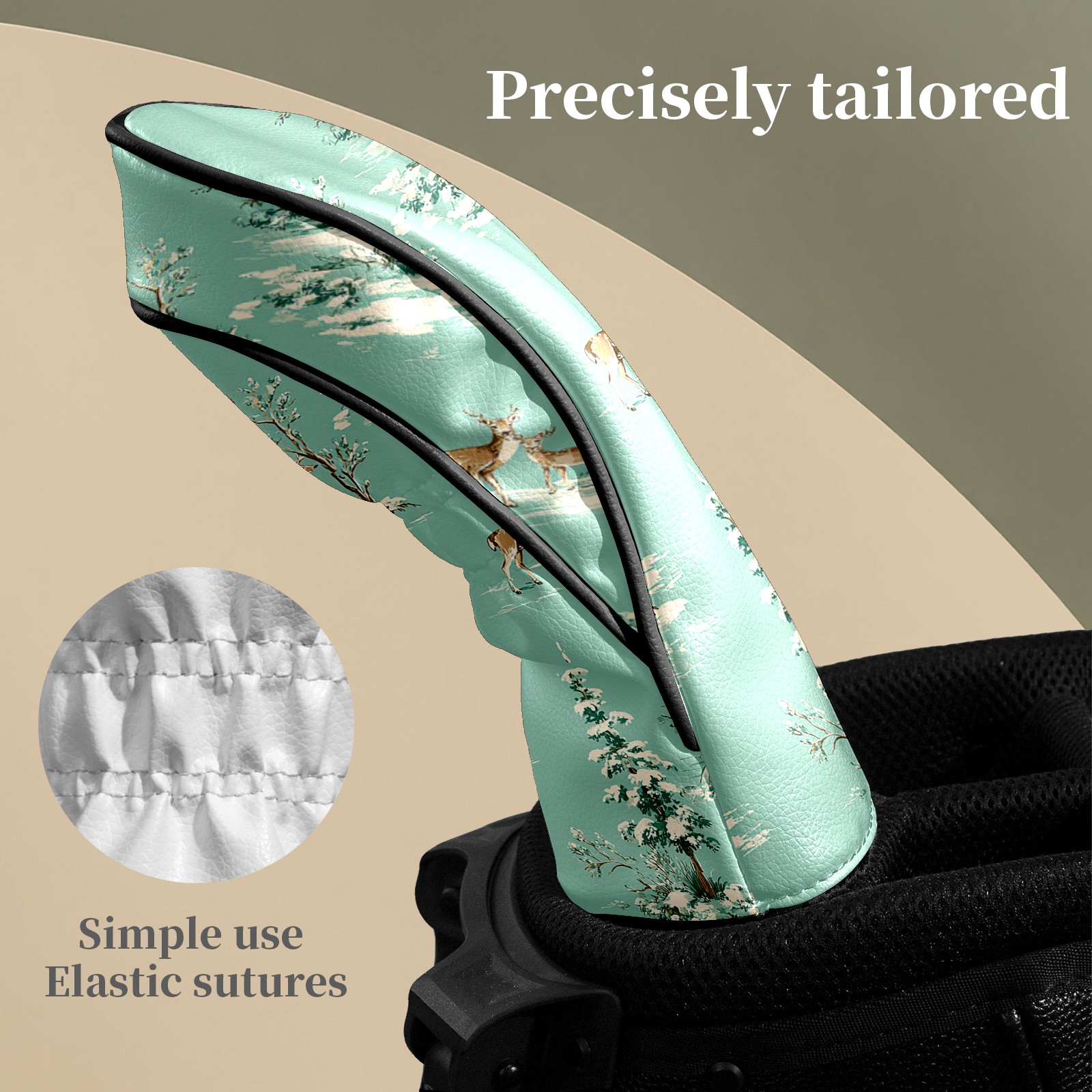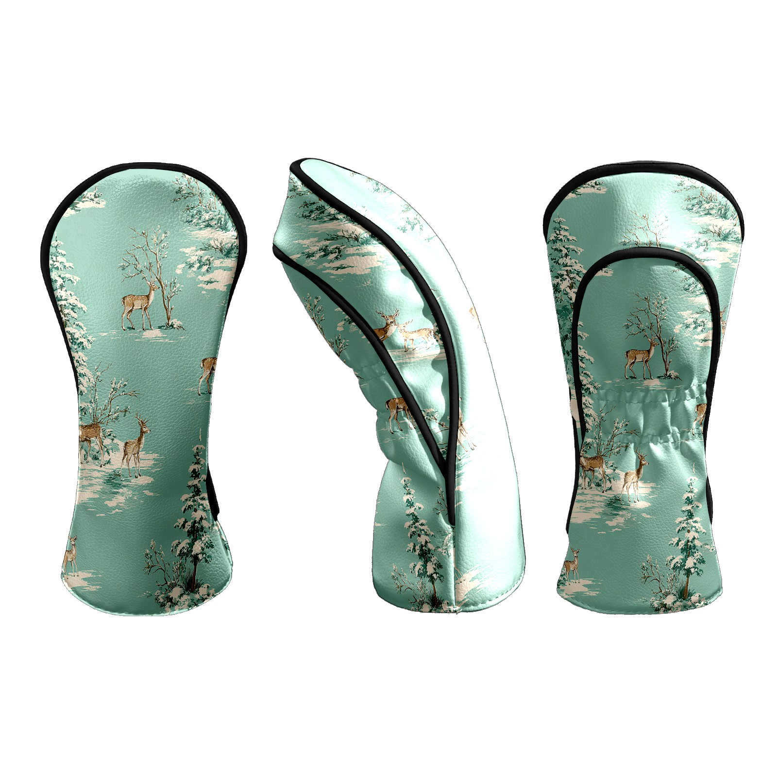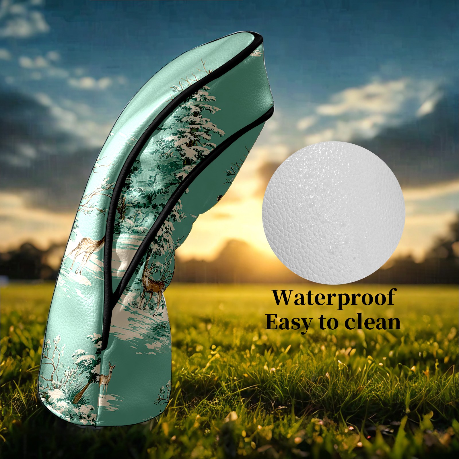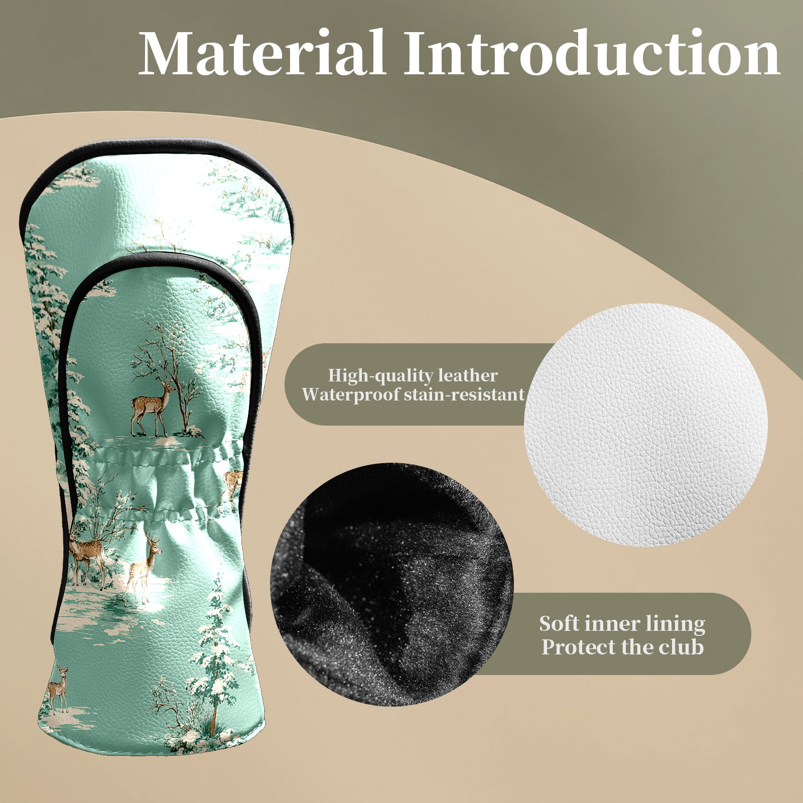 Counullo Golf Head Covers - Deer Snow Teal Driver Fairway Headcover, Durable PU Leather & Soft Velvet Lining, Secure Elastic Band, Perfect Christmas Golf Gift for Men