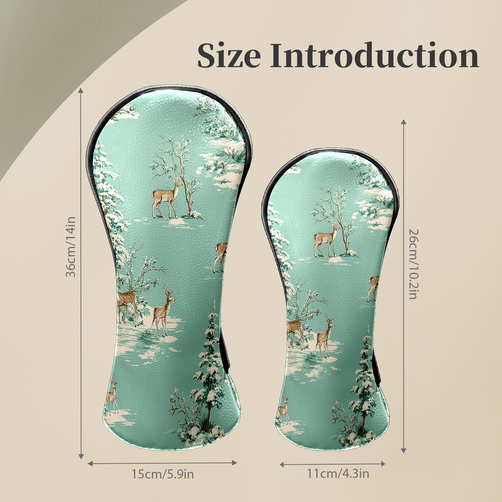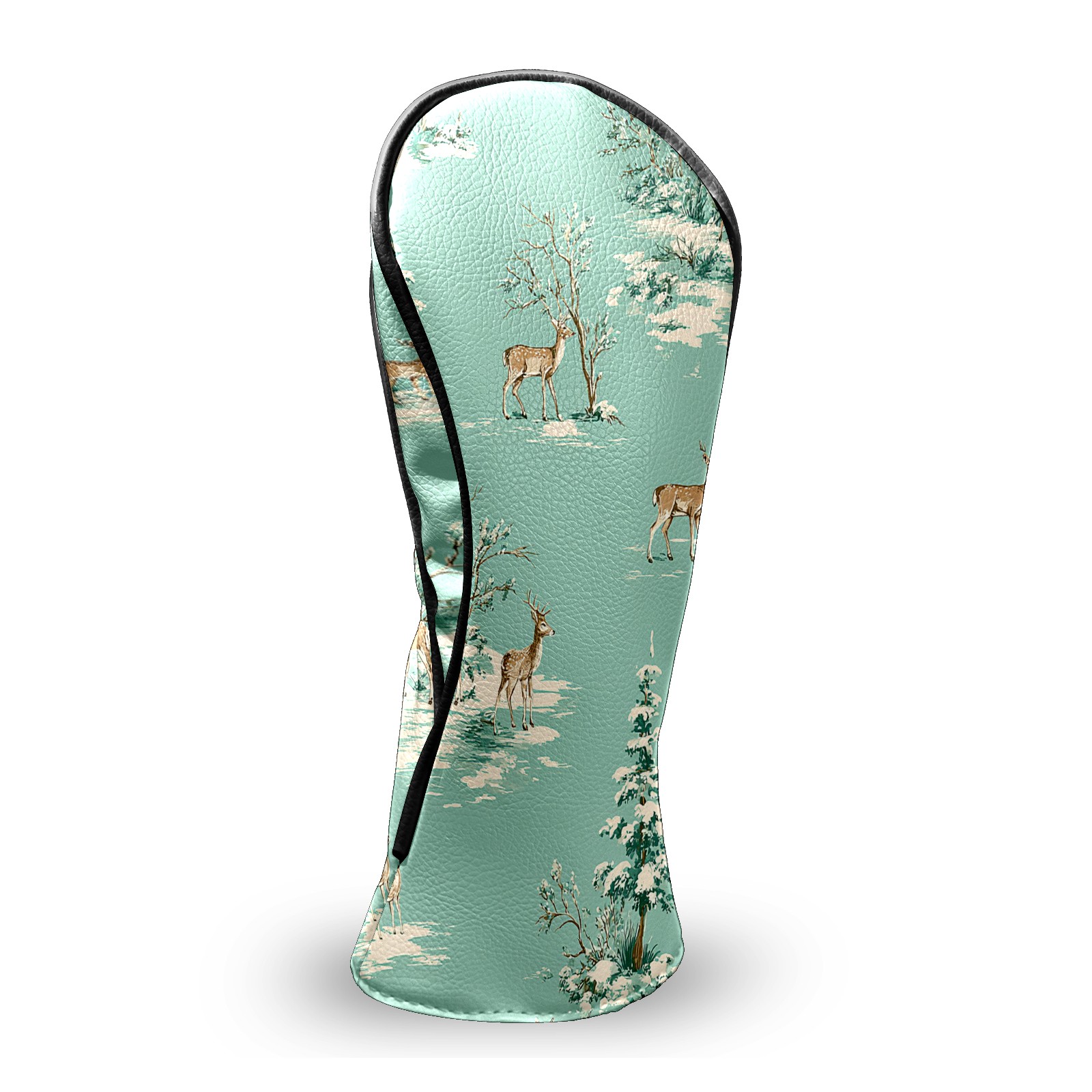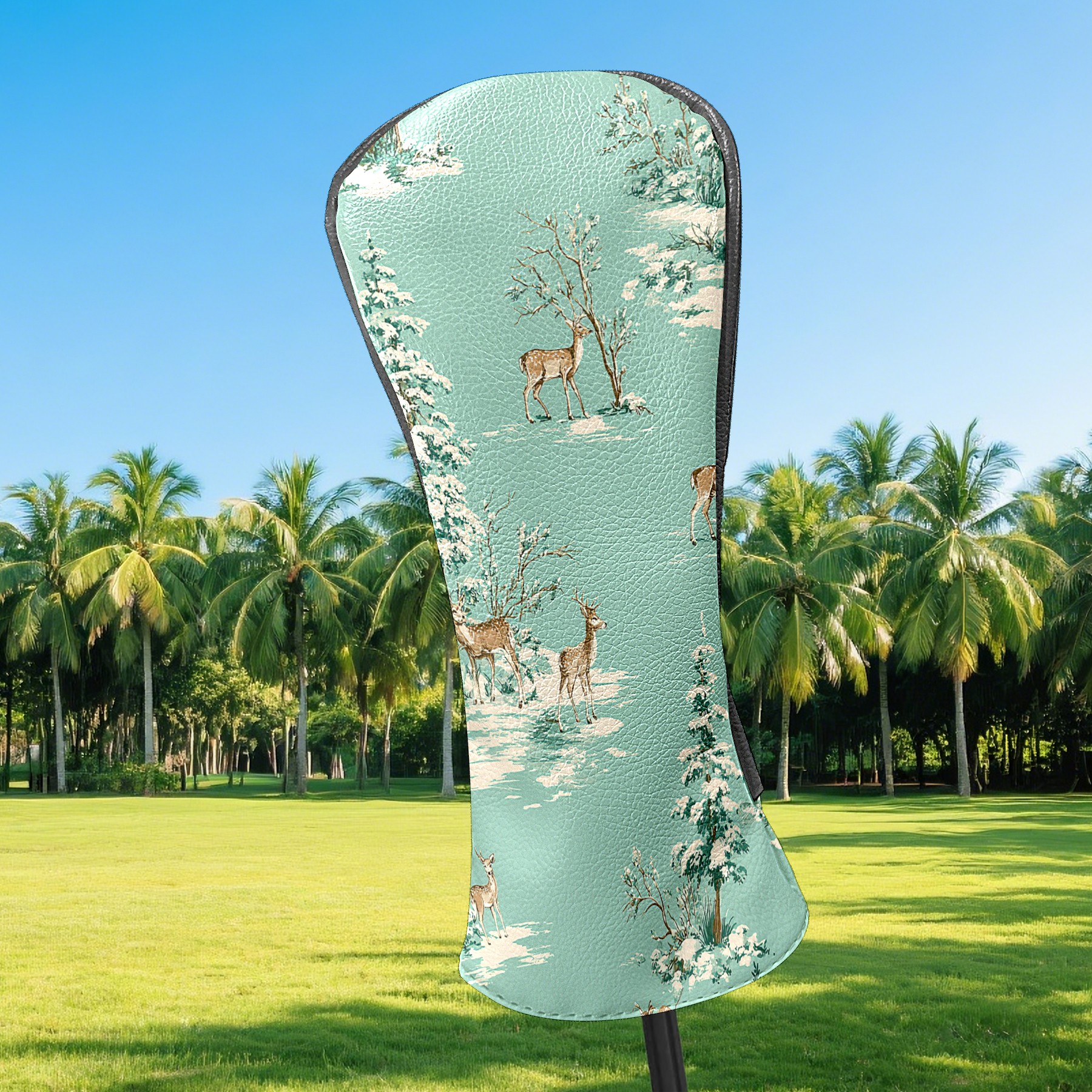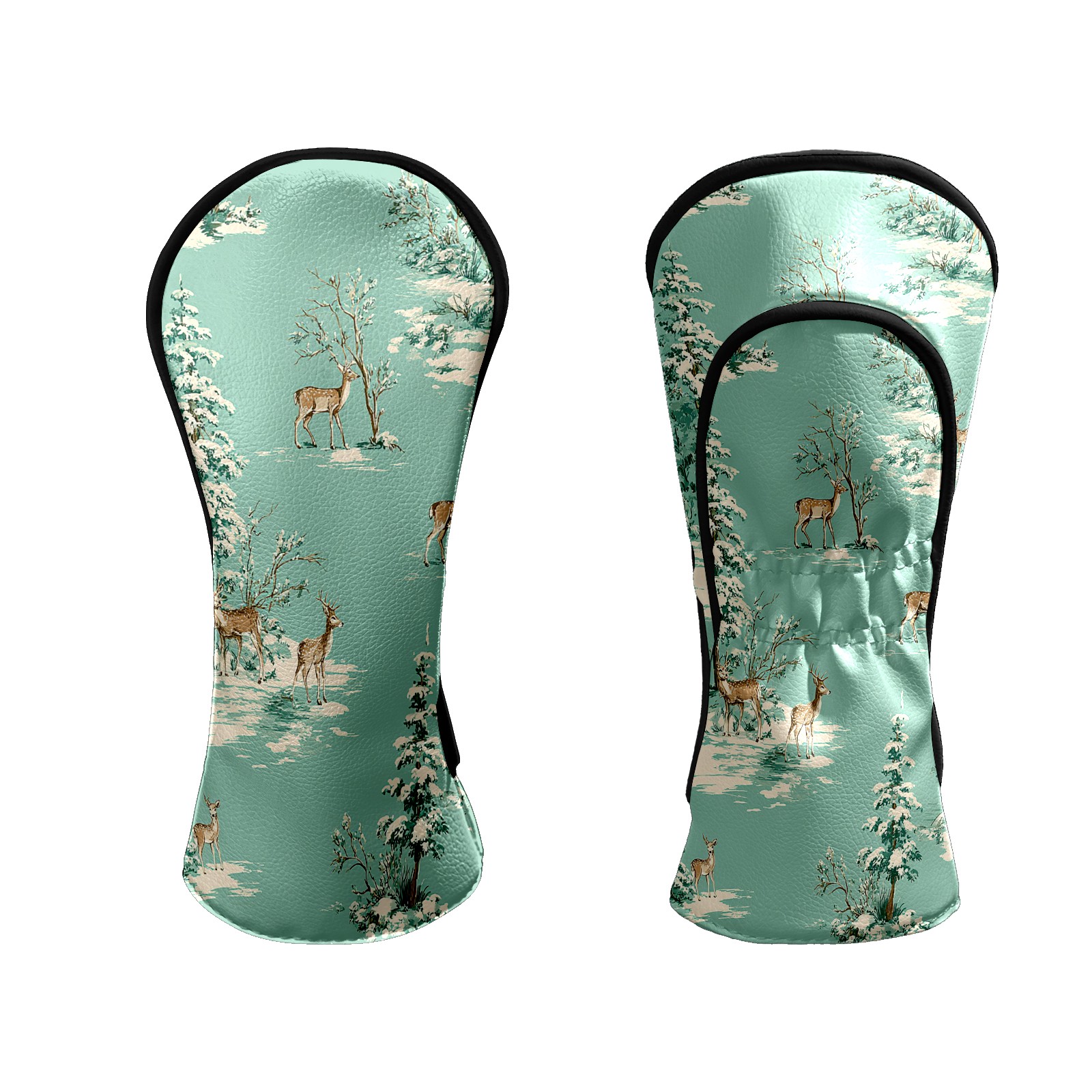 Counullo Golf Head Covers - Deer Snow Teal Driver Fairway Headcover, Durable PU Leather & Soft Velvet Lining, Secure Elastic Band, Perfect Christmas Golf Gift for Men