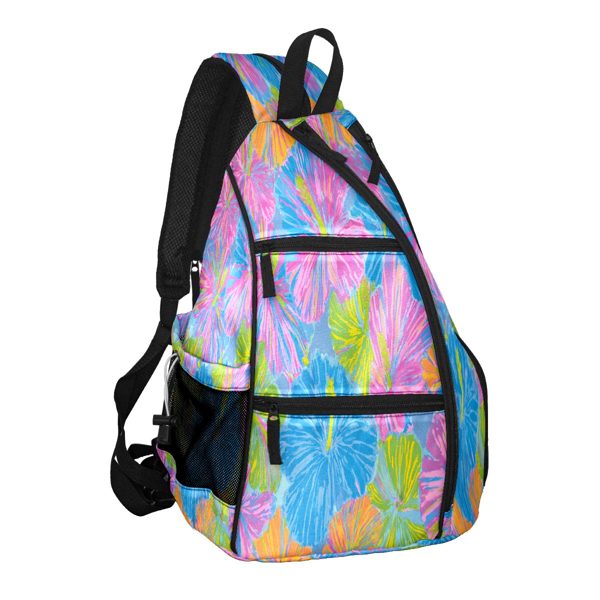 Pickleball Sling Bag for Women and Men - Backpack with Nylon Fabric/Woven Strap/Mesh Pocket/Fence Hook/Adjustable Bag Tropical Floral Multicolor