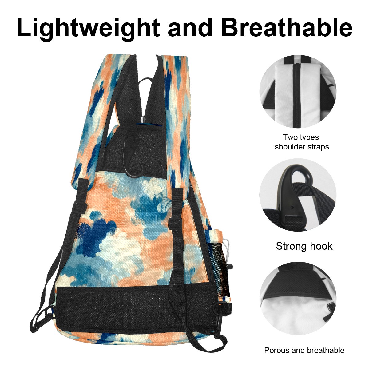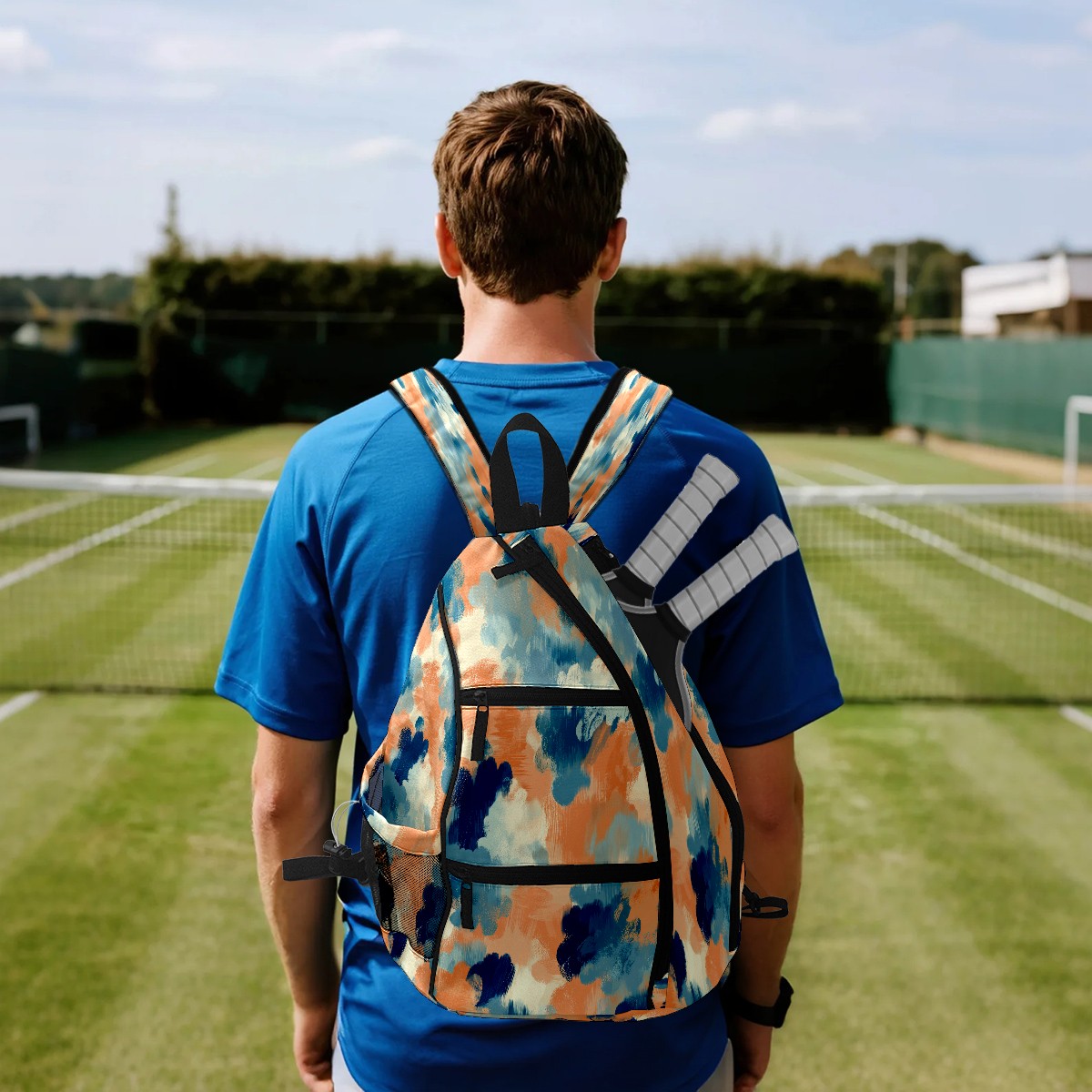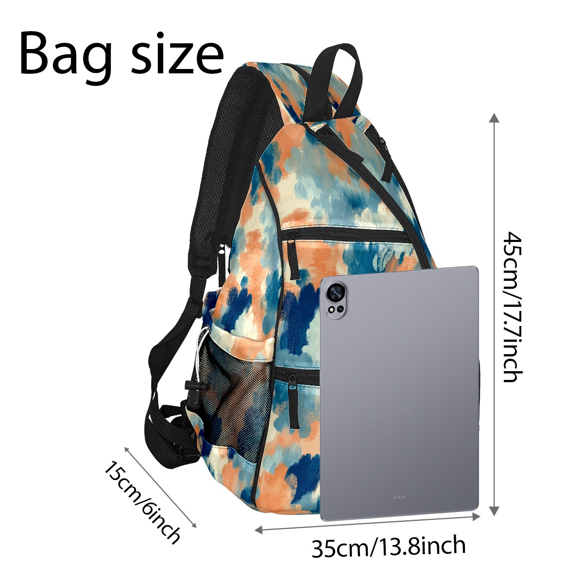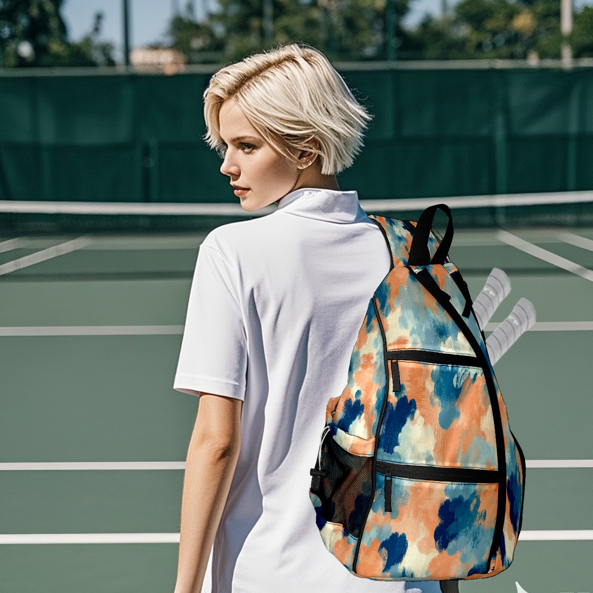 Pickleball Sling Bag for Women and Men - Backpack with Nylon Fabric/Woven Strap/Mesh Pocket/Fence Hook/Adjustable Bag Orange Blue Watercolor