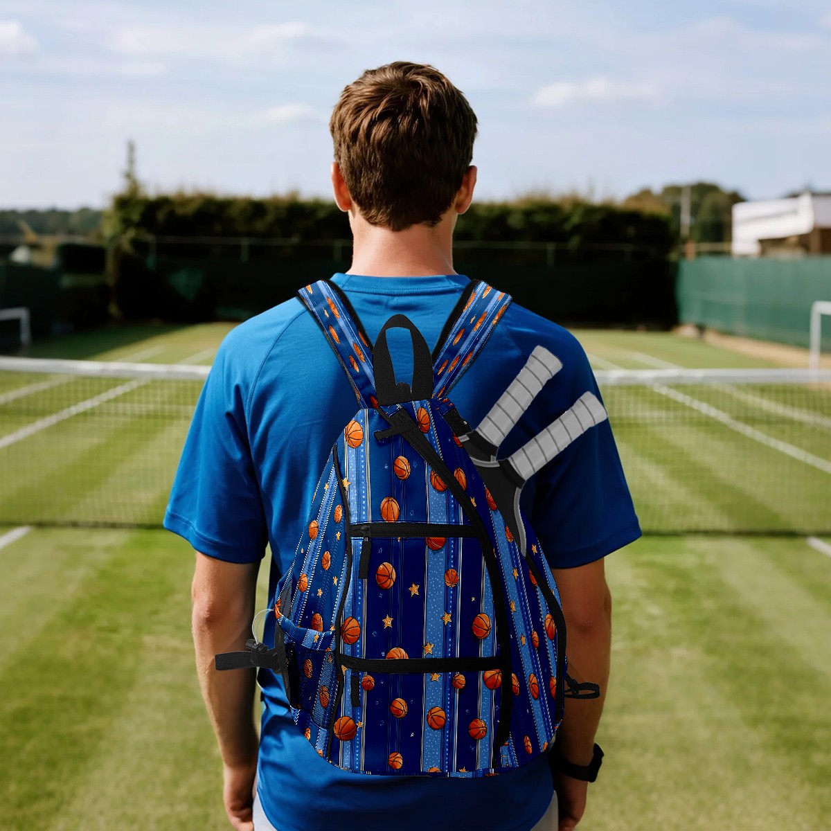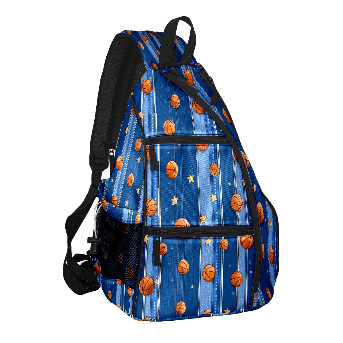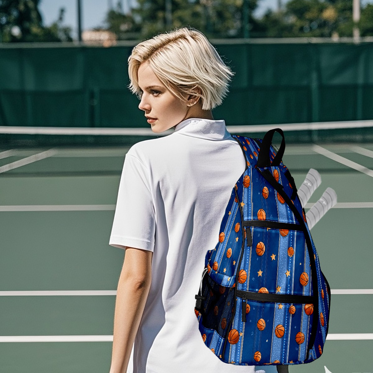 Pickleball Sling Bag for Women and Men - Backpack with Nylon Fabric/Woven Strap/Mesh Pocket/Fence Hook/Adjustable Bag Basketball Blue