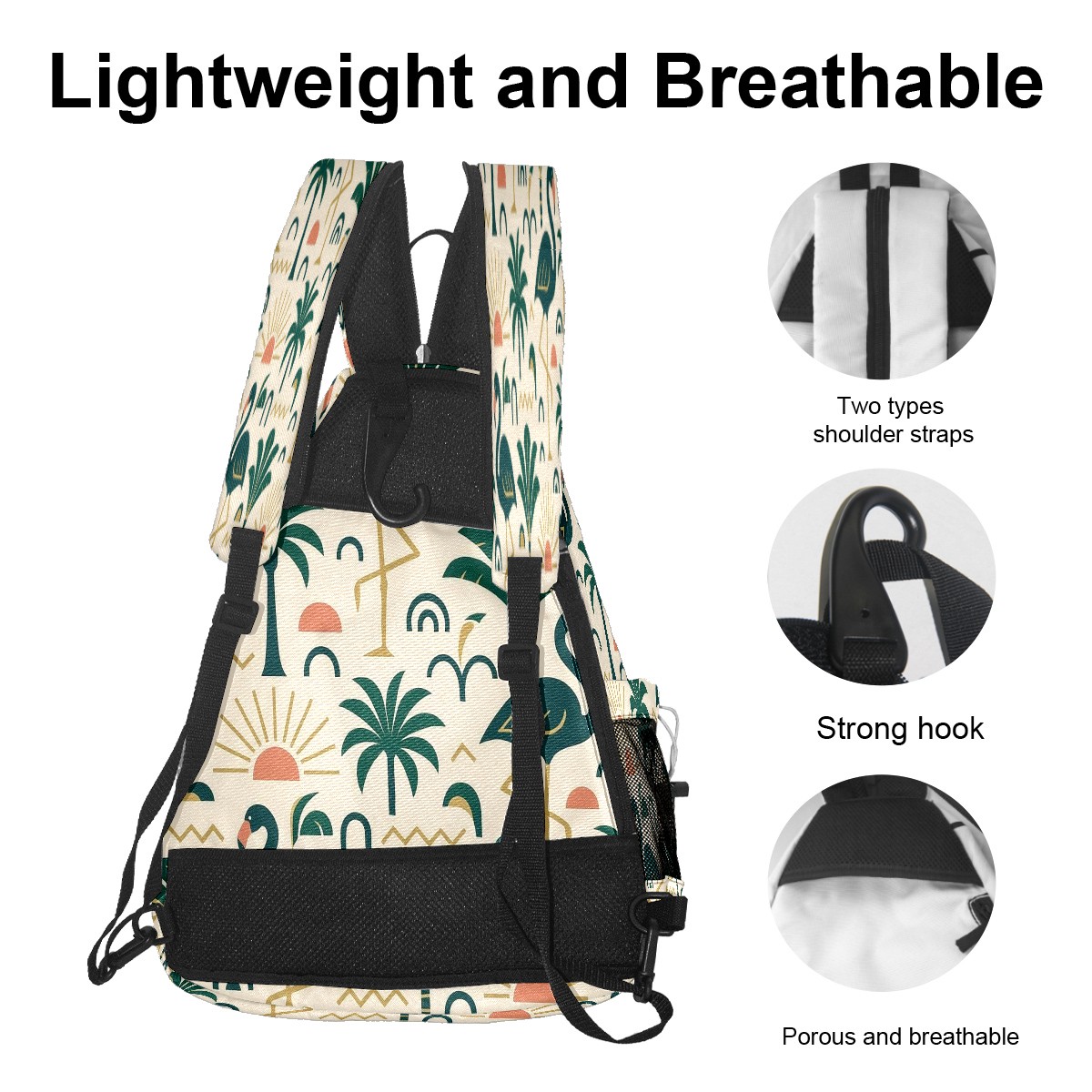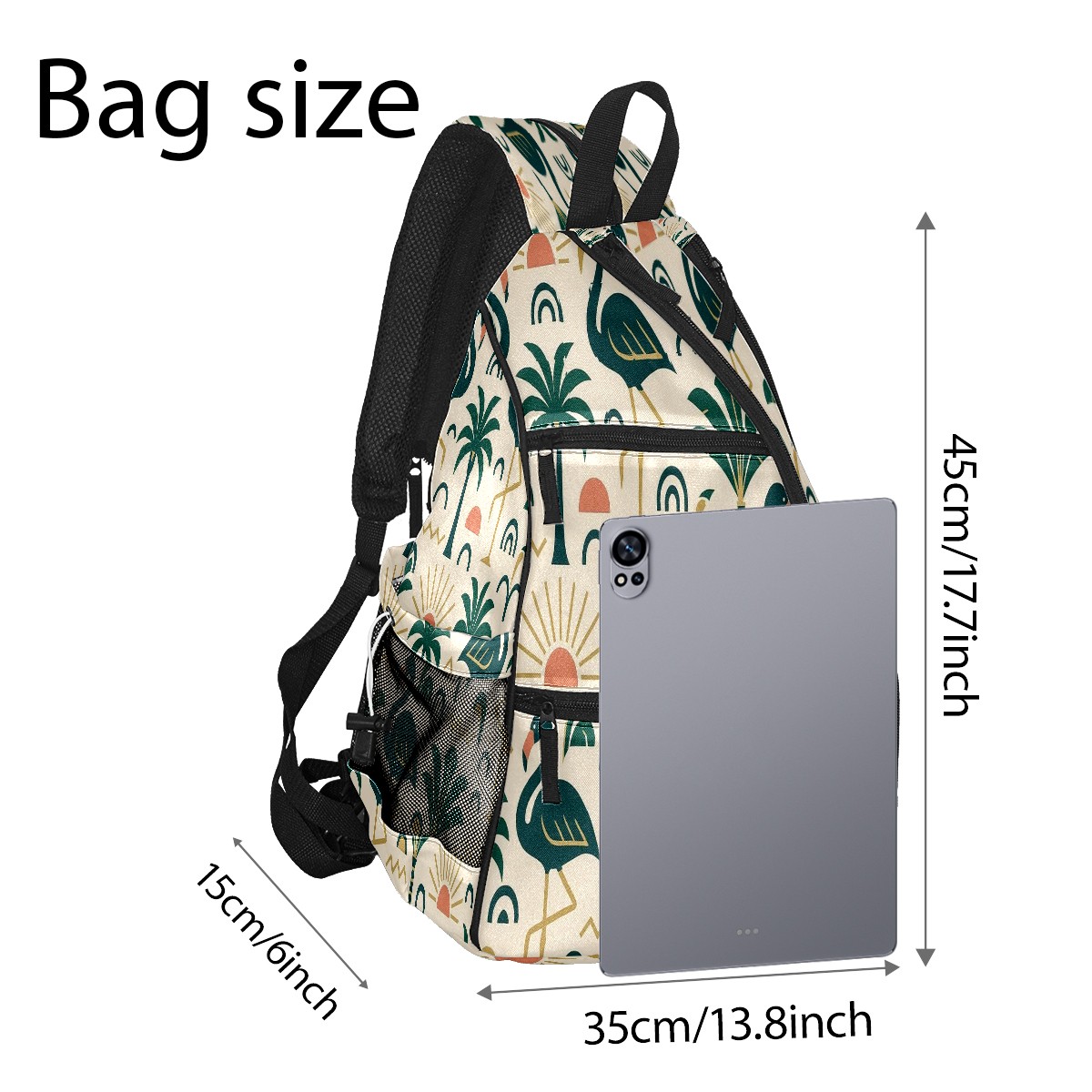 Pickleball Sling Bag for Women and Men - Backpack with Nylon Fabric/Woven Strap/Mesh Pocket/Fence Hook/Adjustable Bag Green Flamingos Palms