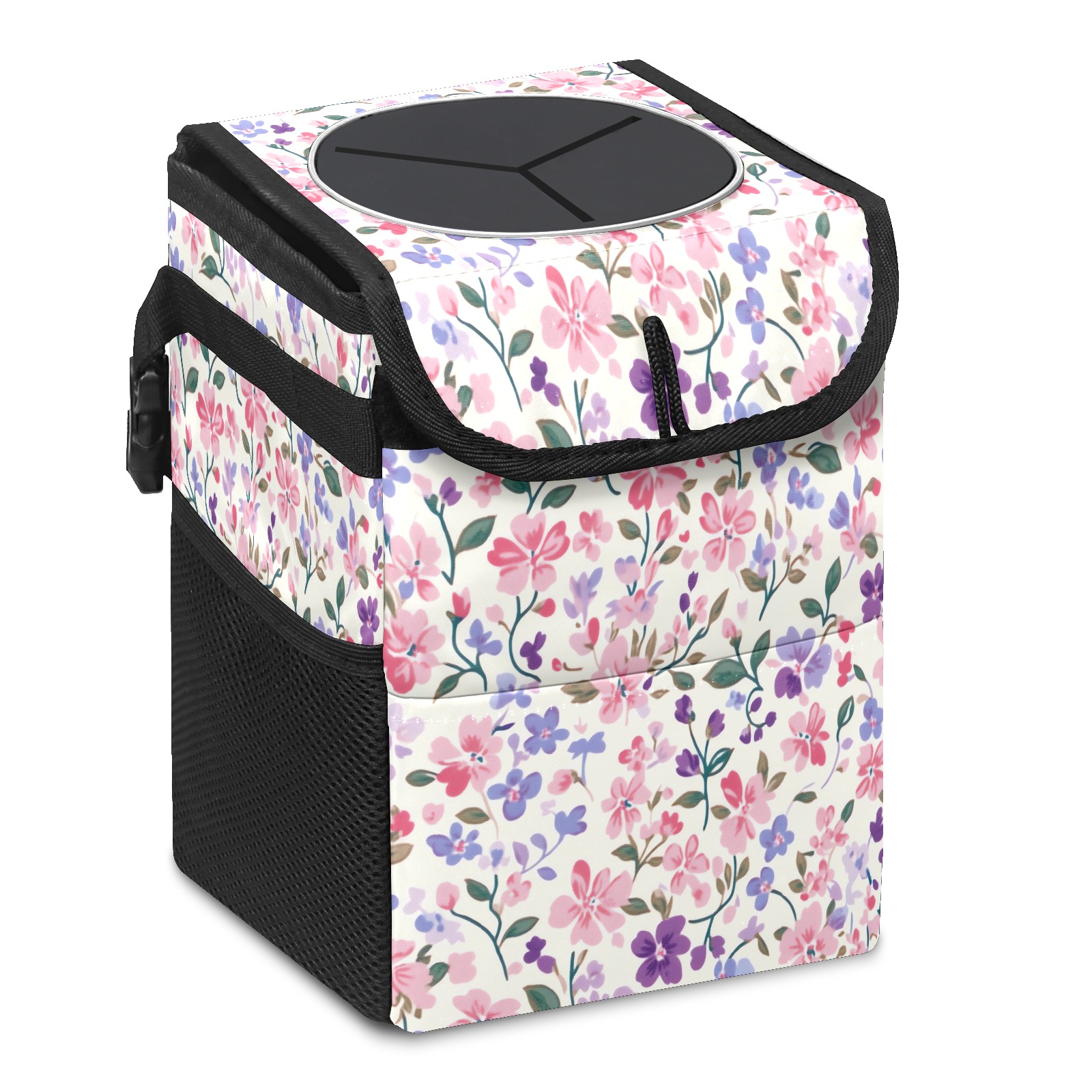 Car Trash Can with Lid, Small Portable Hanging Automotive Garbage Bin for Vehicles, Leakproof Waste Bag Container for SUV Truck Van Interior Auto Travel Road Trips(Lulu And Georges Small Floral)