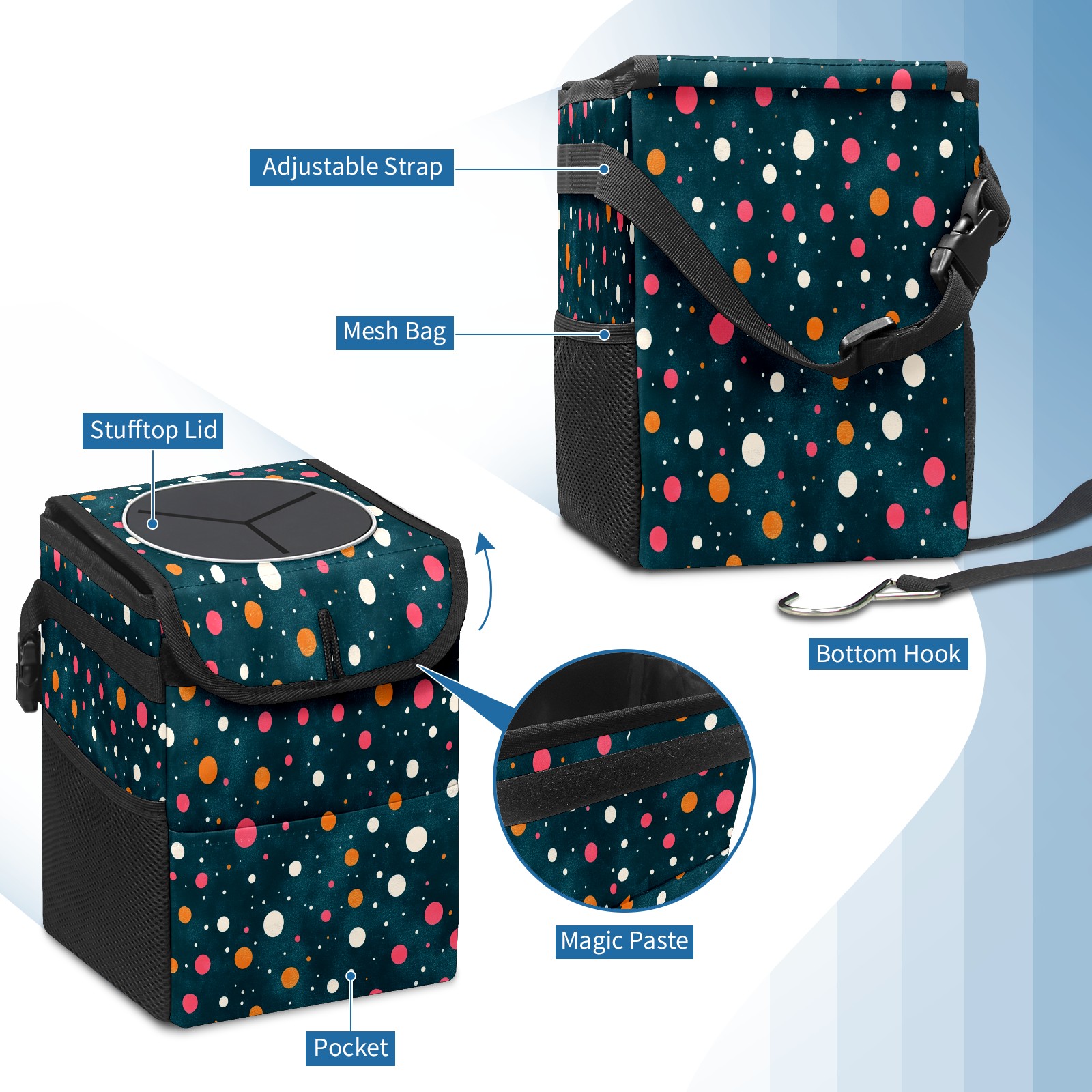 <p><b>Keep Your Car Clean &amp; Organized</b></p> <p>Tired of car clutter? Our durable car trash can is the perfect solution. This compact, leak-proof bin fits perfectly in cup holders, door pockets, or between seats.</p> <p>Ideal for commutes, road trips, and school runs, it’s a must-have car accessory. Use it as a hanging trash bag or a sturdy garbage bin for your SUV, truck, or back seat.</p> <p>Made from tough, easy-clean material, this portable trash container keeps your vehicle spotless. Get your essential car organizer today and enjoy a cleaner ride!</p>