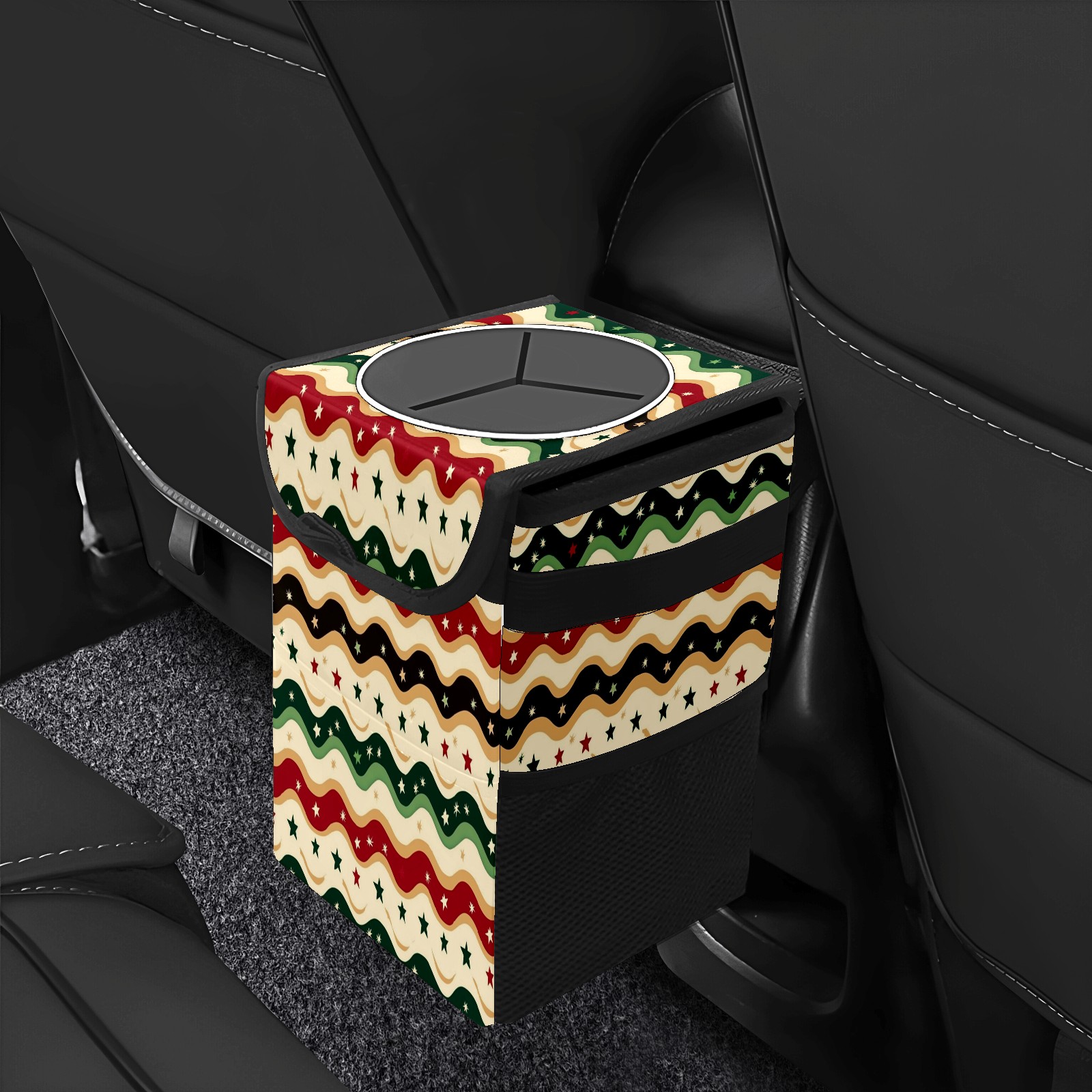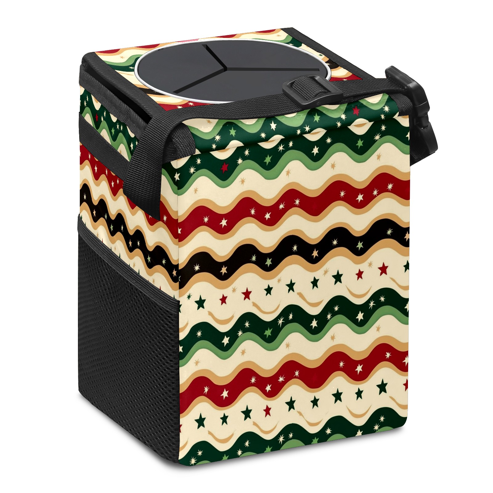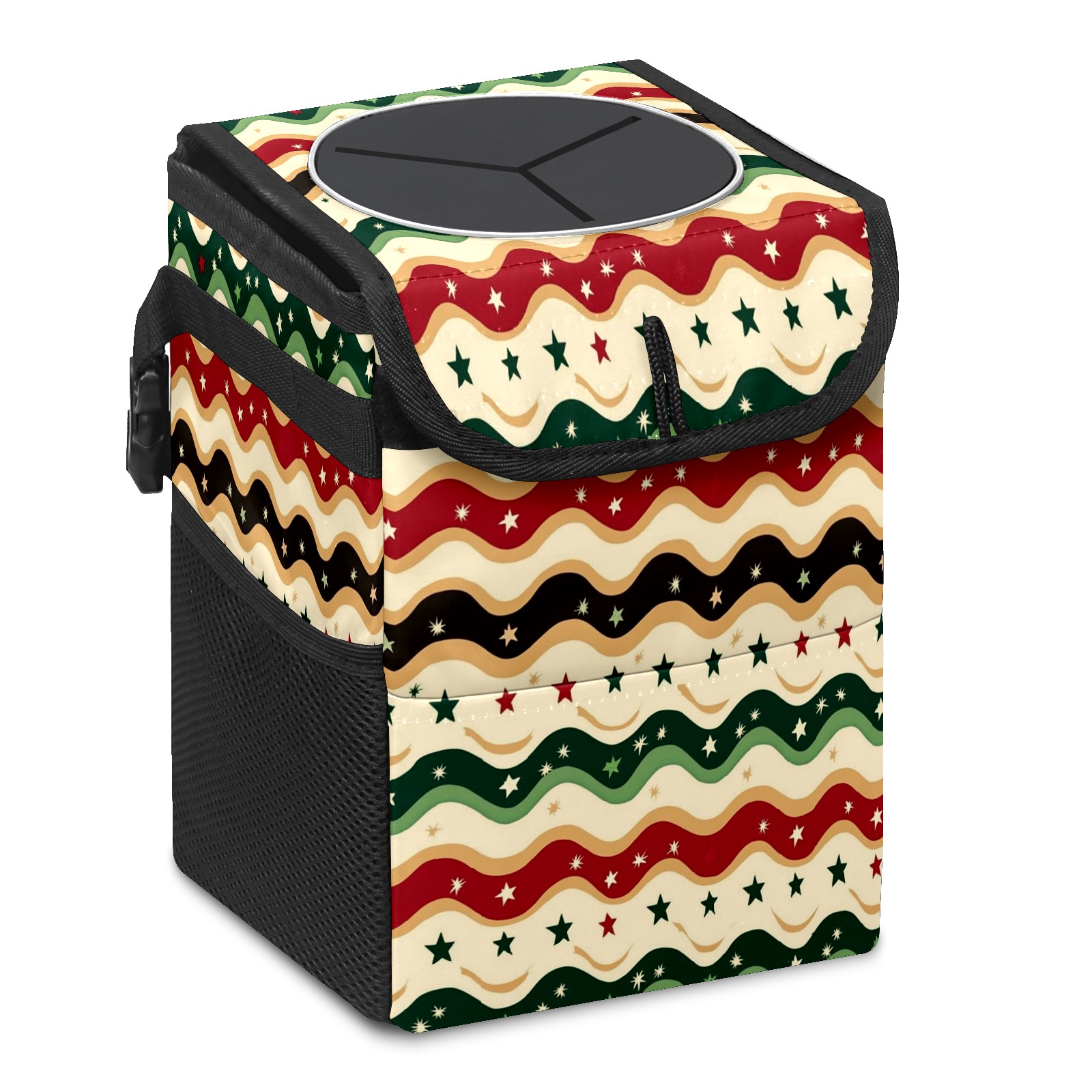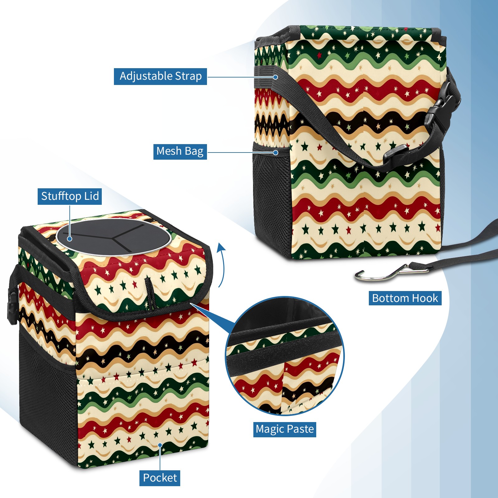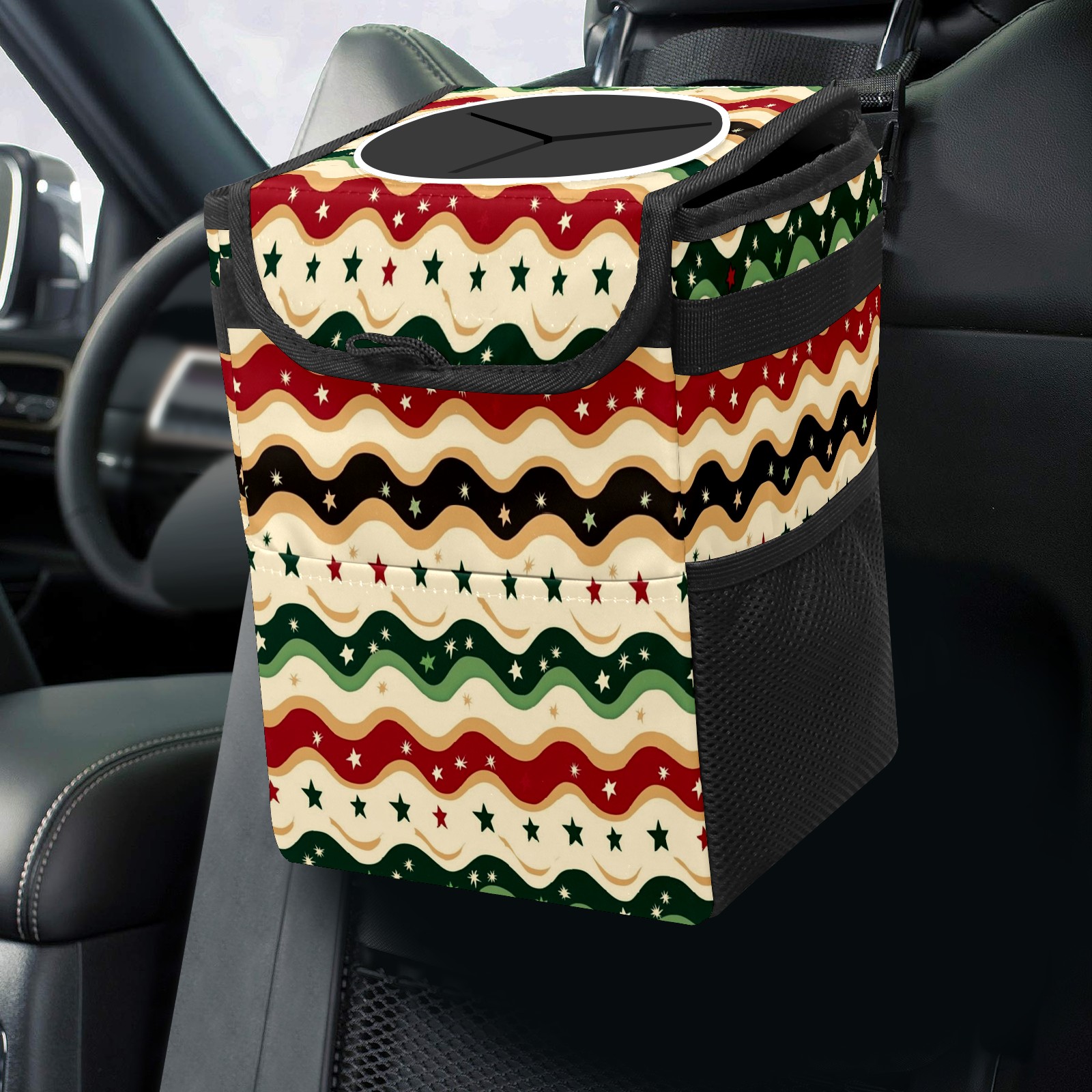 Car Trash Can with Lid, Small Portable Hanging Automotive Garbage Bin for Vehicles, Leakproof Waste Bag Container for SUV Truck Van Interior Auto Travel Road Trips(Christmas-themed)
