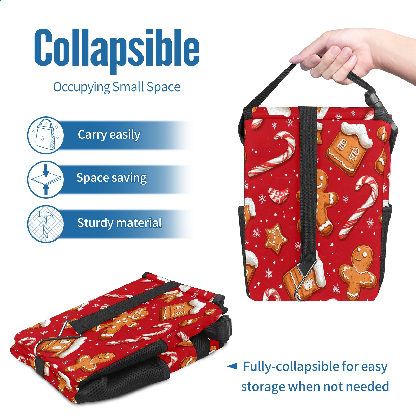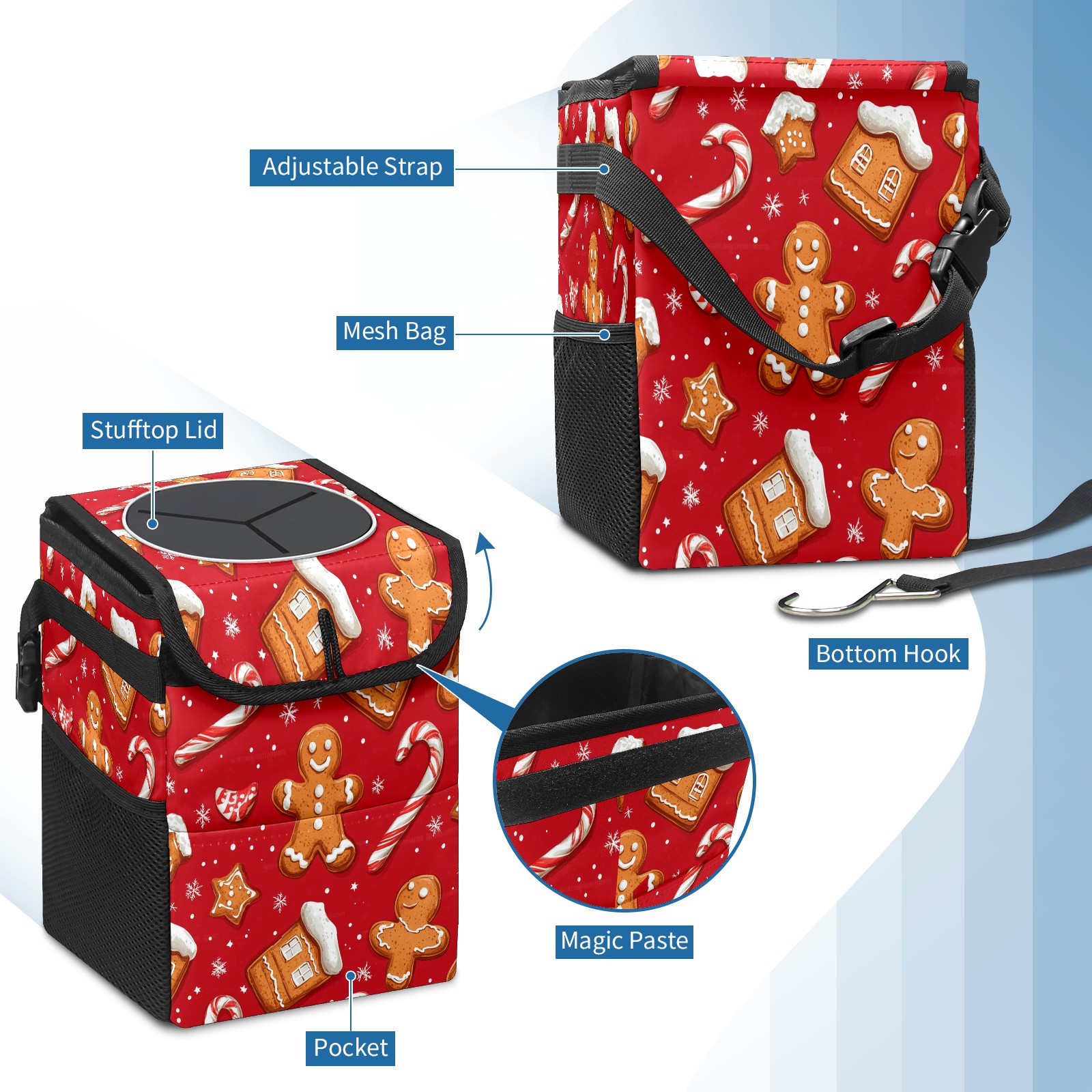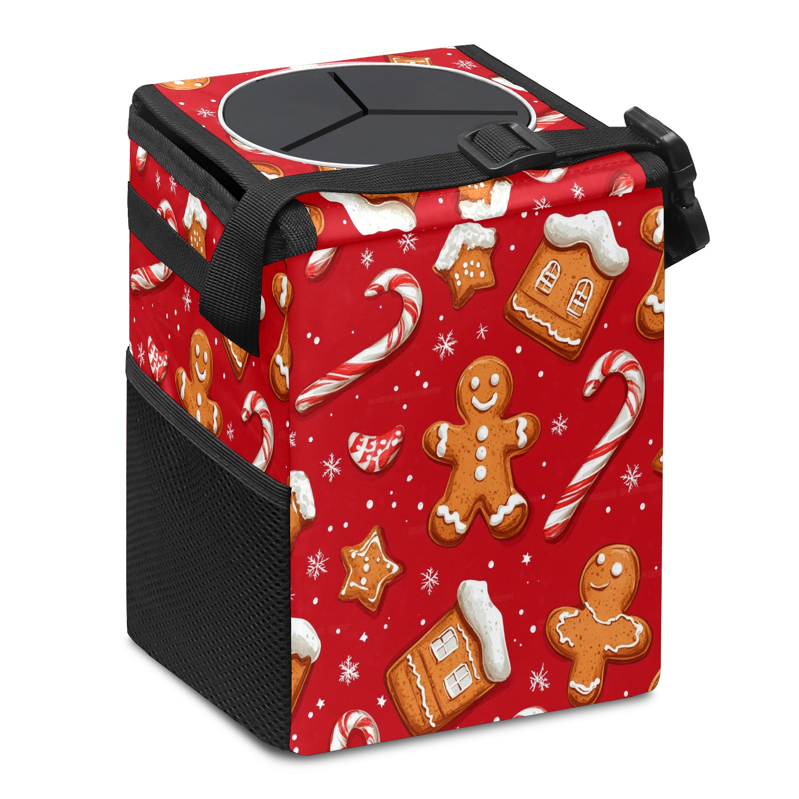 Car Trash Can with Lid, Small Portable Hanging Automotive Garbage Bin for Vehicles, Leakproof Waste Bag Container for SUV Truck Van Interior Auto Travel Road Trips(Cookies And Candy Cane)