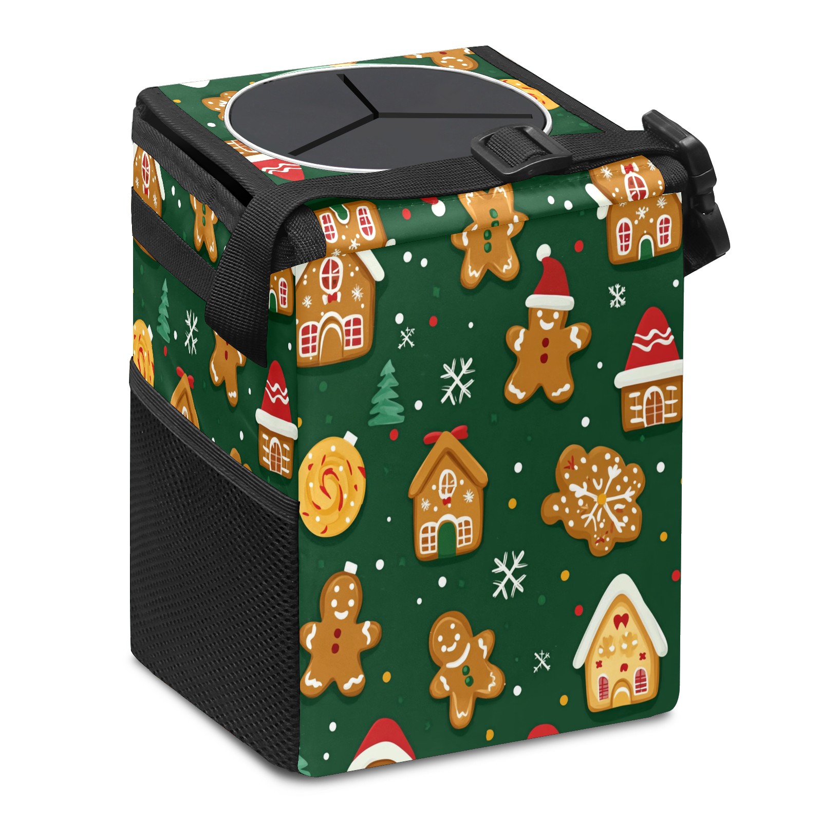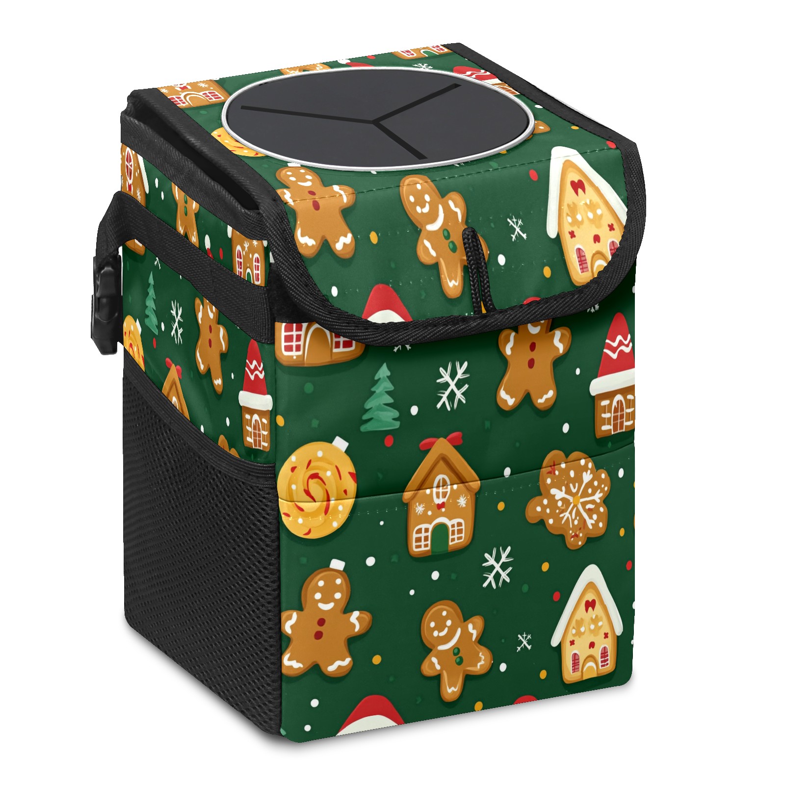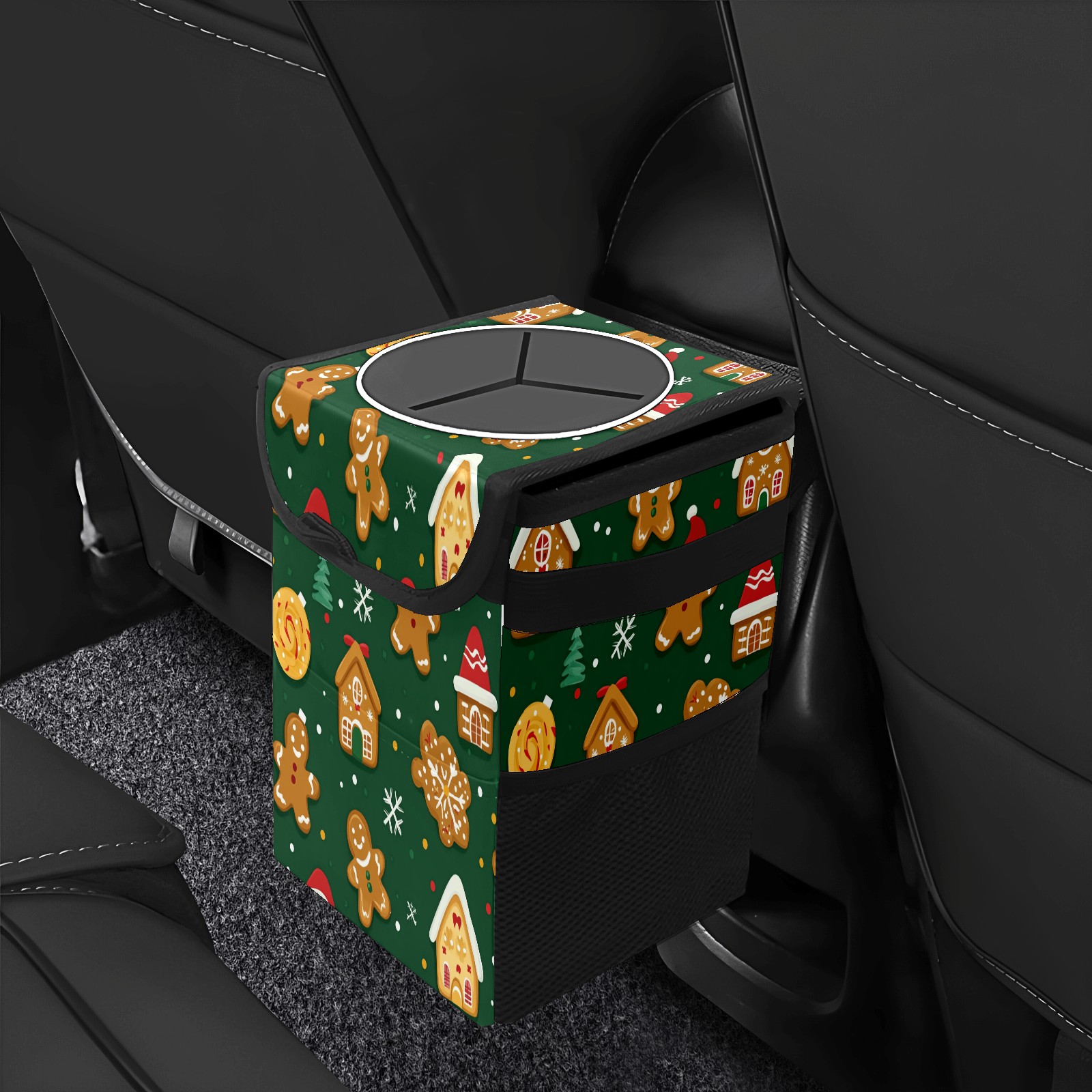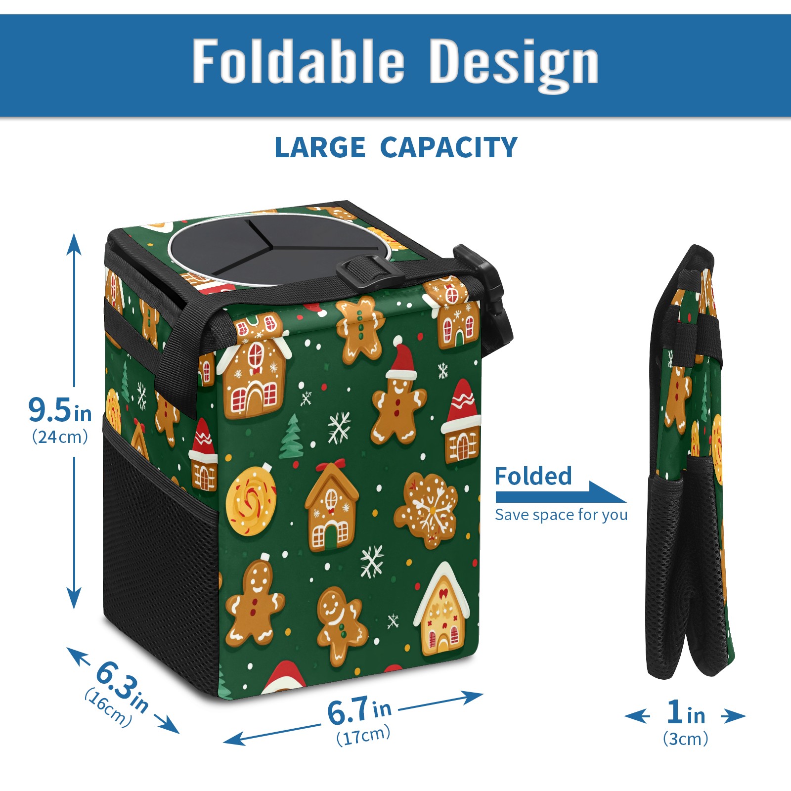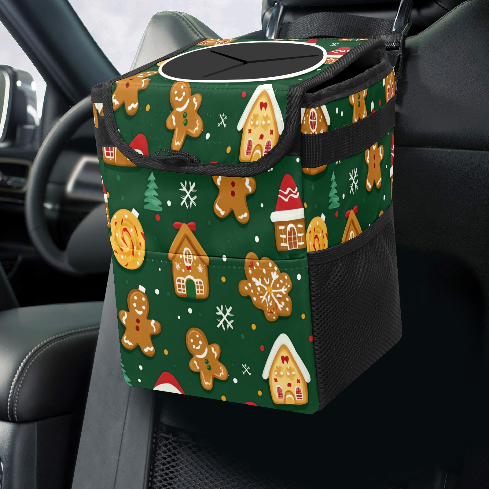 Car Trash Can with Lid, Small Portable Hanging Automotive Garbage Bin for Vehicles, Leakproof Waste Bag Container for SUV Truck Van Interior Auto Travel Road Trips(Christmas Pattern)