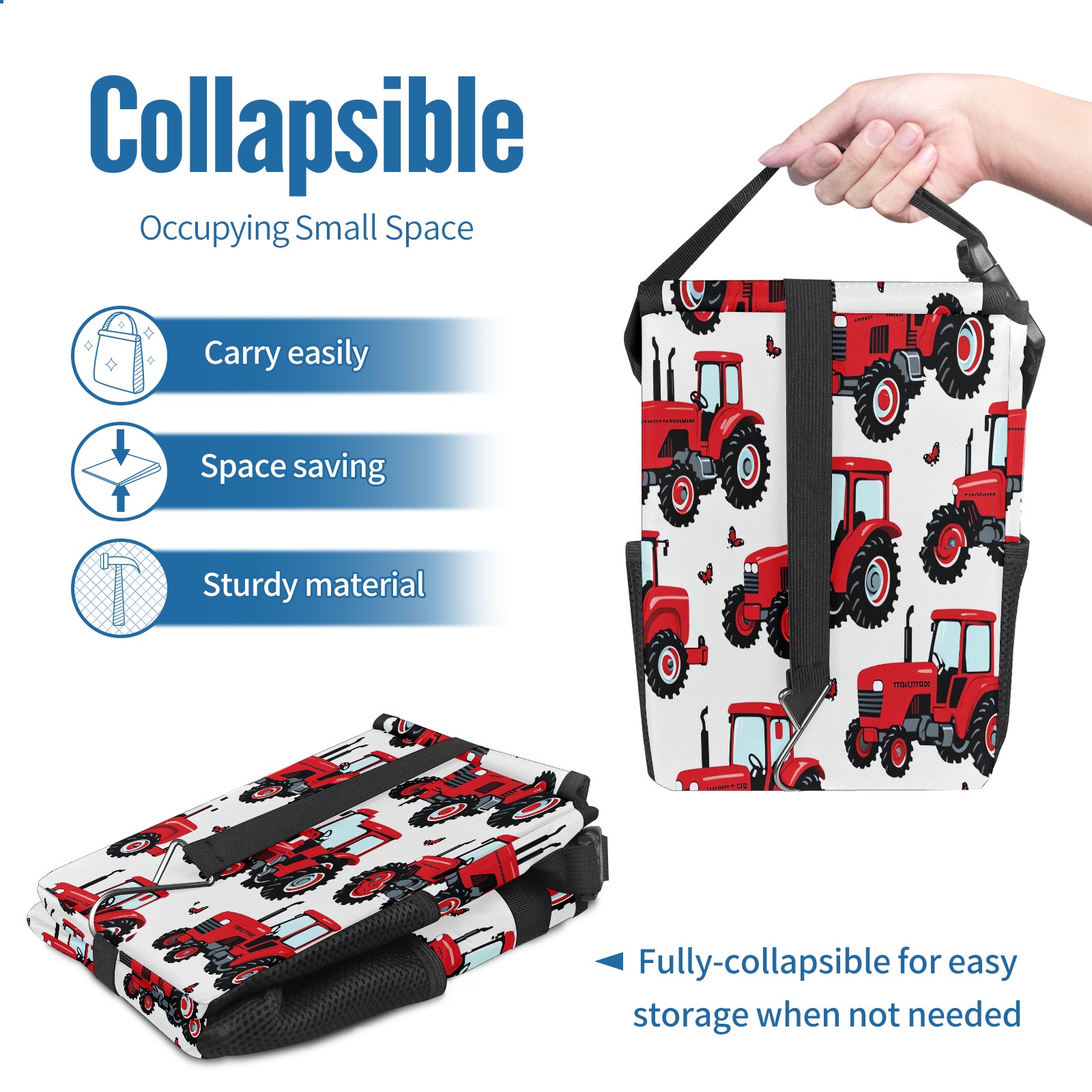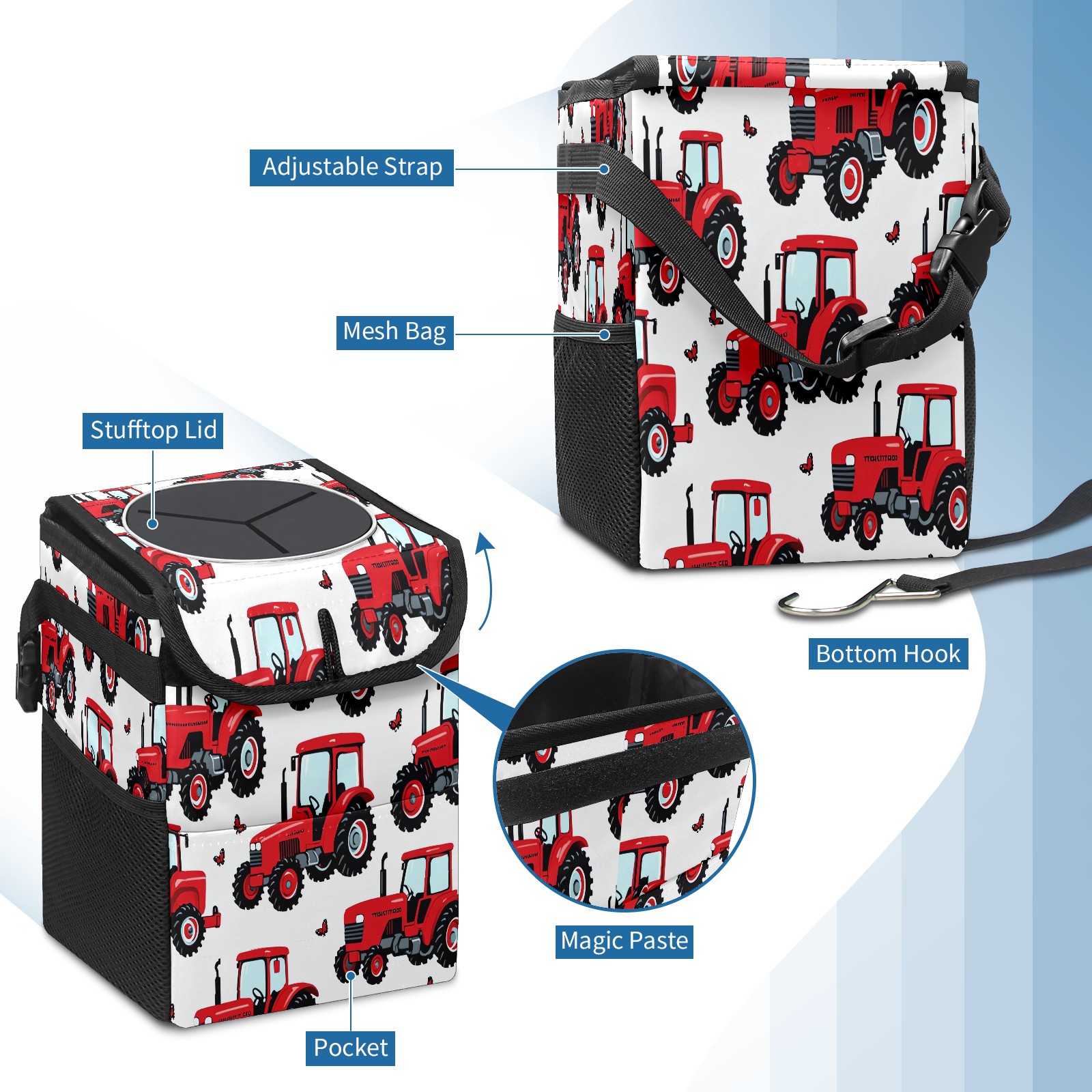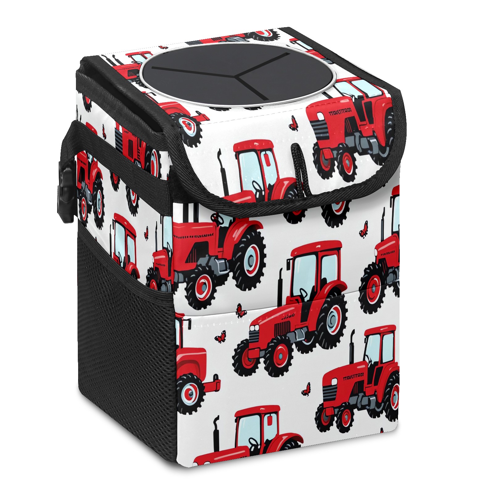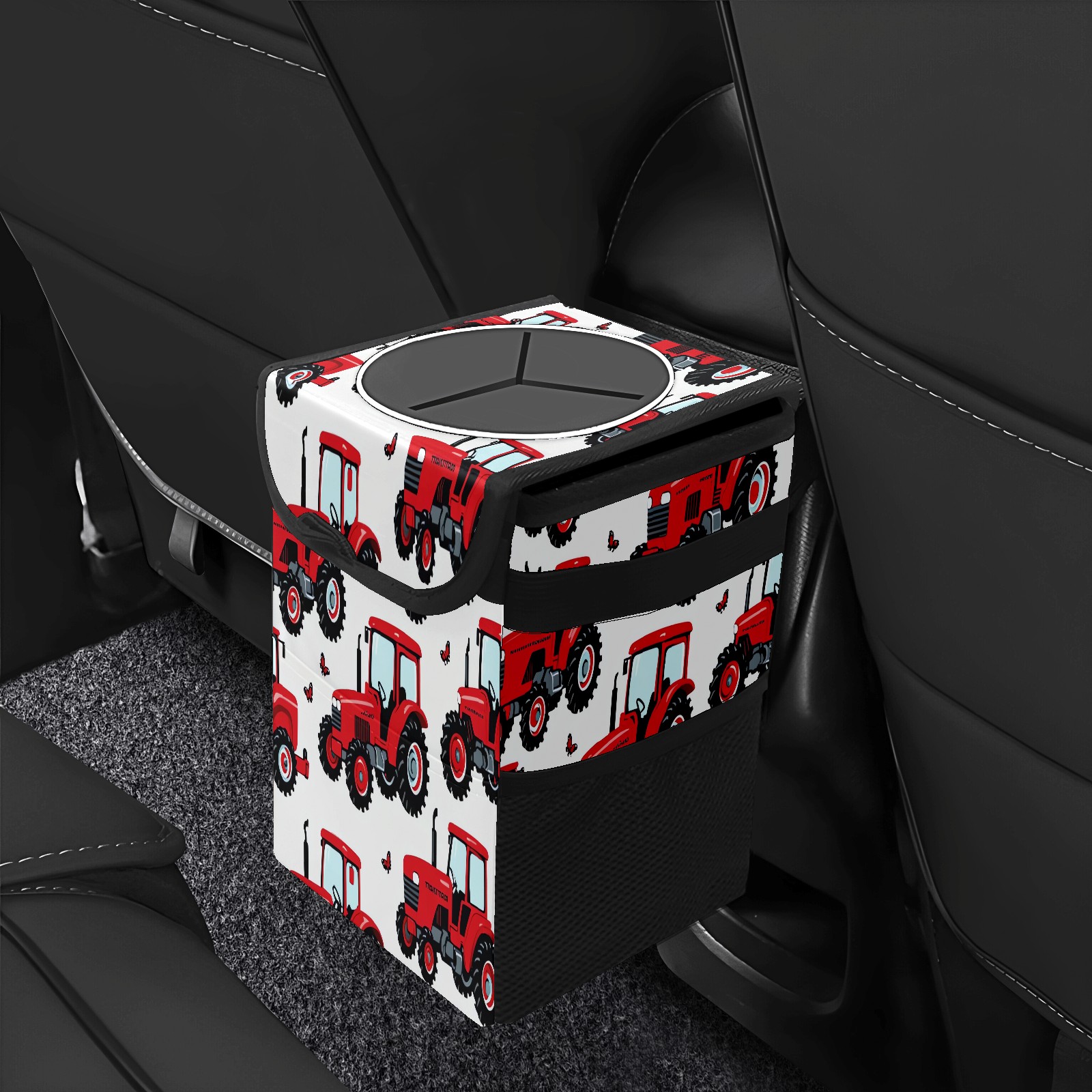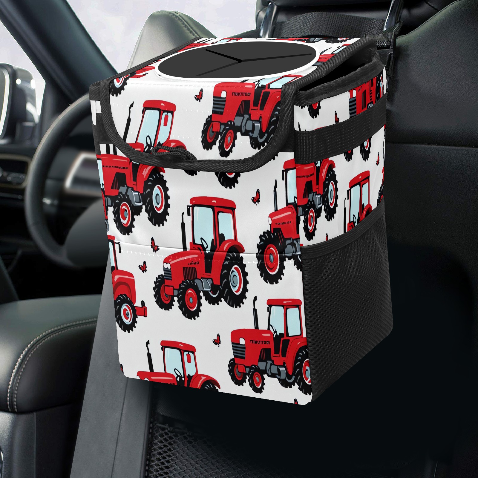 Car Trash Can with Lid, Small Portable Hanging Automotive Garbage Bin for Vehicles, Leakproof Waste Bag Container for SUV Truck Van Interior Auto Travel Road Trips(Tractor)