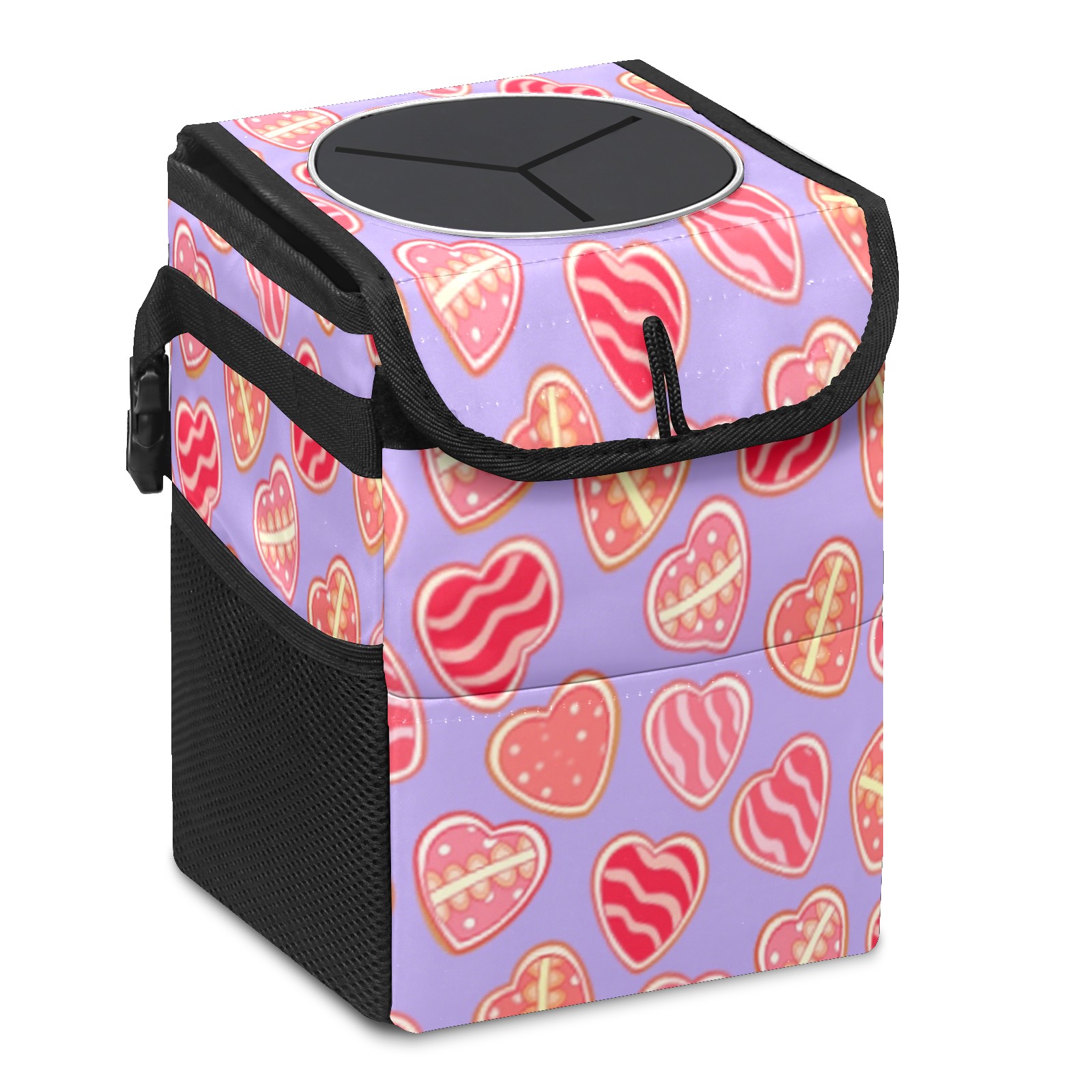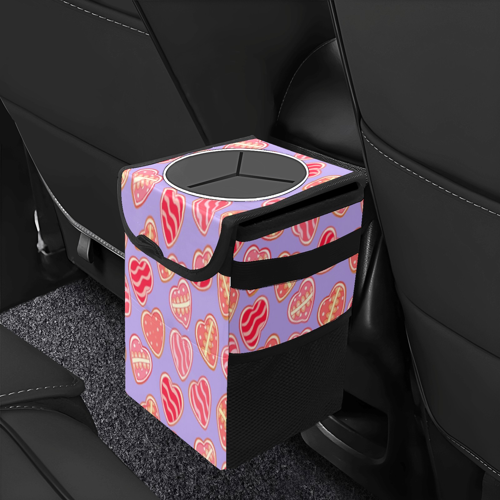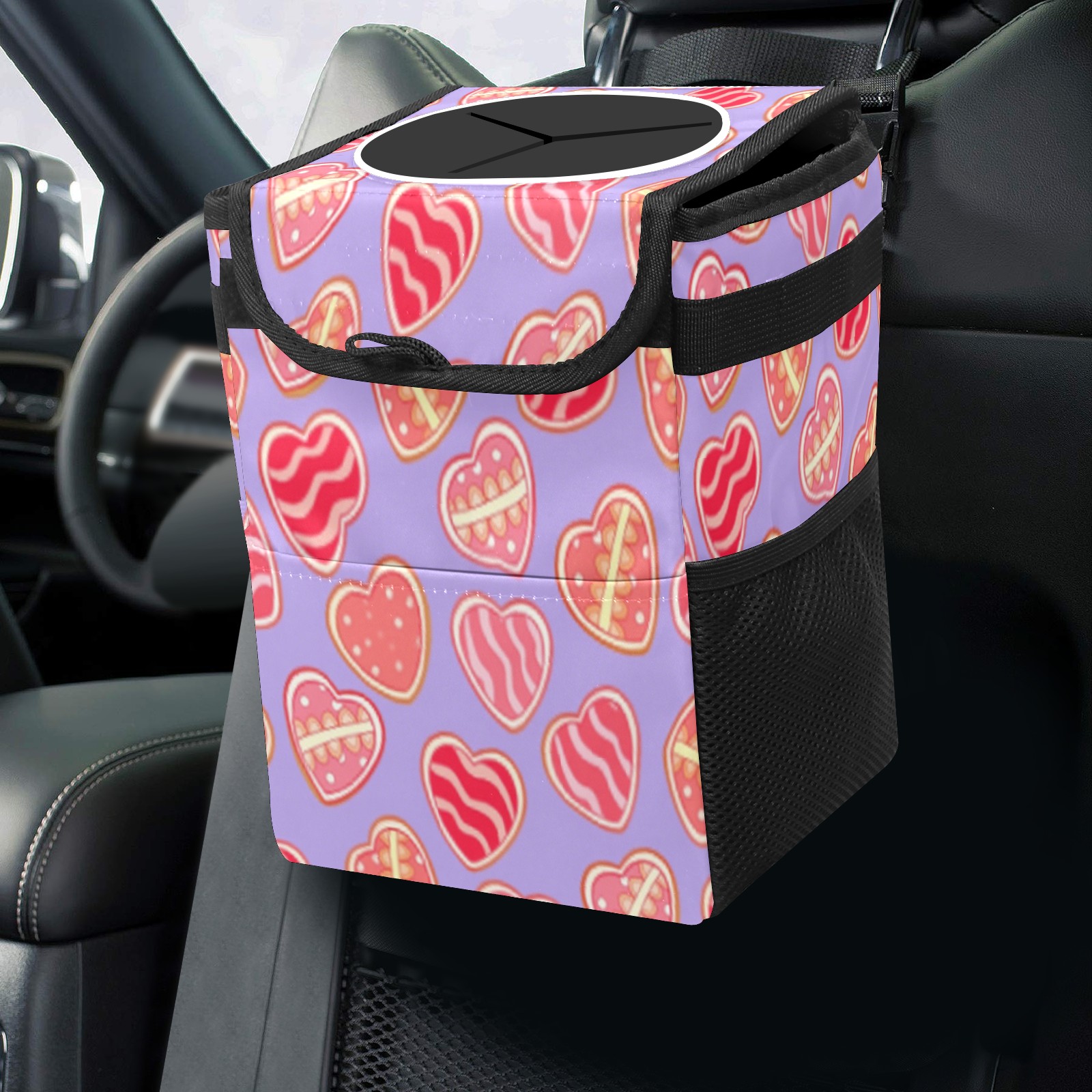 Car Trash Can with Lid, Small Portable Hanging Automotive Garbage Bin for Vehicles, Leakproof Waste Bag Container for SUV Truck Van Interior Auto Travel Road Trips(Sweet Hearts)