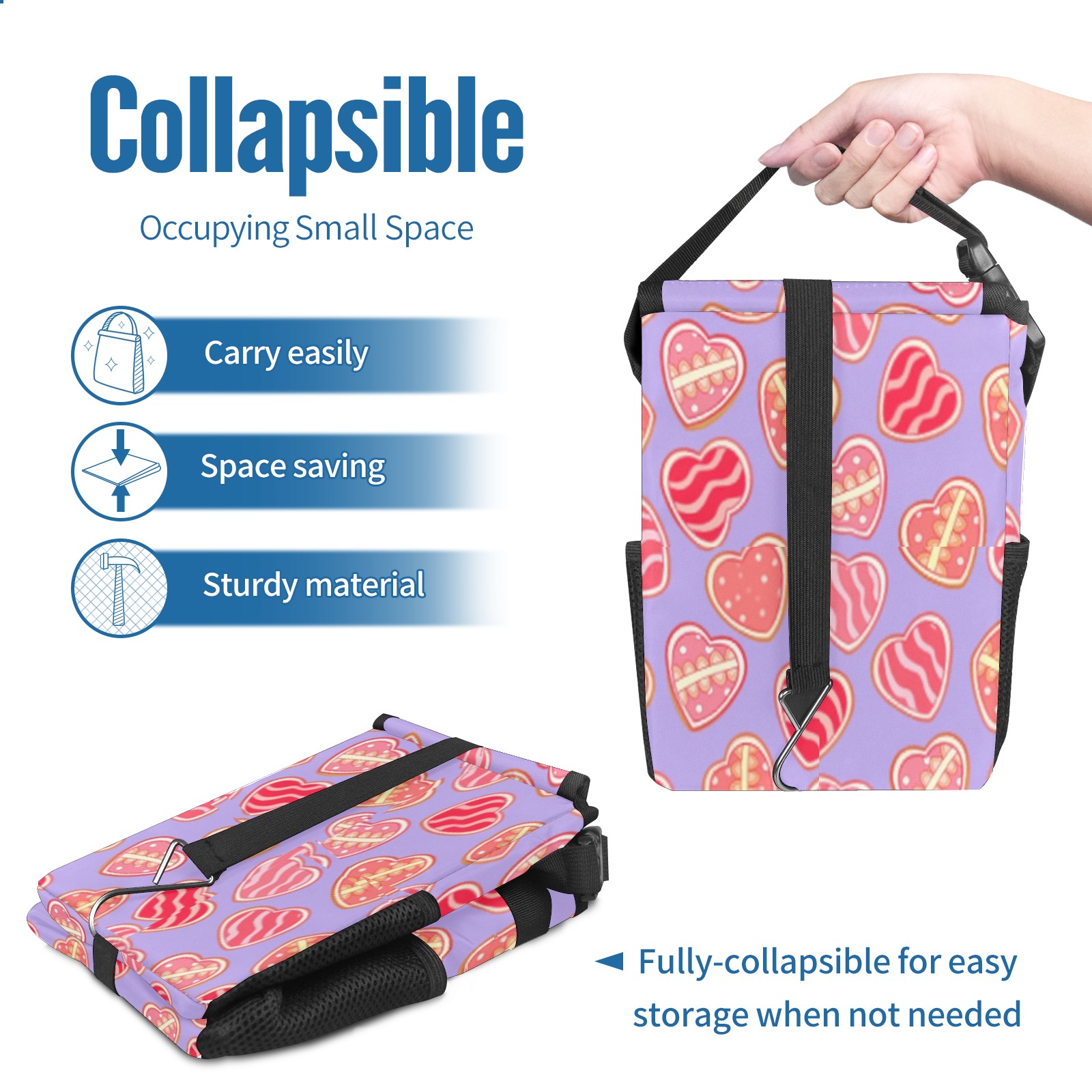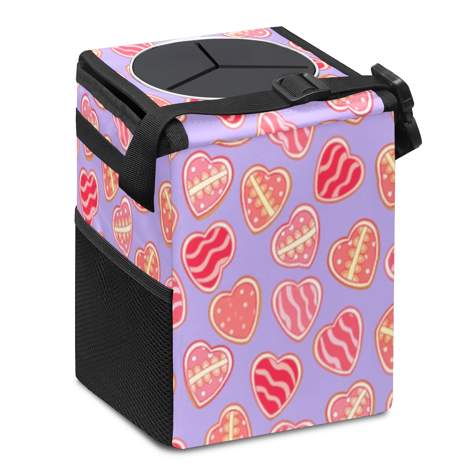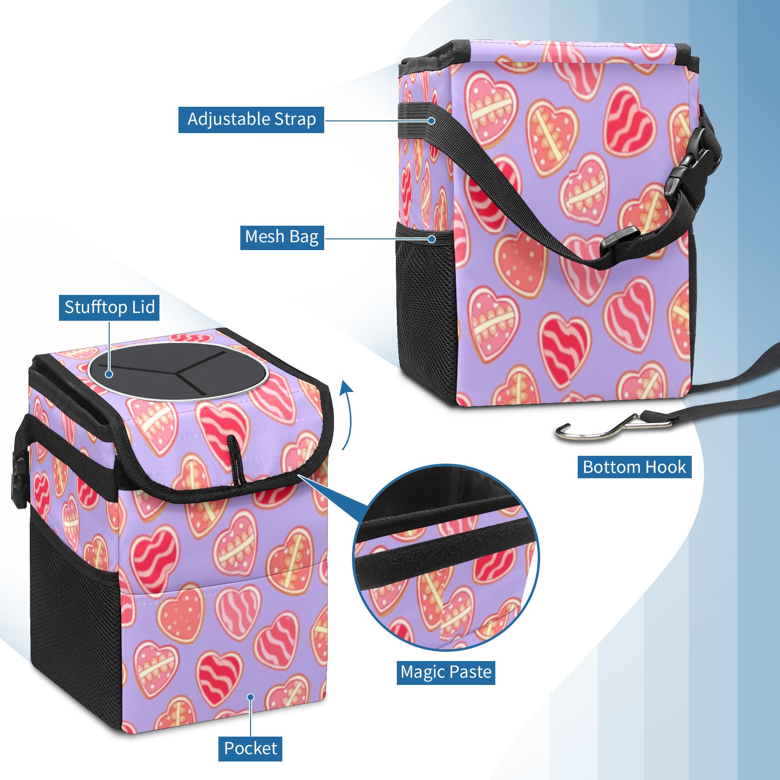 Car Trash Can with Lid, Small Portable Hanging Automotive Garbage Bin for Vehicles, Leakproof Waste Bag Container for SUV Truck Van Interior Auto Travel Road Trips(Sweet Hearts)