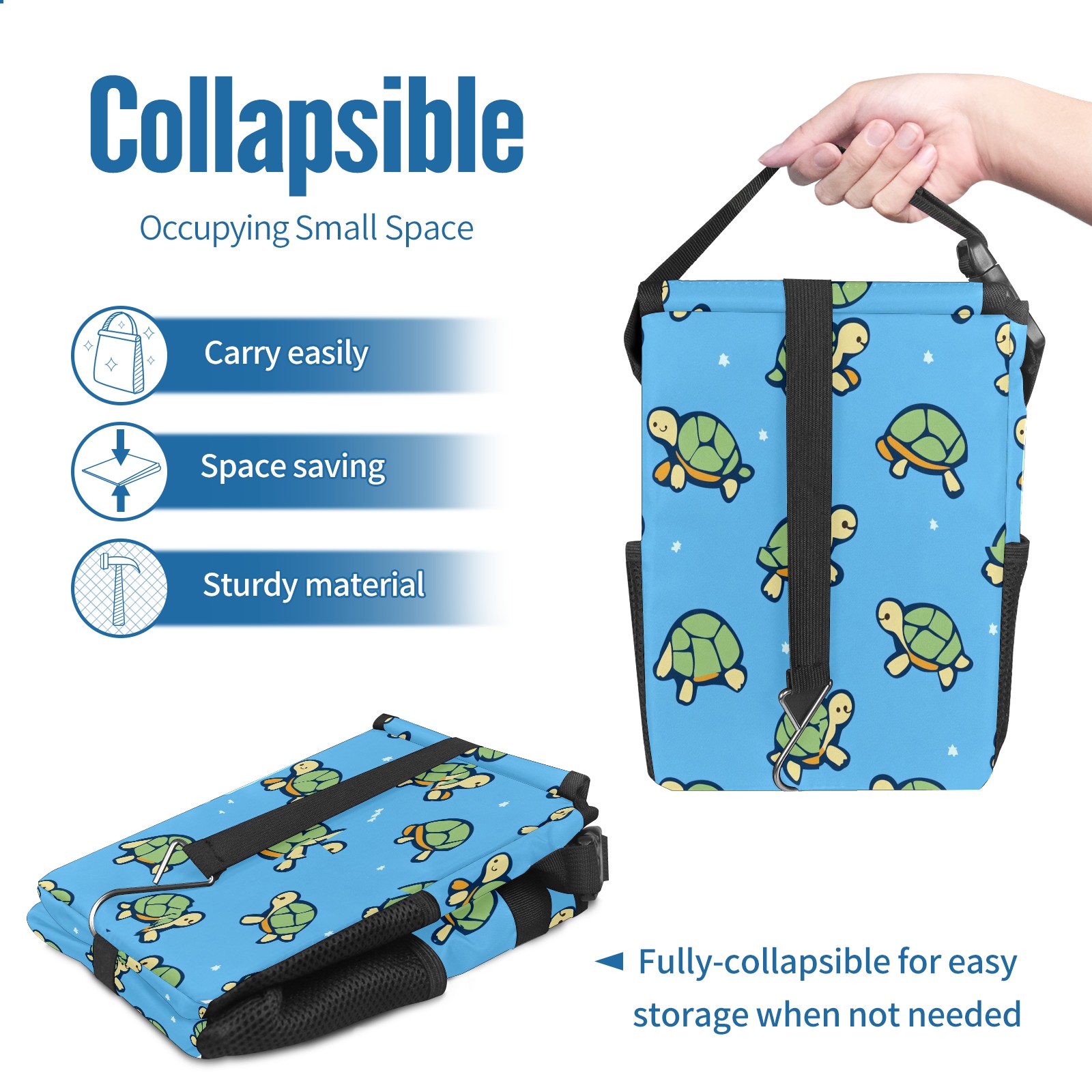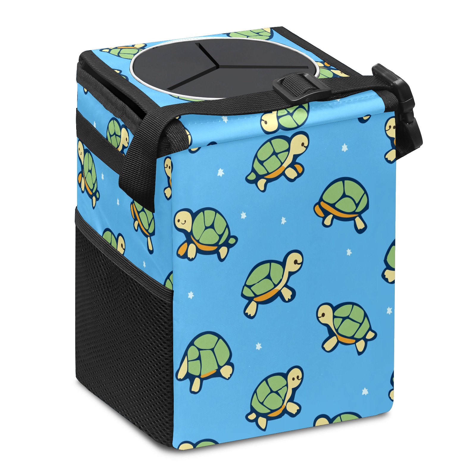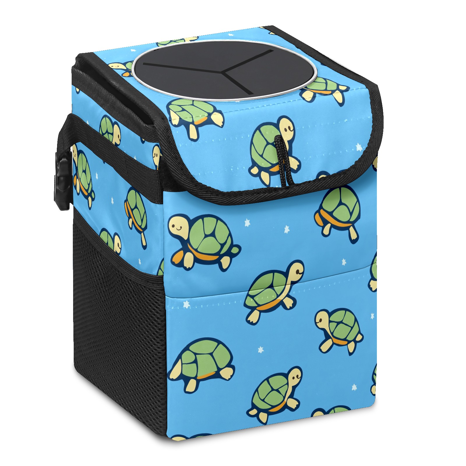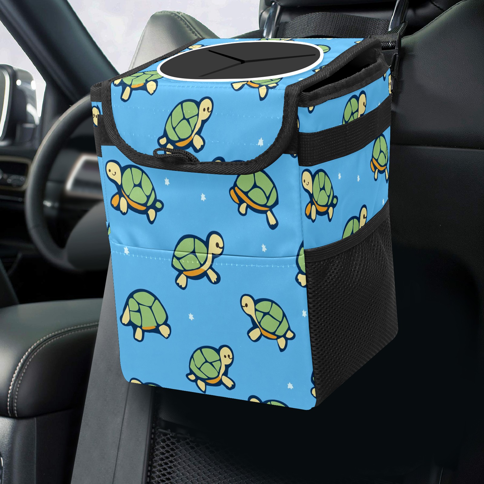 Car Trash Can with Lid, Small Portable Hanging Automotive Garbage Bin for Vehicles, Leakproof Waste Bag Container for SUV Truck Van Interior Auto Travel Road Trips(Turtles)