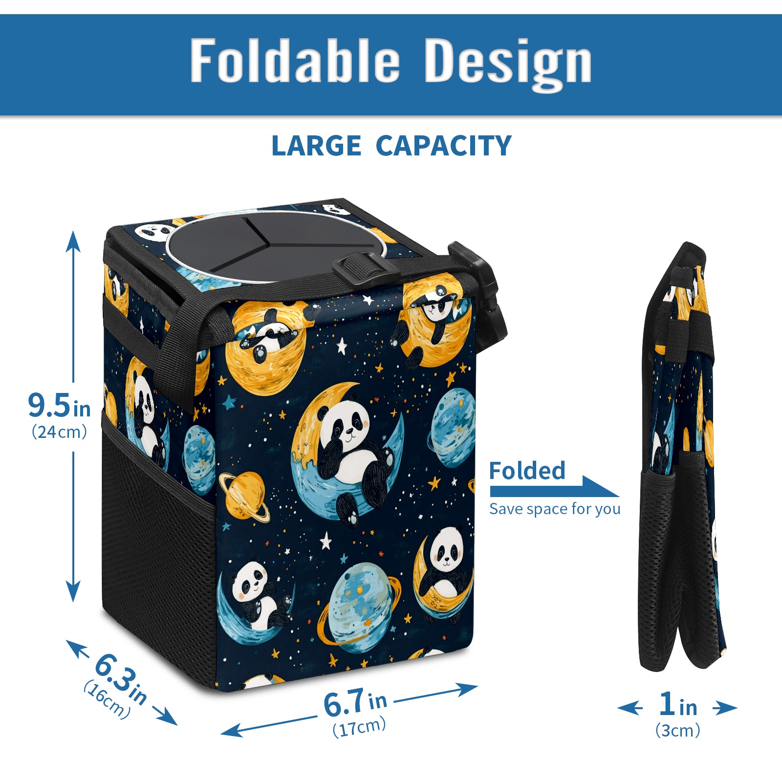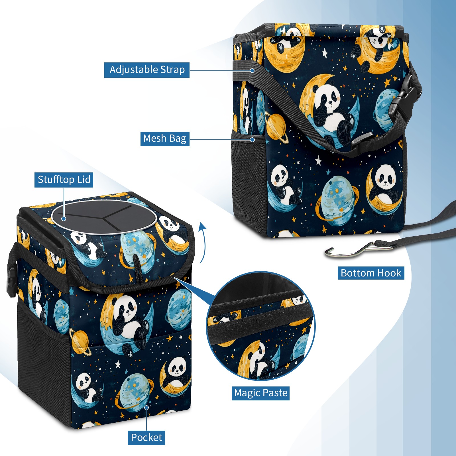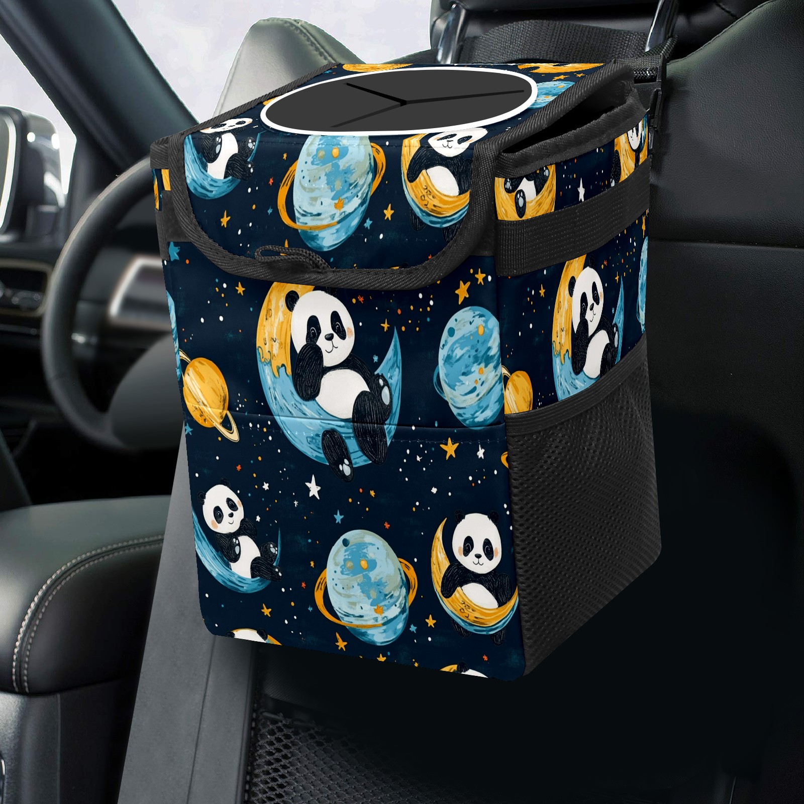 Car Trash Can with Lid, Small Portable Hanging Automotive Garbage Bin for Vehicles, Leakproof Waste Bag Container for SUV Truck Van Interior Auto Travel Road Trips(Playful Pandas Floating)