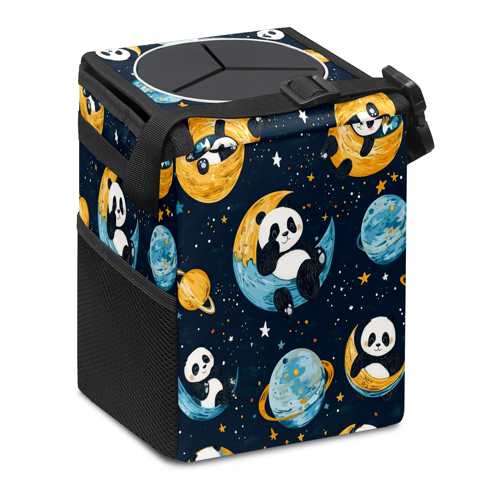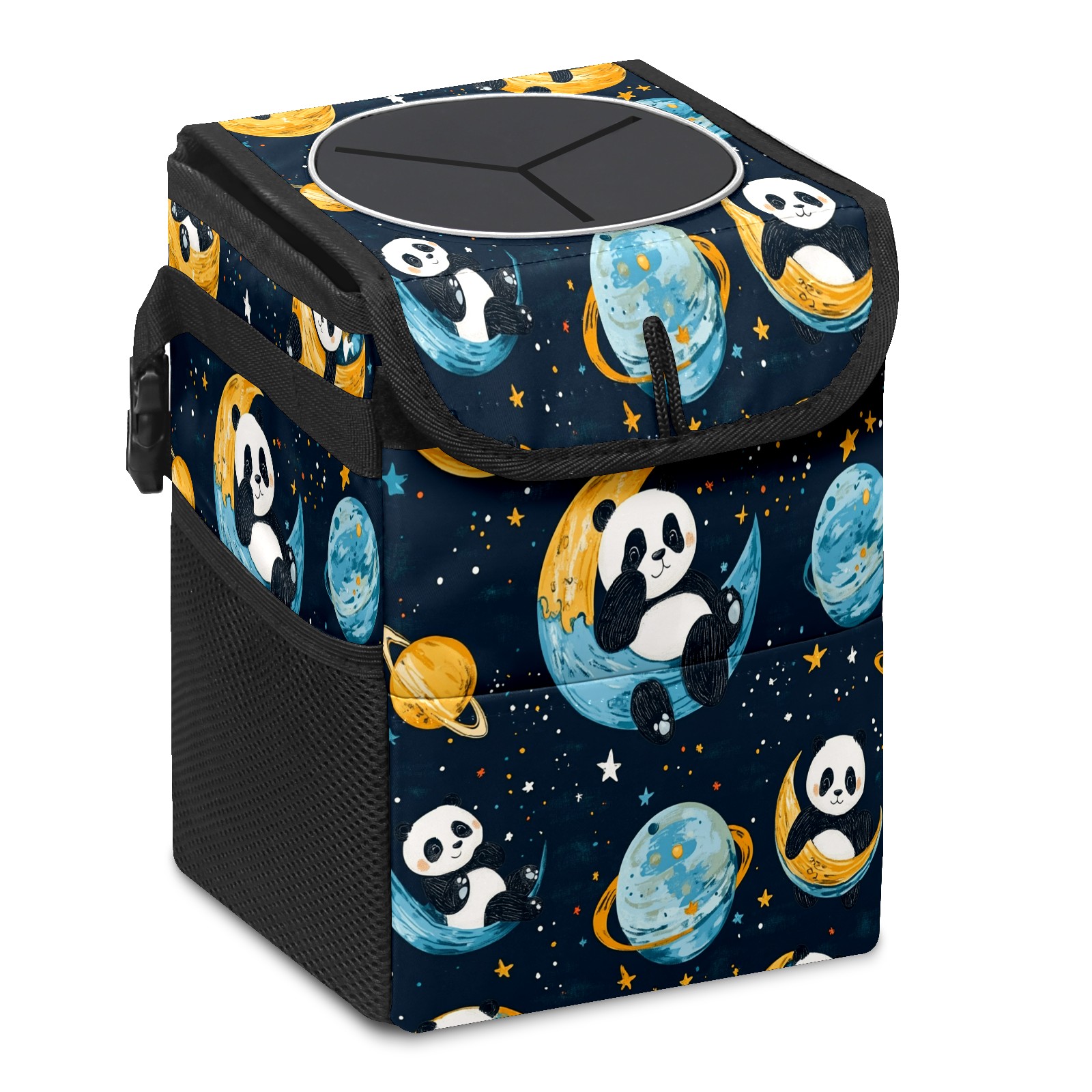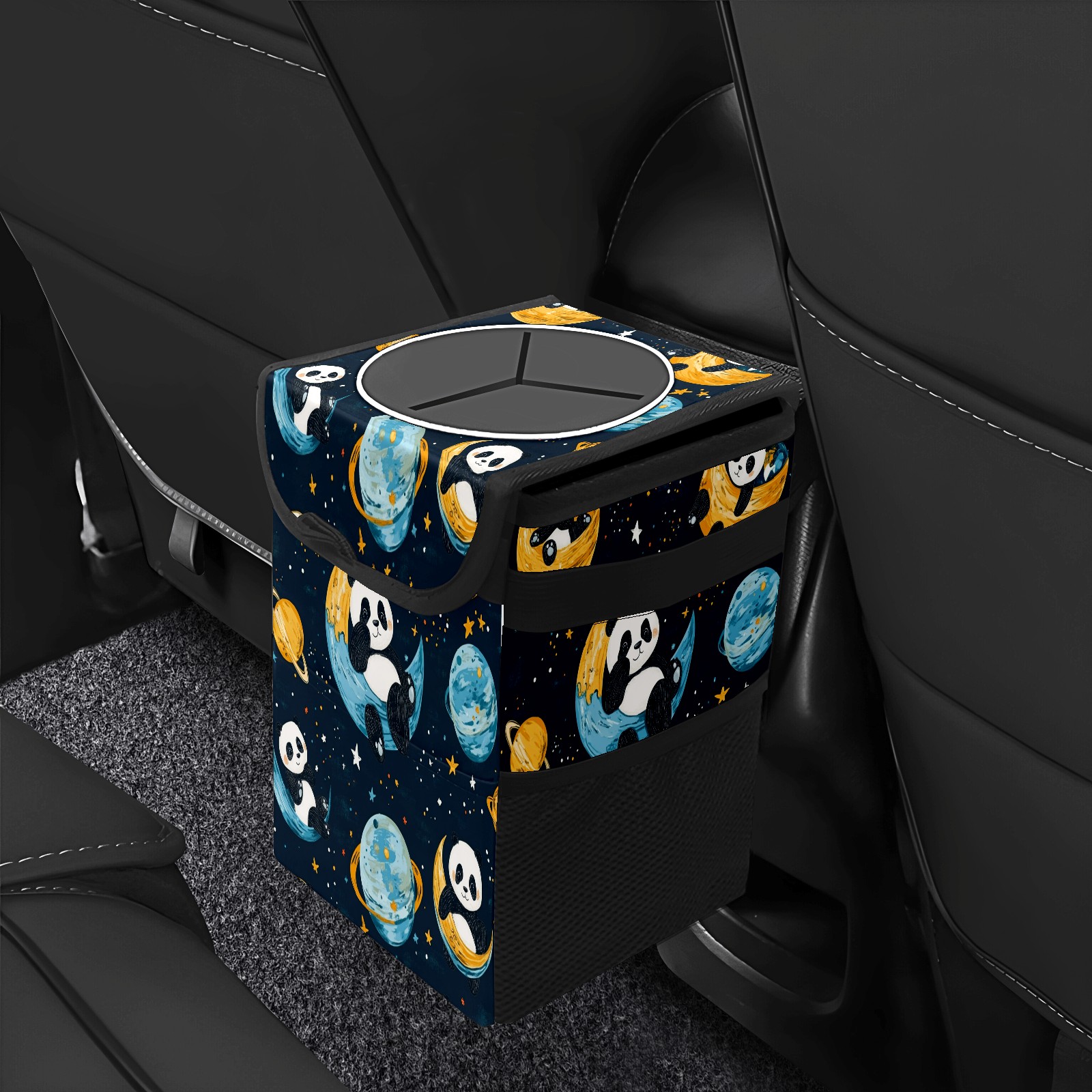 Car Trash Can with Lid, Small Portable Hanging Automotive Garbage Bin for Vehicles, Leakproof Waste Bag Container for SUV Truck Van Interior Auto Travel Road Trips(Playful Pandas Floating)
