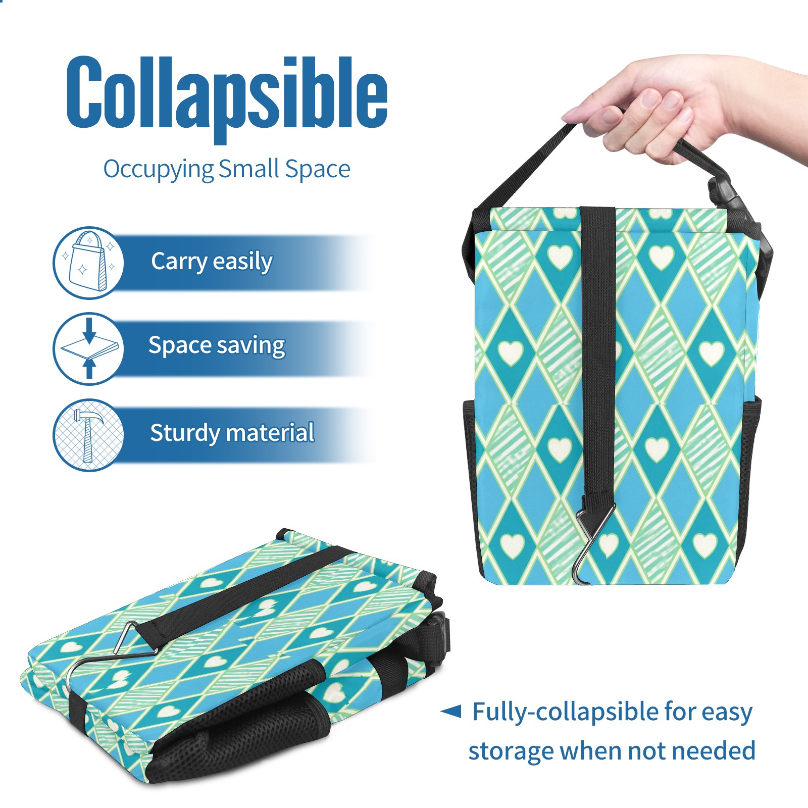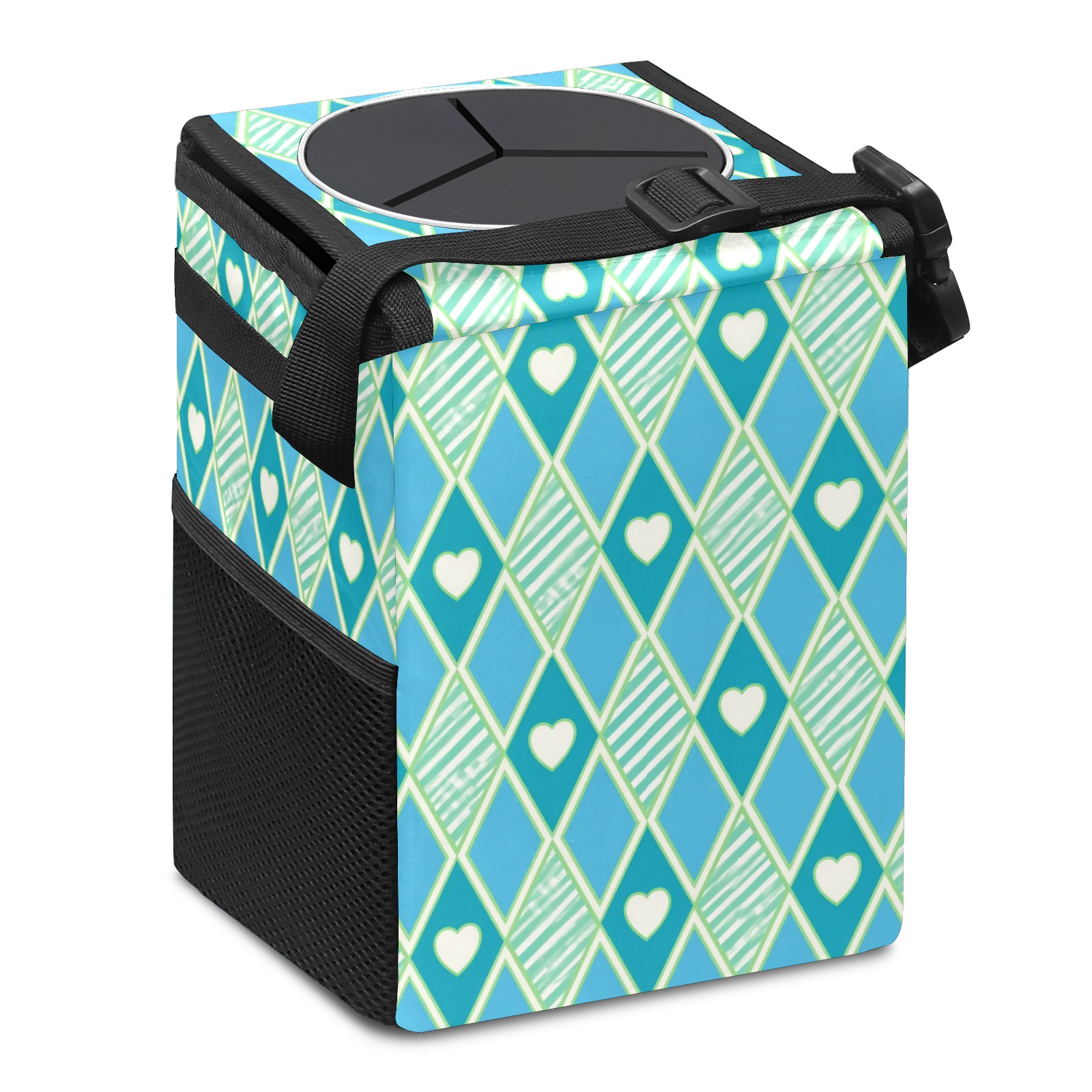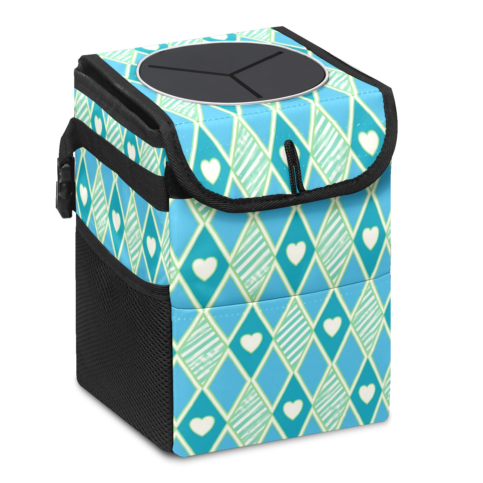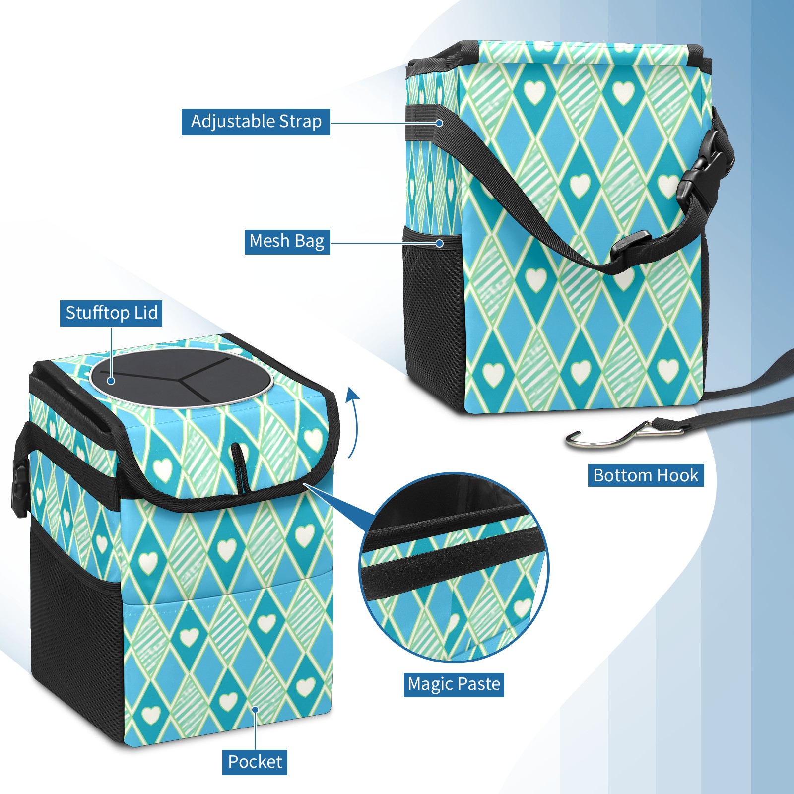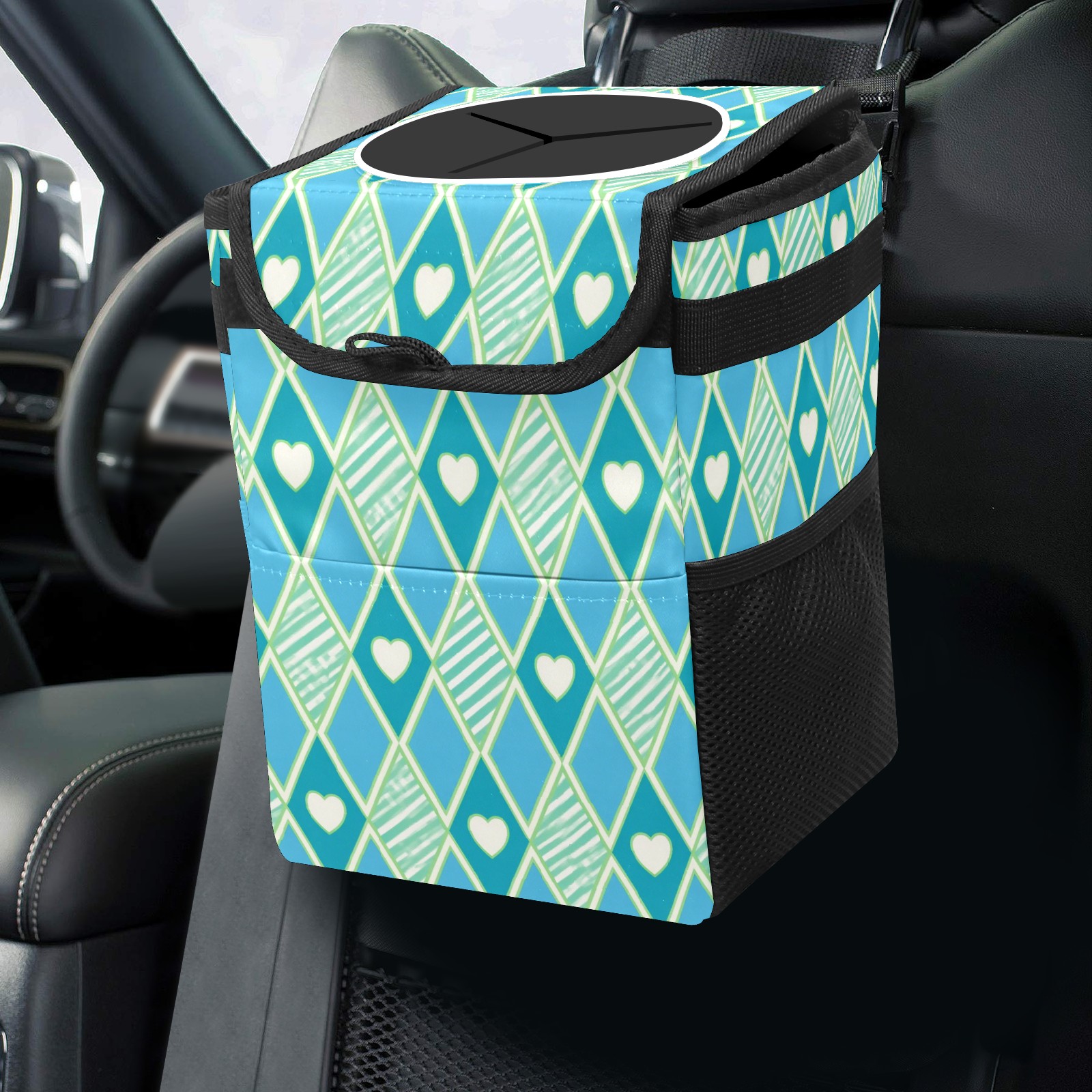 Car Trash Can with Lid, Small Portable Hanging Automotive Garbage Bin for Vehicles, Leakproof Waste Bag Container for SUV Truck Van Interior Auto Travel Road Trips(Blue Green Checkered)