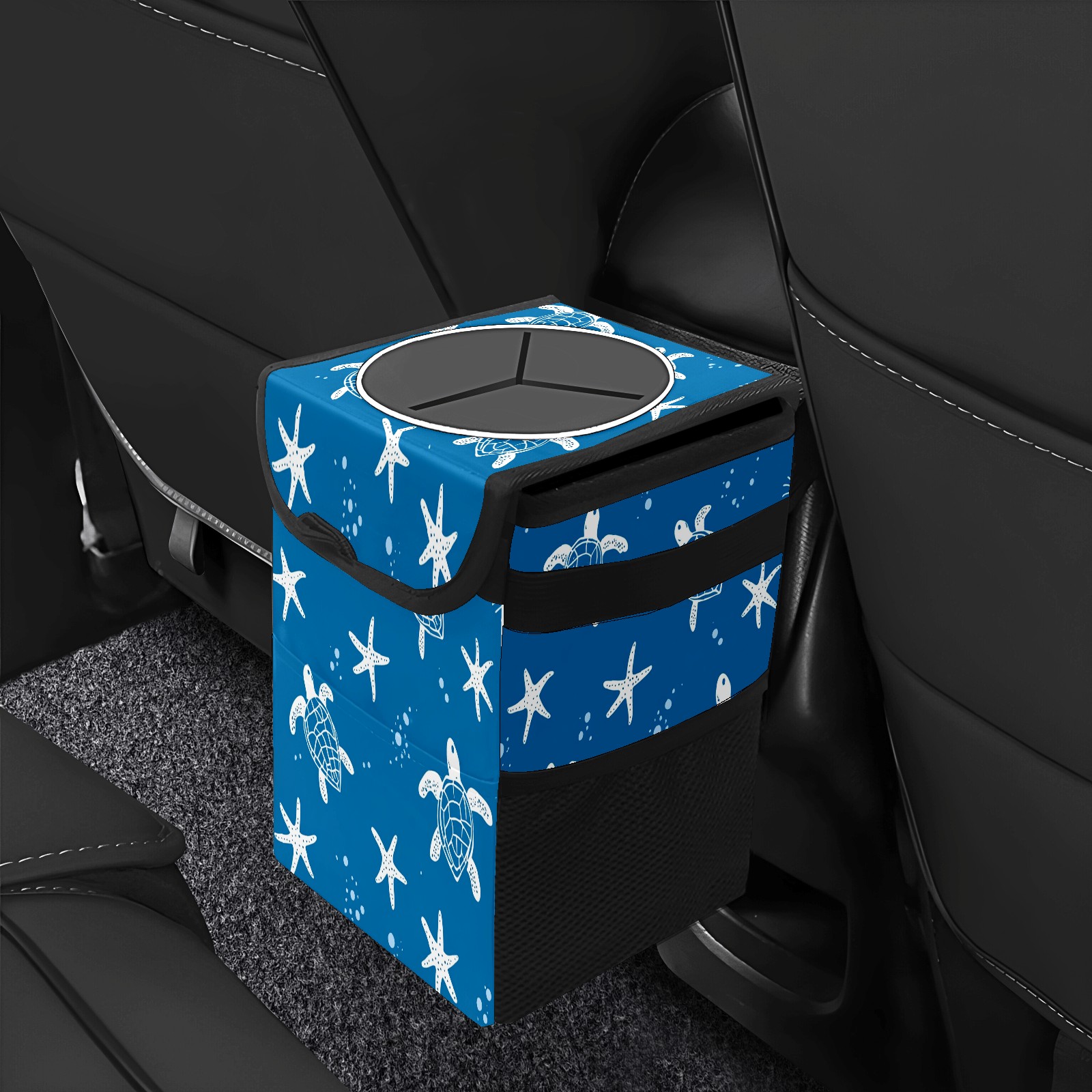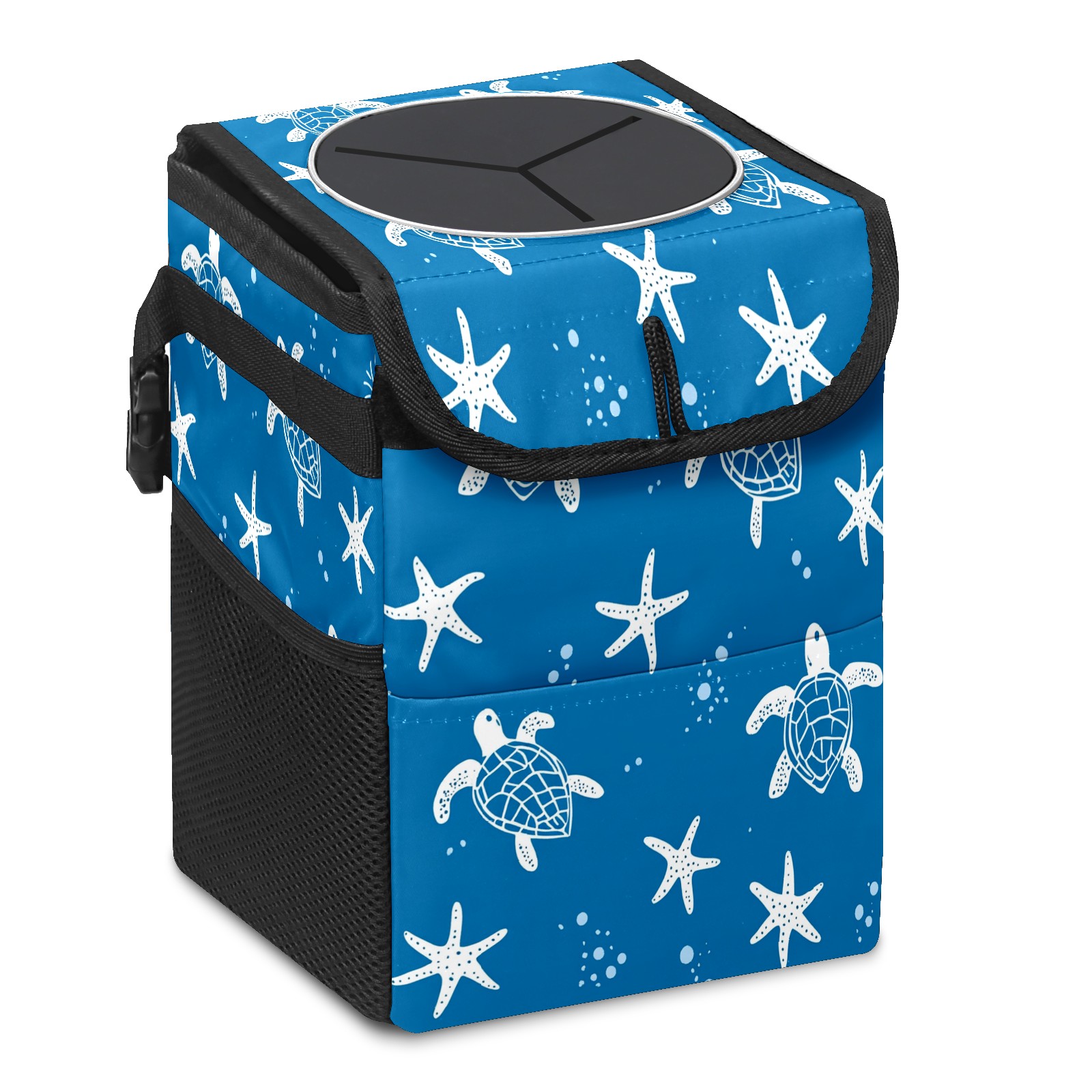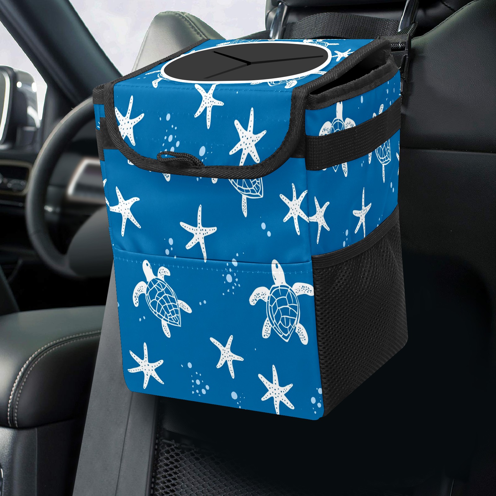 Car Trash Can with Lid, Small Portable Hanging Automotive Garbage Bin for Vehicles, Leakproof Waste Bag Container for SUV Truck Van Interior Auto Travel Road Trips(Turtle Silhouette)