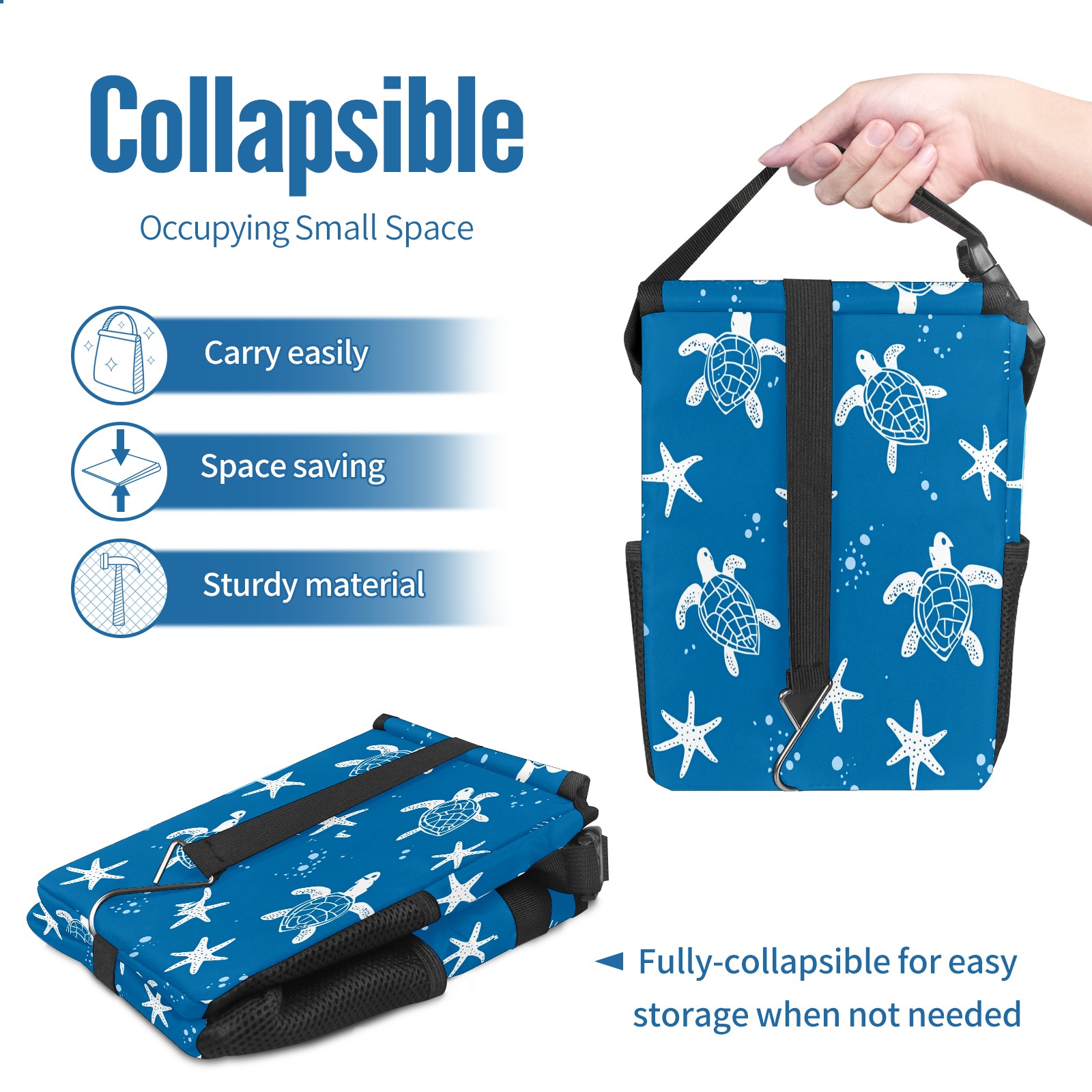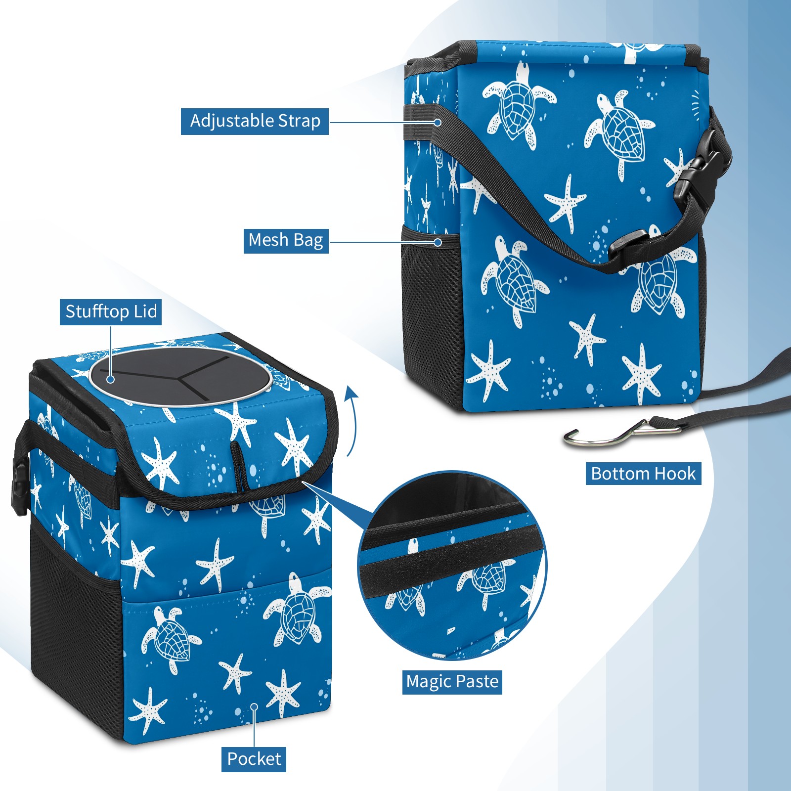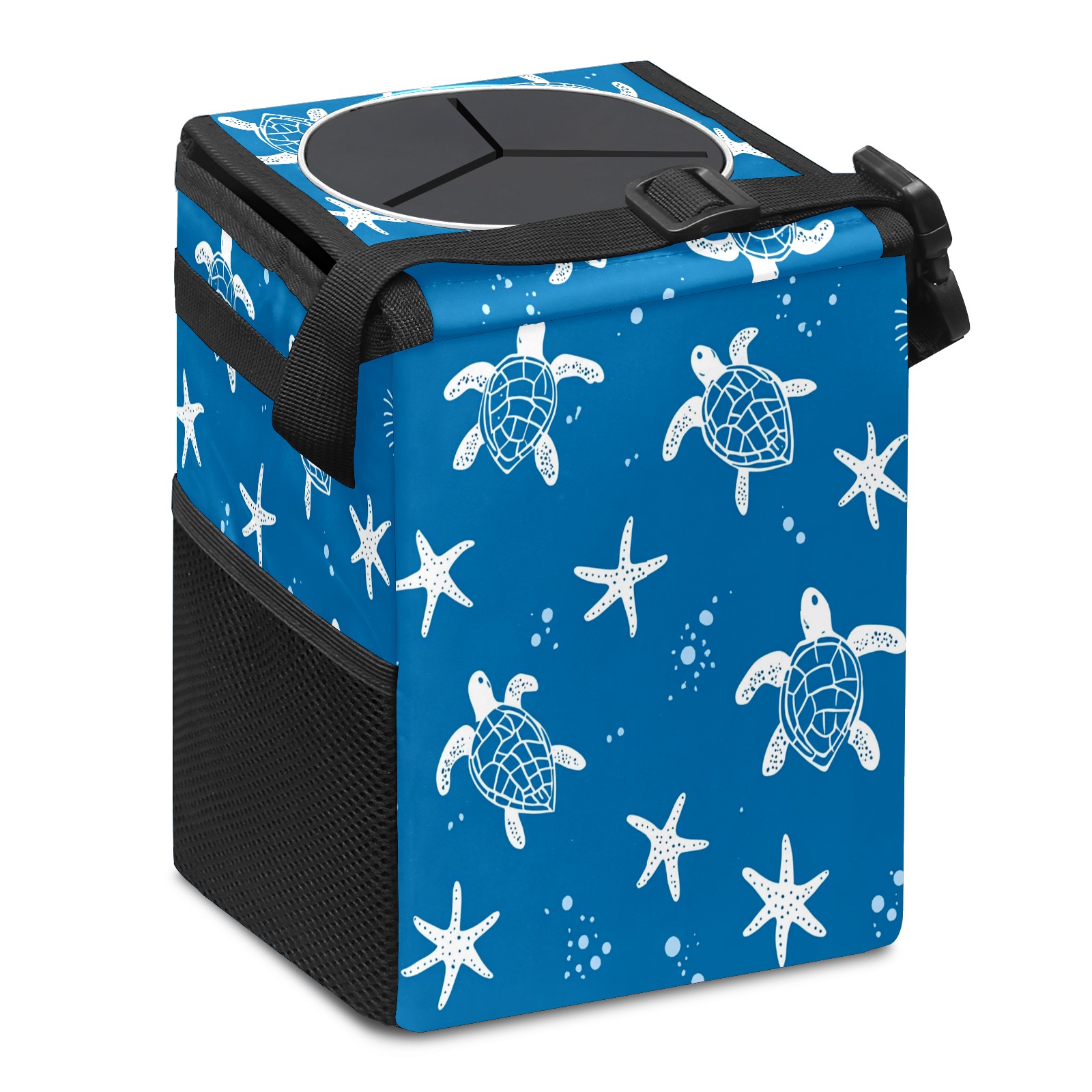 Car Trash Can with Lid, Small Portable Hanging Automotive Garbage Bin for Vehicles, Leakproof Waste Bag Container for SUV Truck Van Interior Auto Travel Road Trips(Turtle Silhouette)