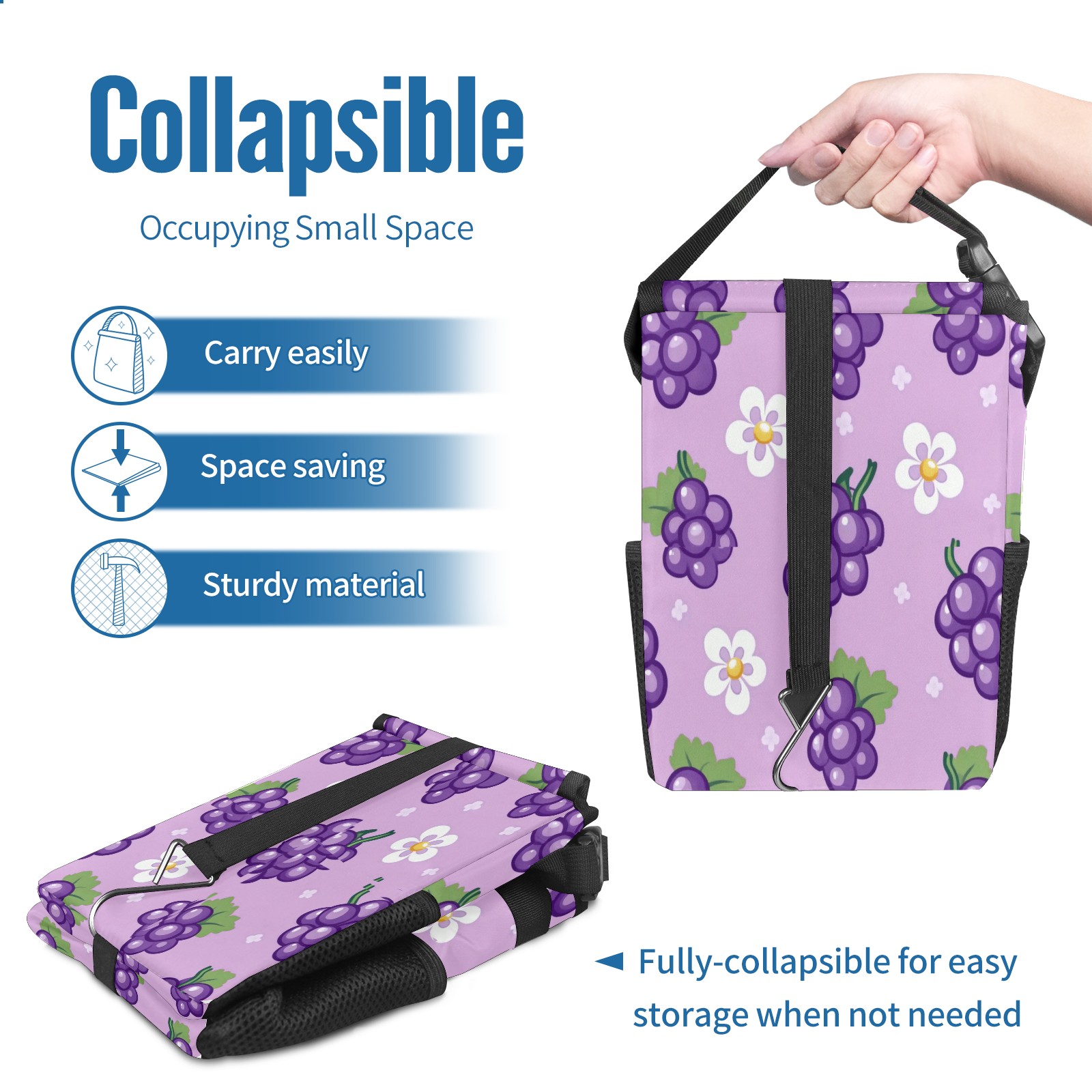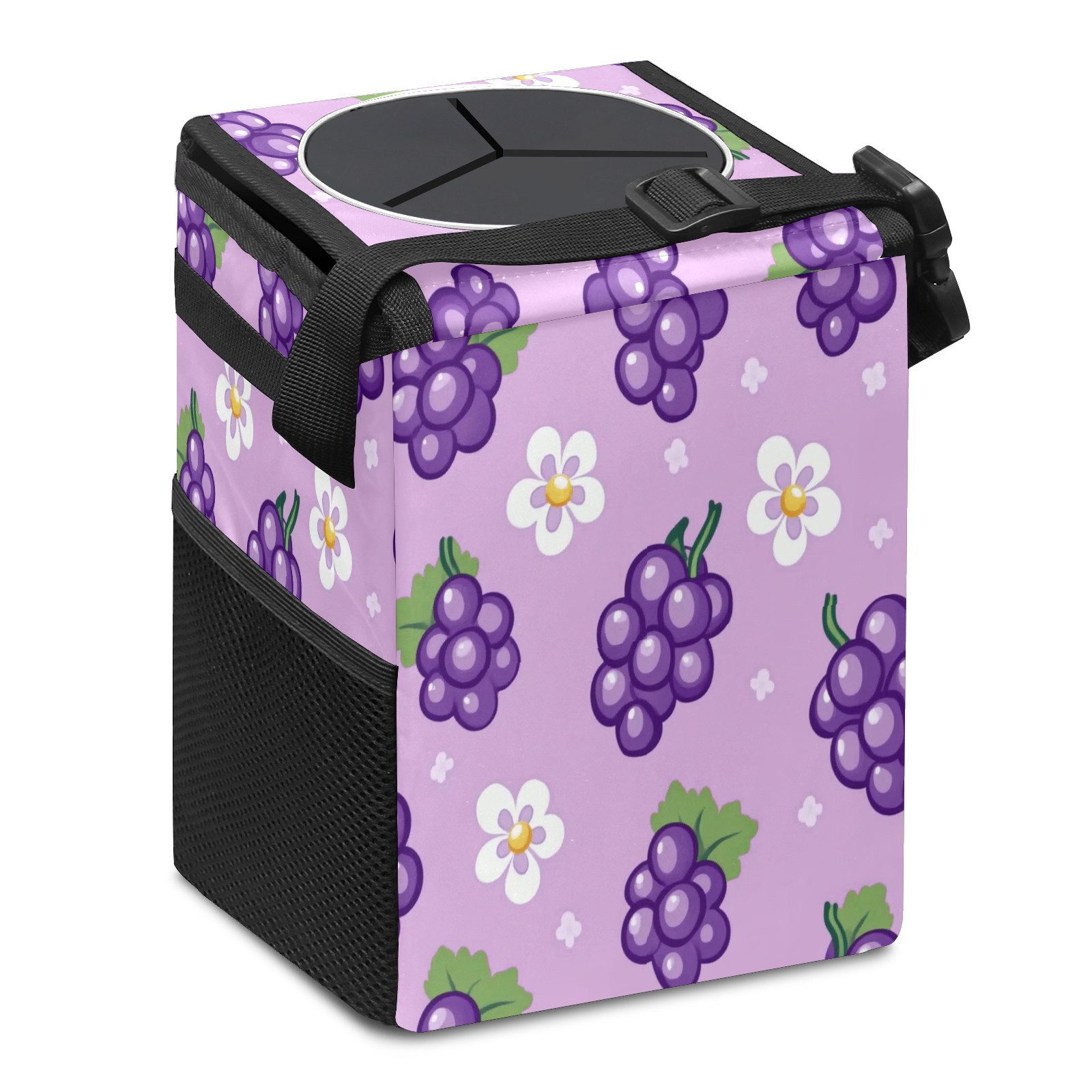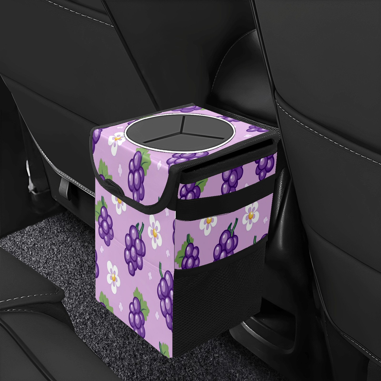 Car Trash Can with Lid, Small Portable Hanging Automotive Garbage Bin for Vehicles, Leakproof Waste Bag Container for SUV Truck Van Interior Auto Travel Road Trips(Grapes And White Flowers)