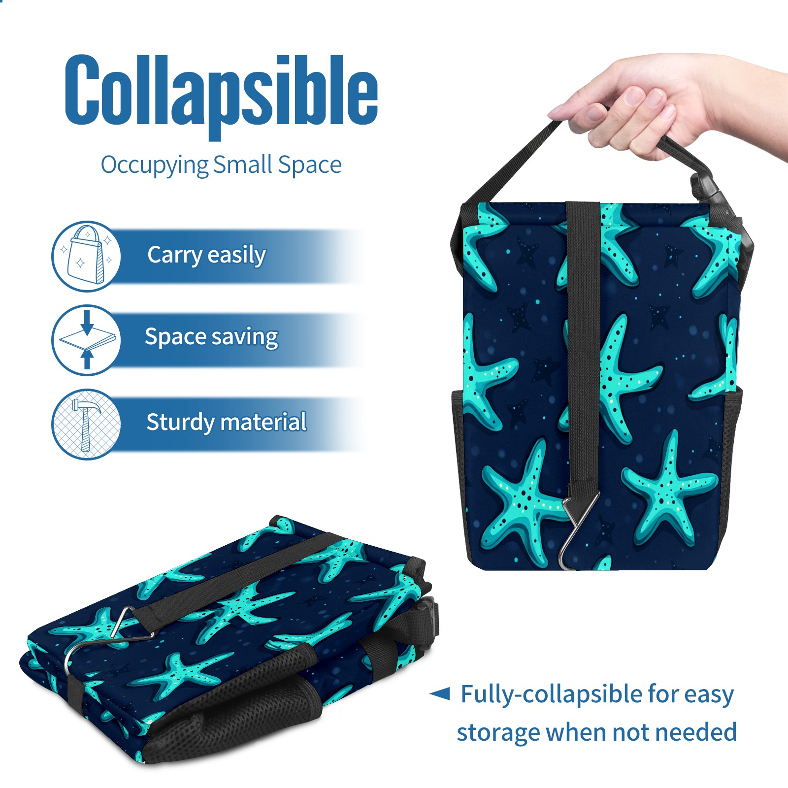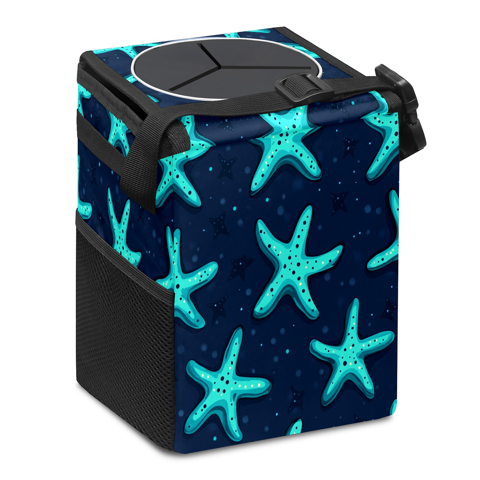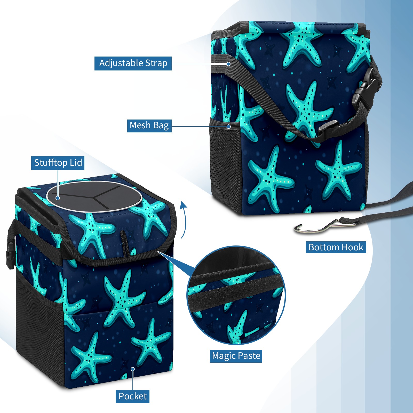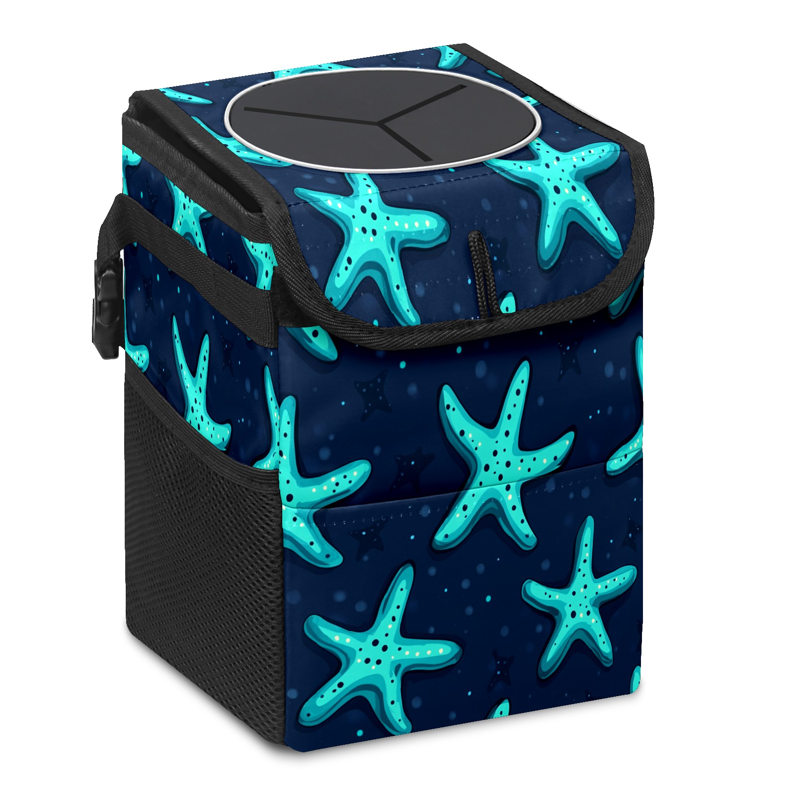Car Trash Can with Lid, Small Portable Hanging Automotive Garbage Bin for Vehicles, Leakproof Waste Bag Container for SUV Truck Van Interior Auto Travel Road Trips(Starfish)