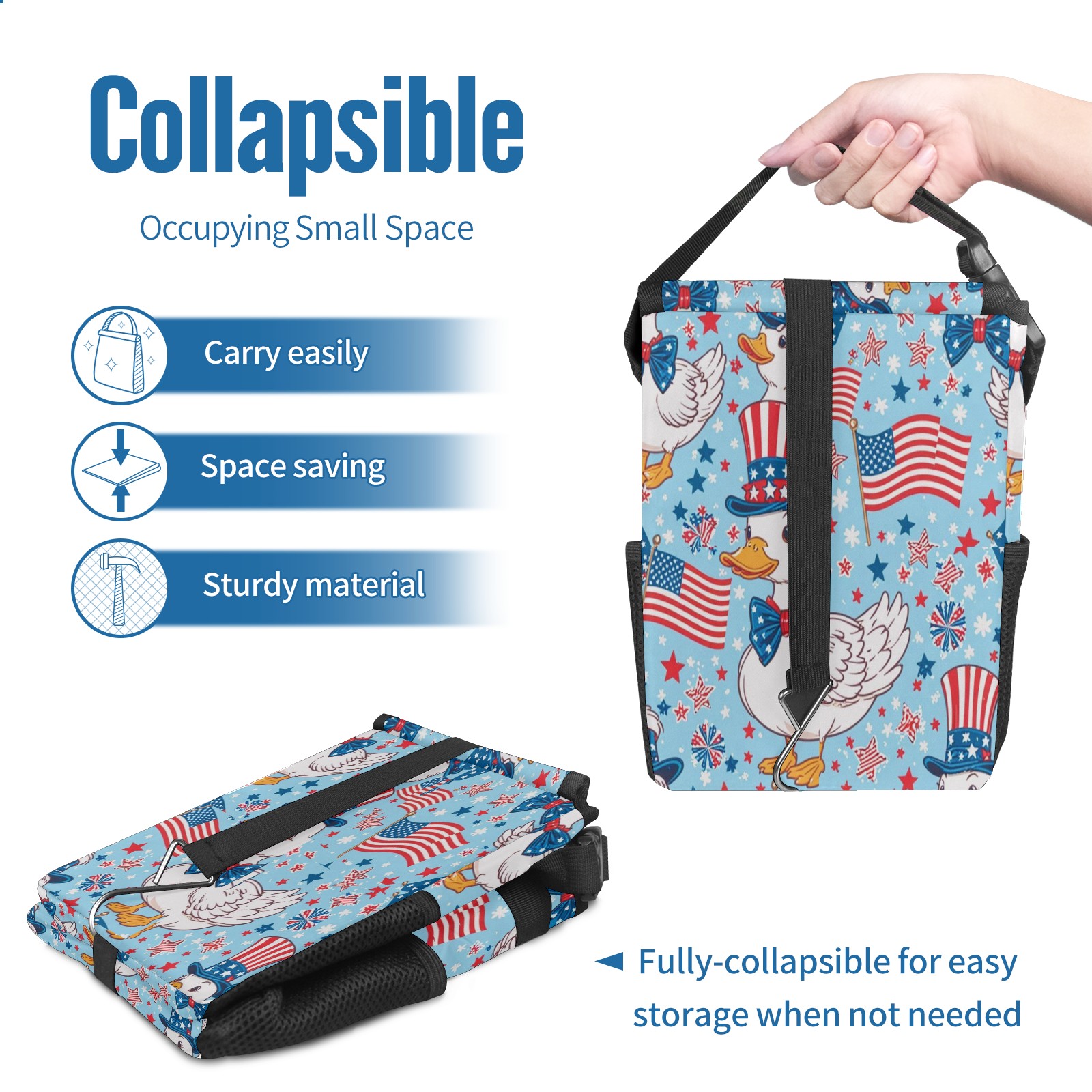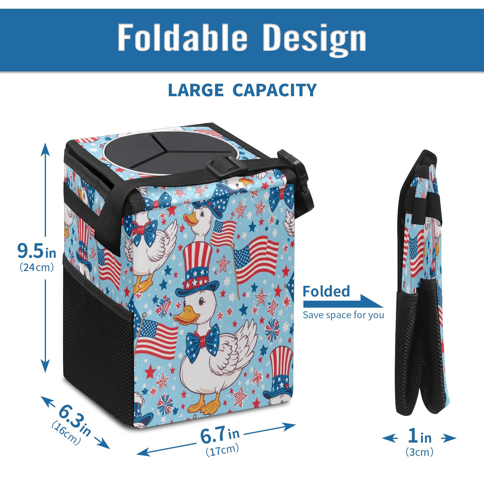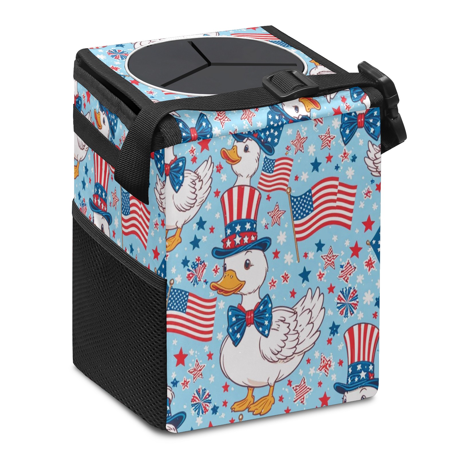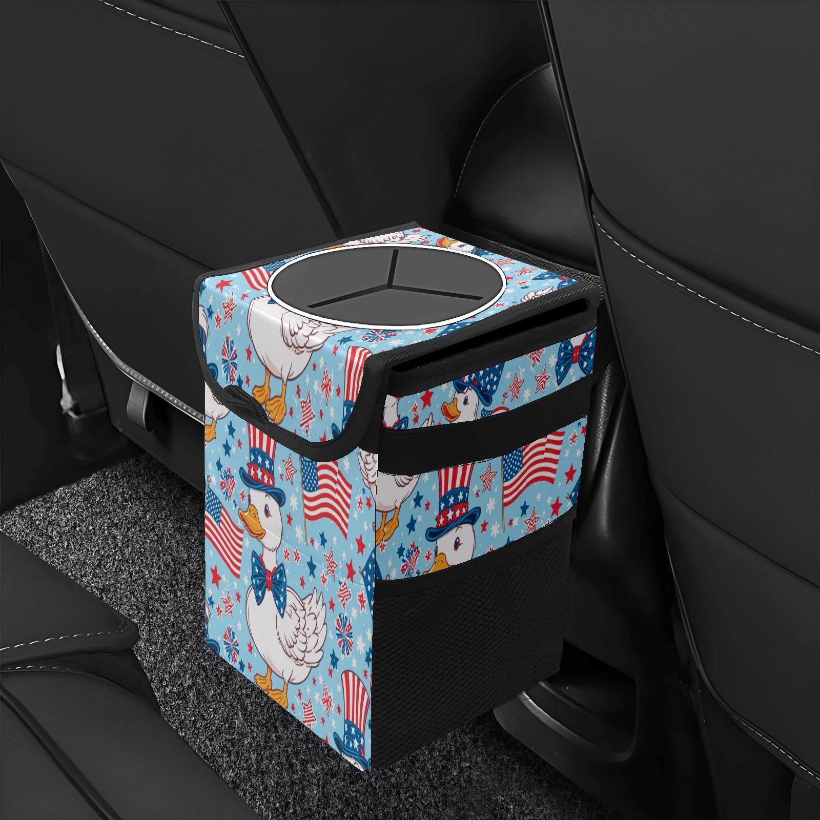 Car Trash Can with Lid, Small Portable Hanging Automotive Garbage Bin for Vehicles, Leakproof Waste Bag Container for SUV Truck Van Interior Auto Travel Road Trips(American Flag And Ducks)