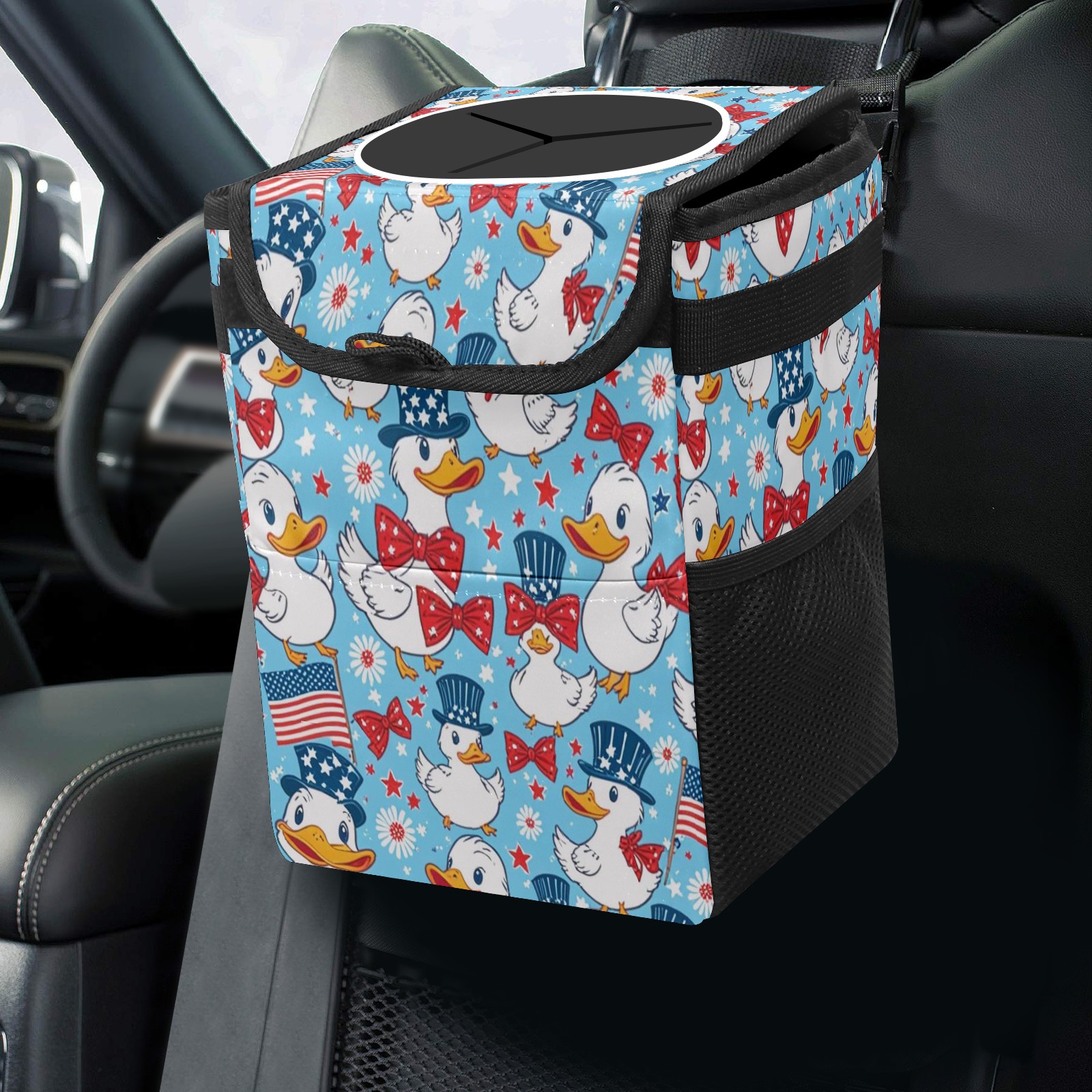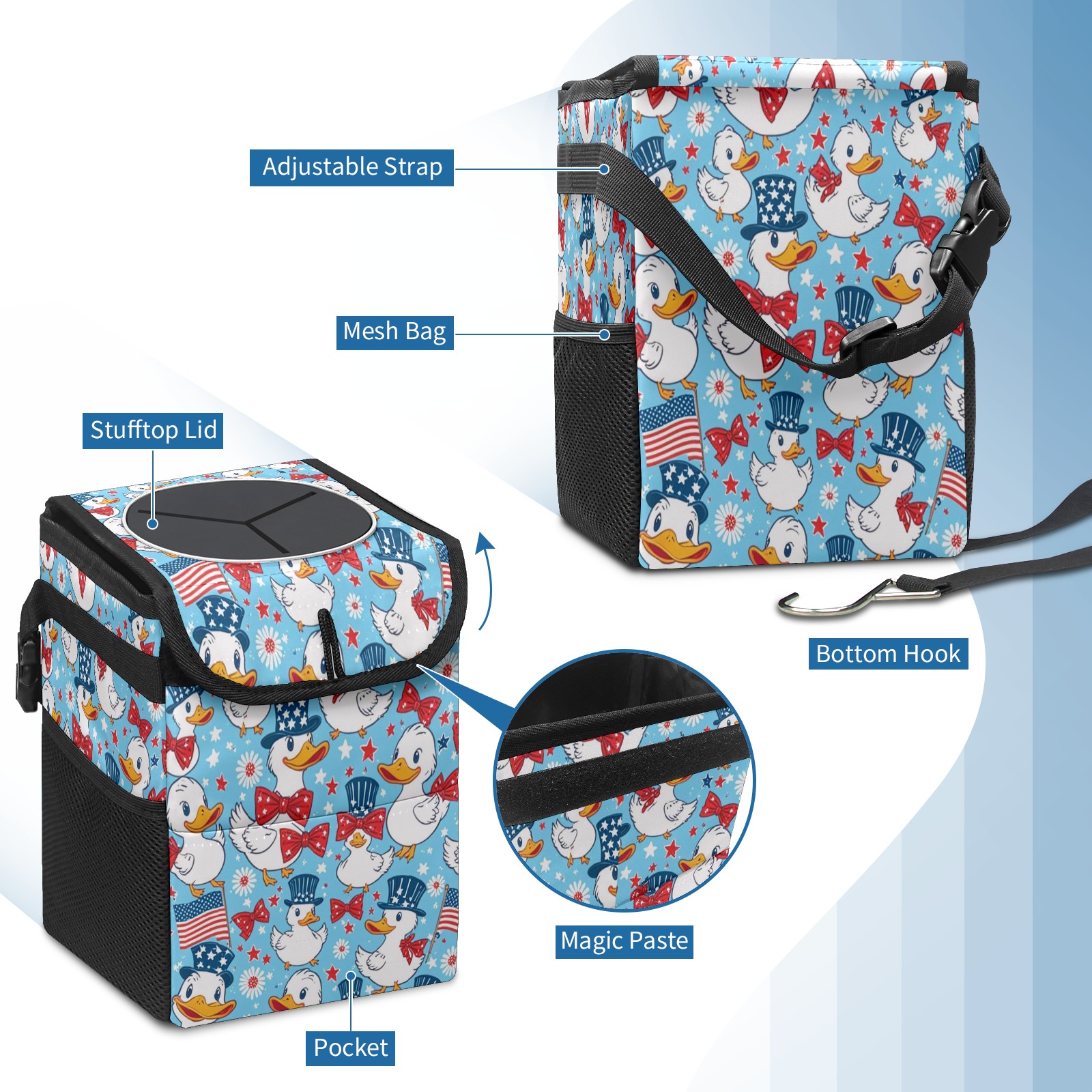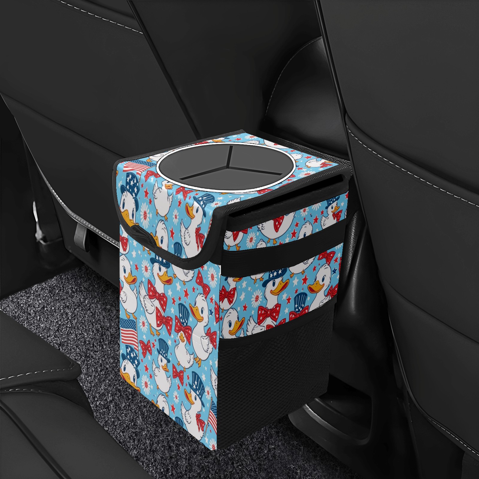 Car Trash Can with Lid, Small Portable Hanging Automotive Garbage Bin for Vehicles, Leakproof Waste Bag Container for SUV Truck Van Interior Auto Travel Road Trips(American Duck)