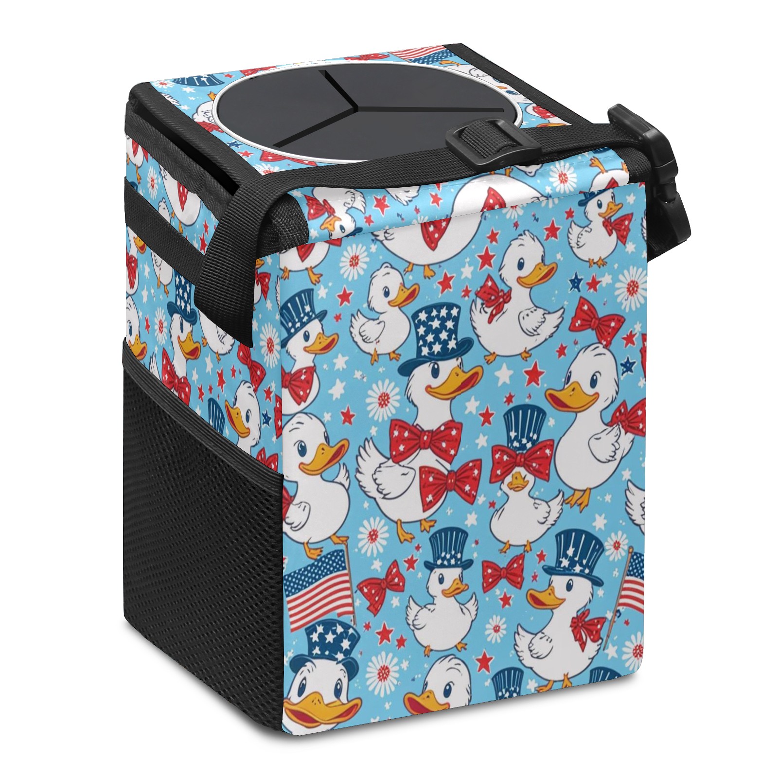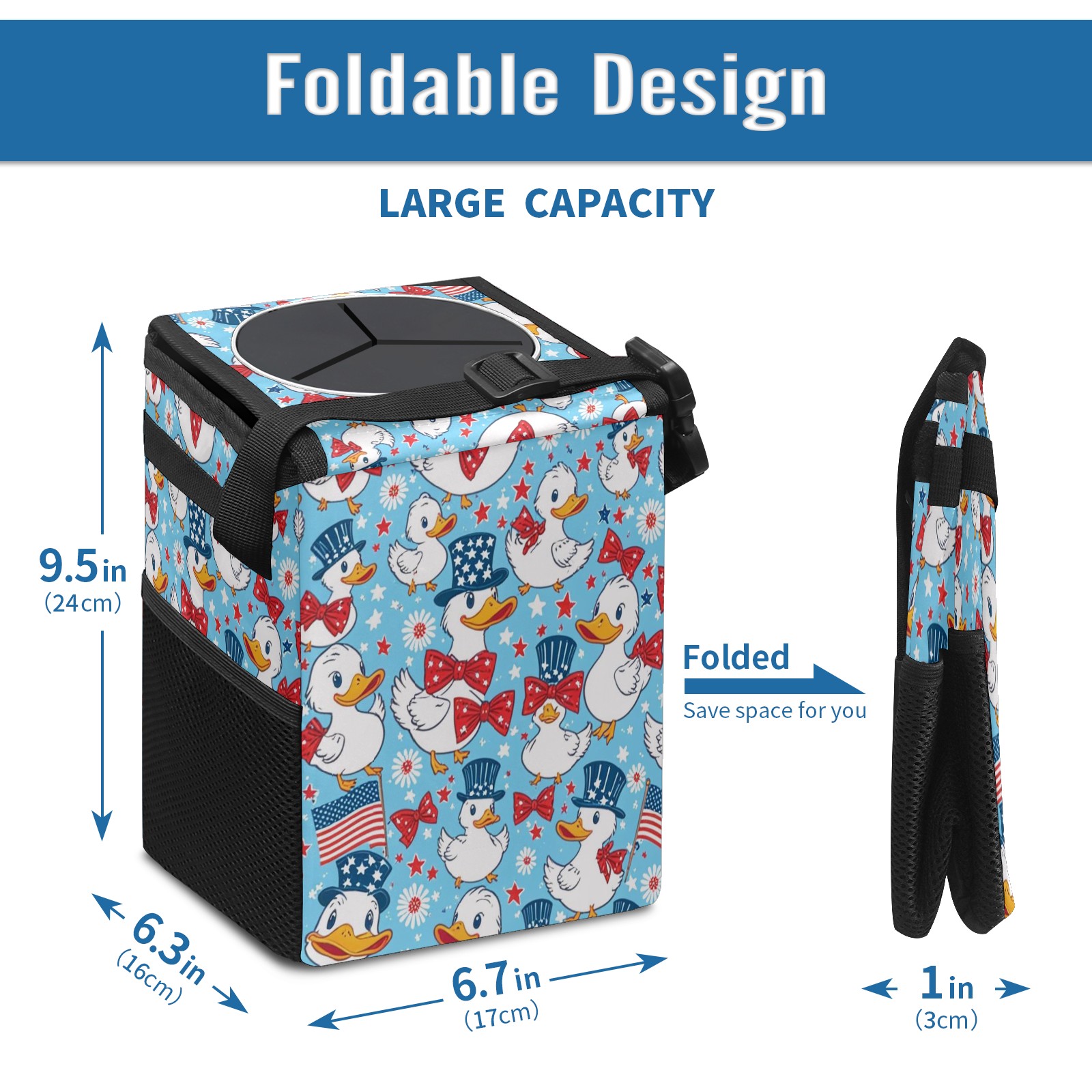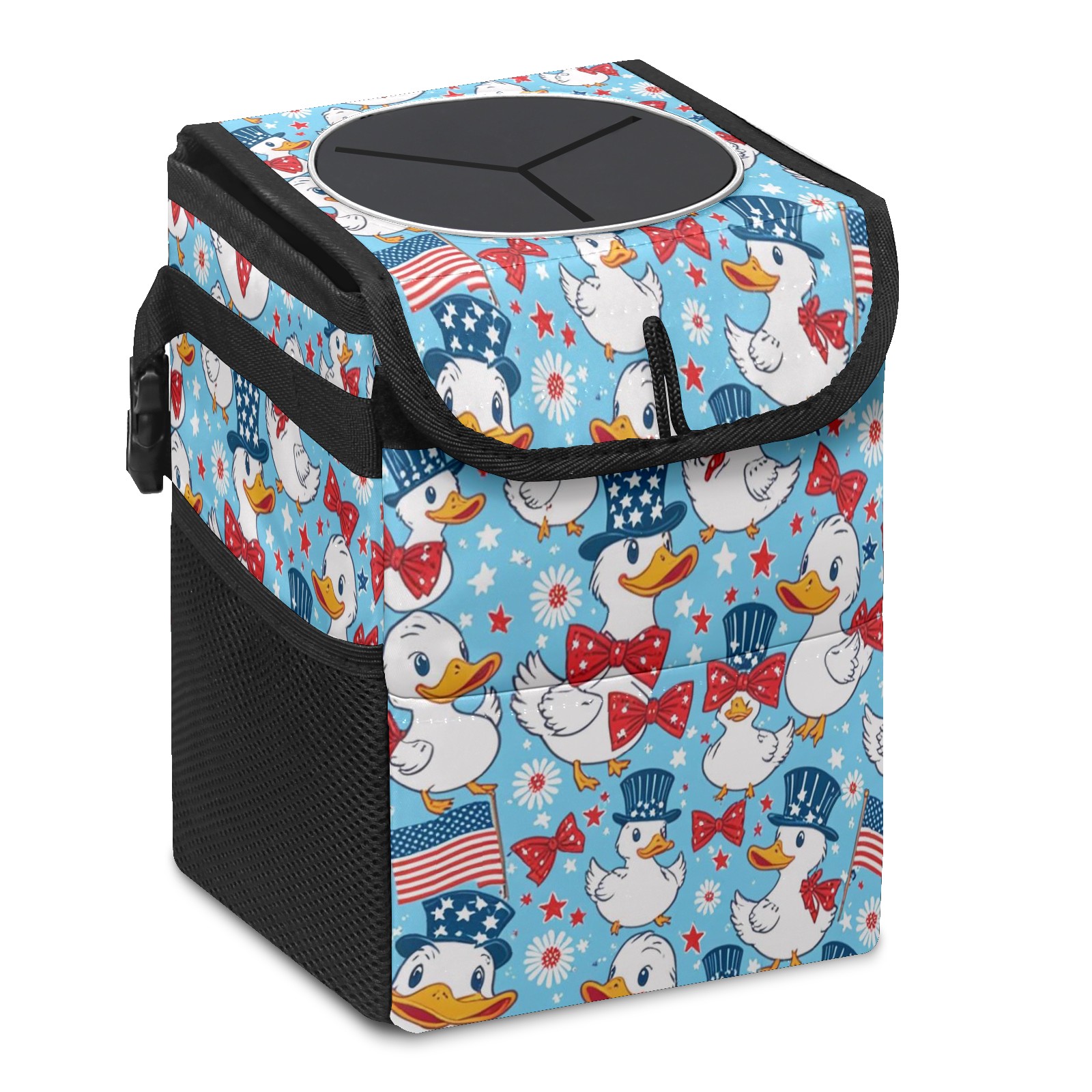 Car Trash Can with Lid, Small Portable Hanging Automotive Garbage Bin for Vehicles, Leakproof Waste Bag Container for SUV Truck Van Interior Auto Travel Road Trips(American Duck)