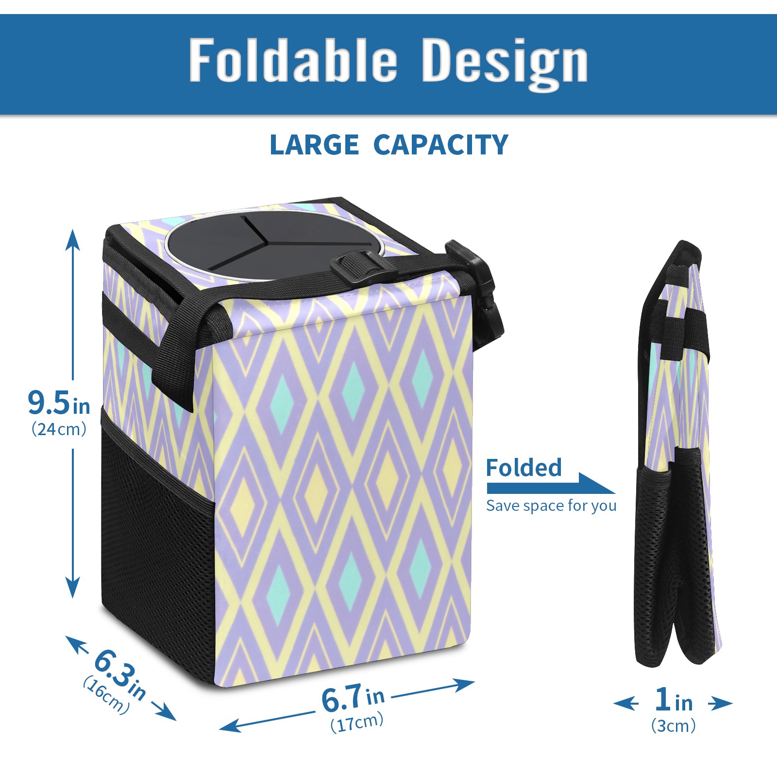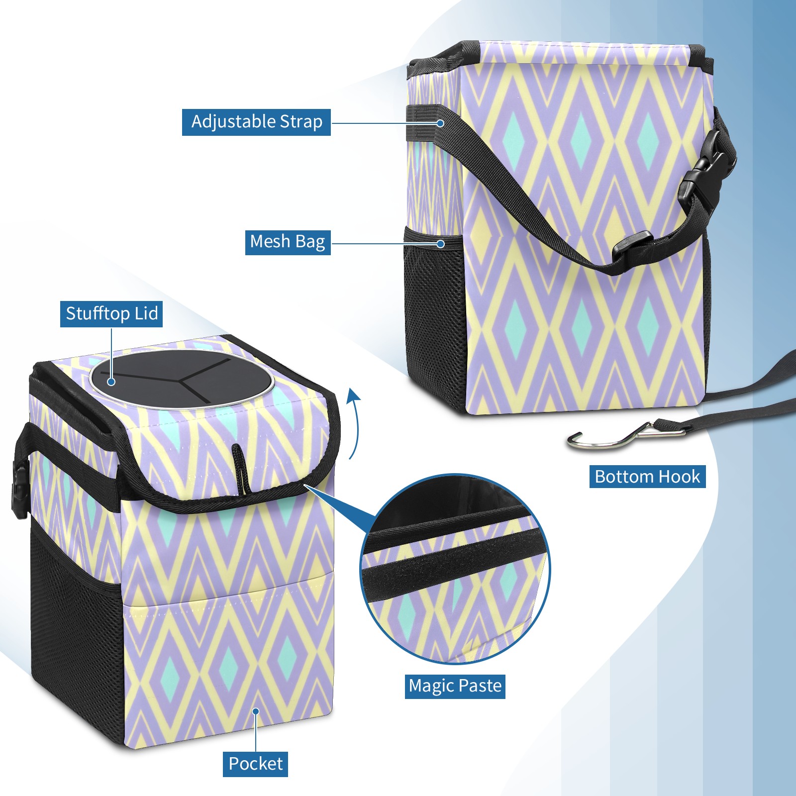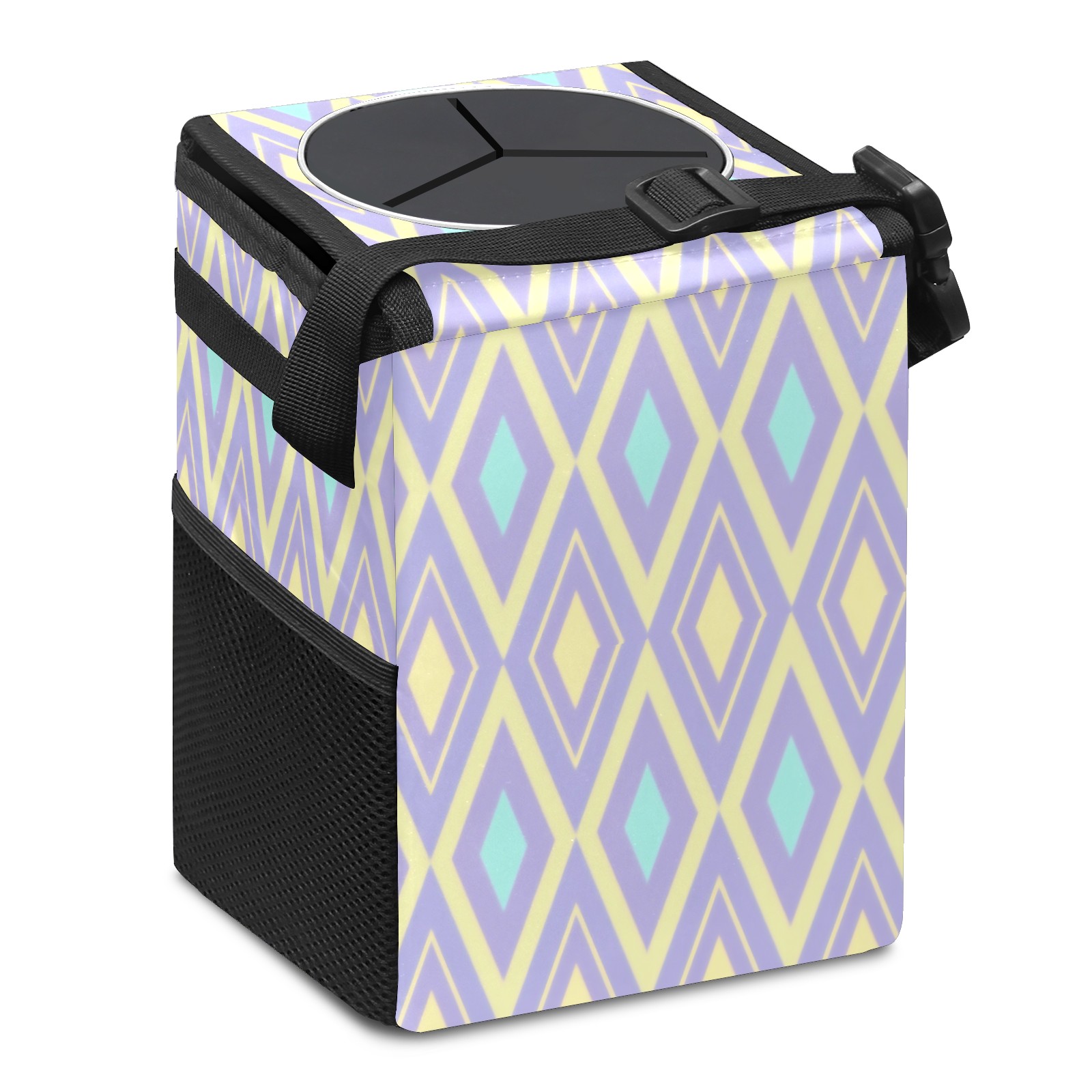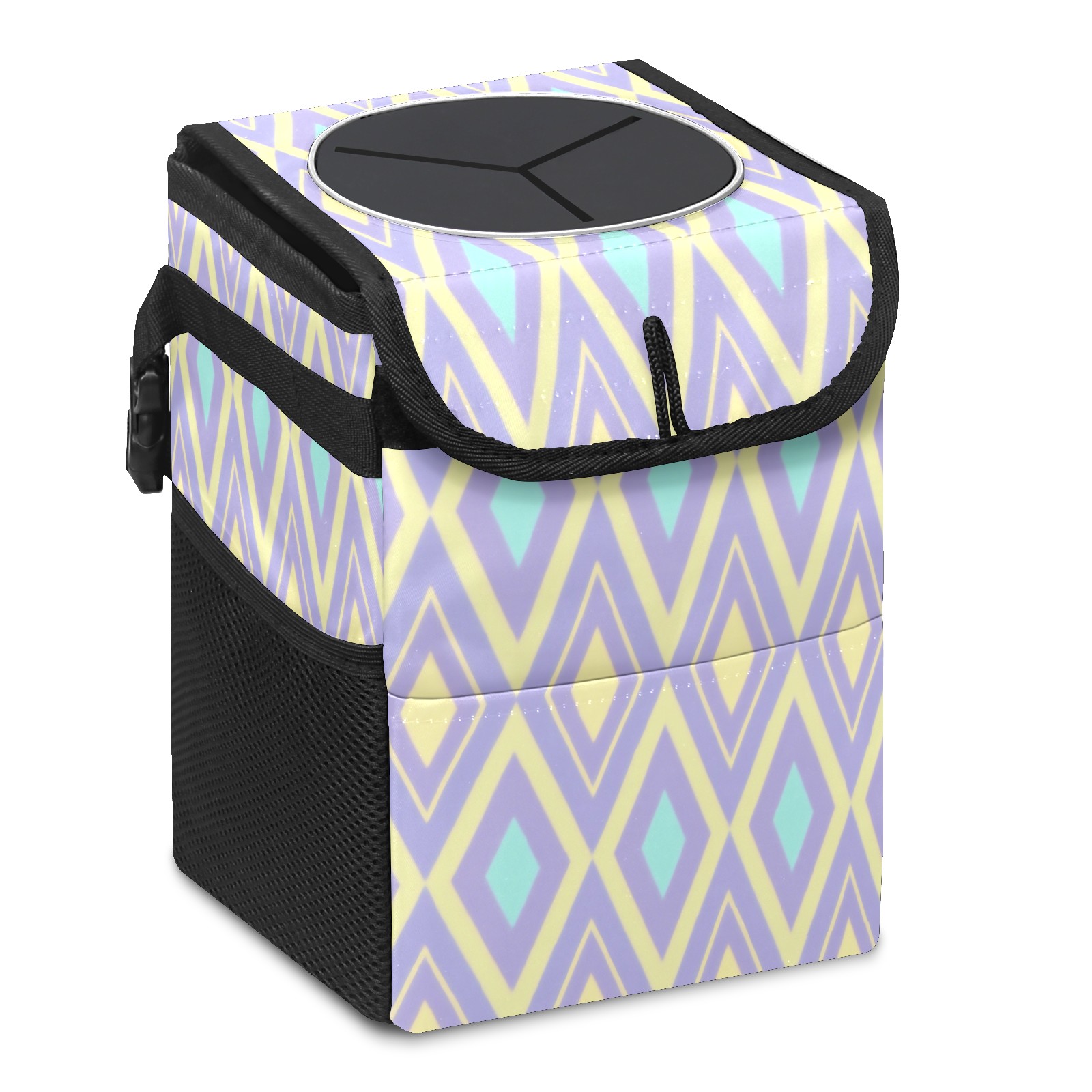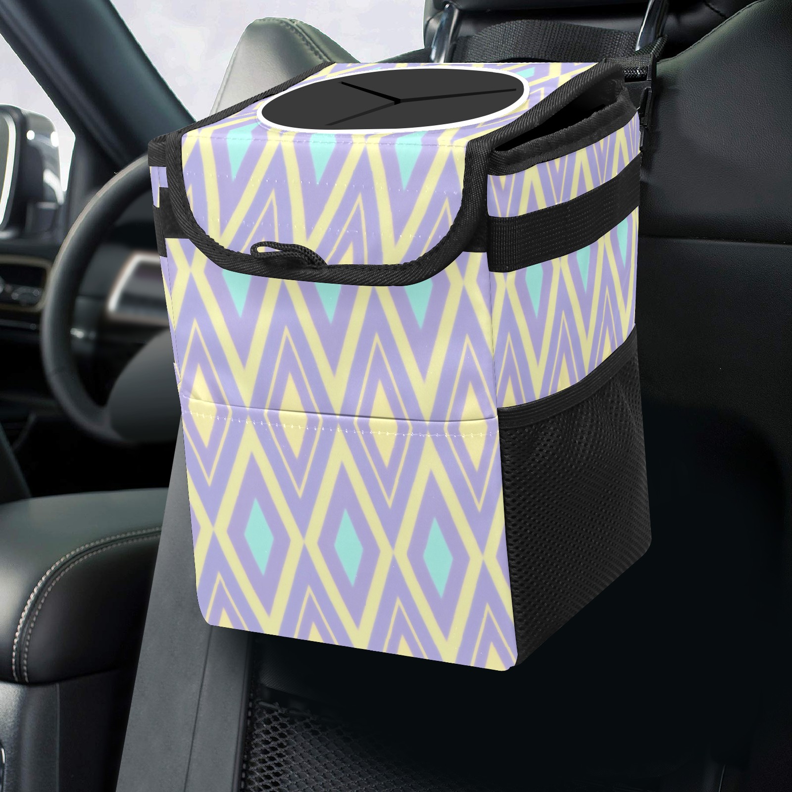 Car Trash Can with Lid, Small Portable Hanging Automotive Garbage Bin for Vehicles, Leakproof Waste Bag Container for SUV Truck Van Interior Auto Travel Road Trips(Purple Yellow Plaid)