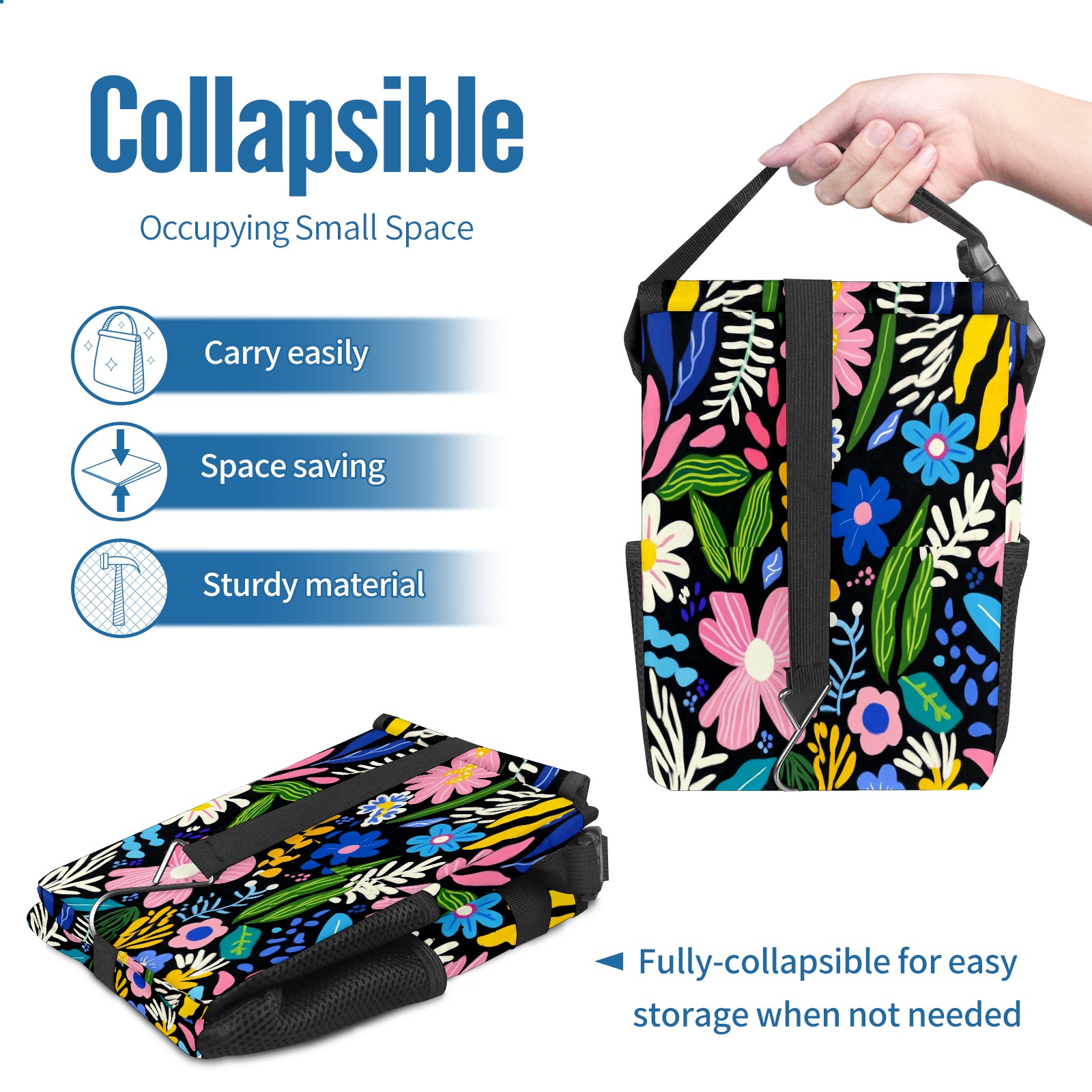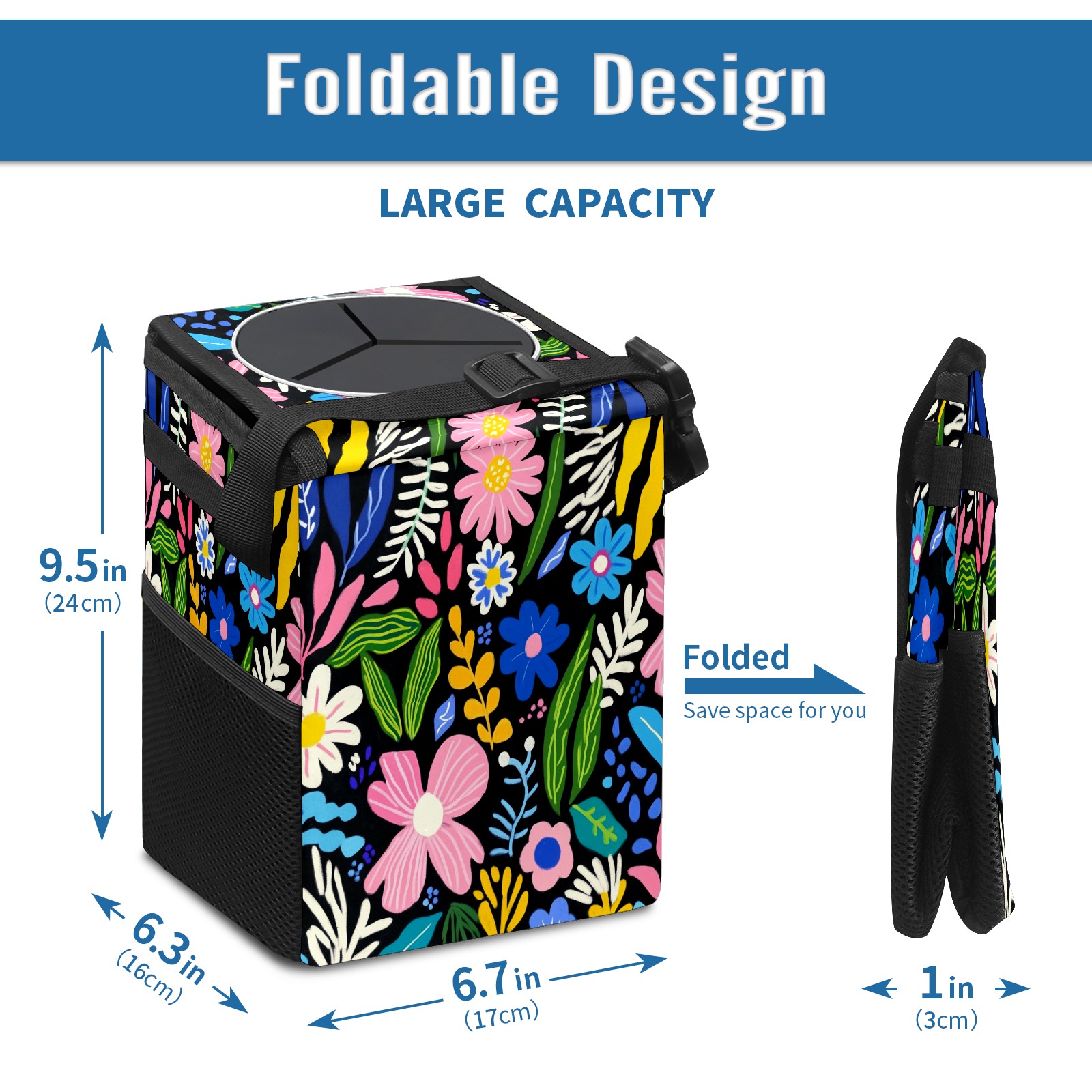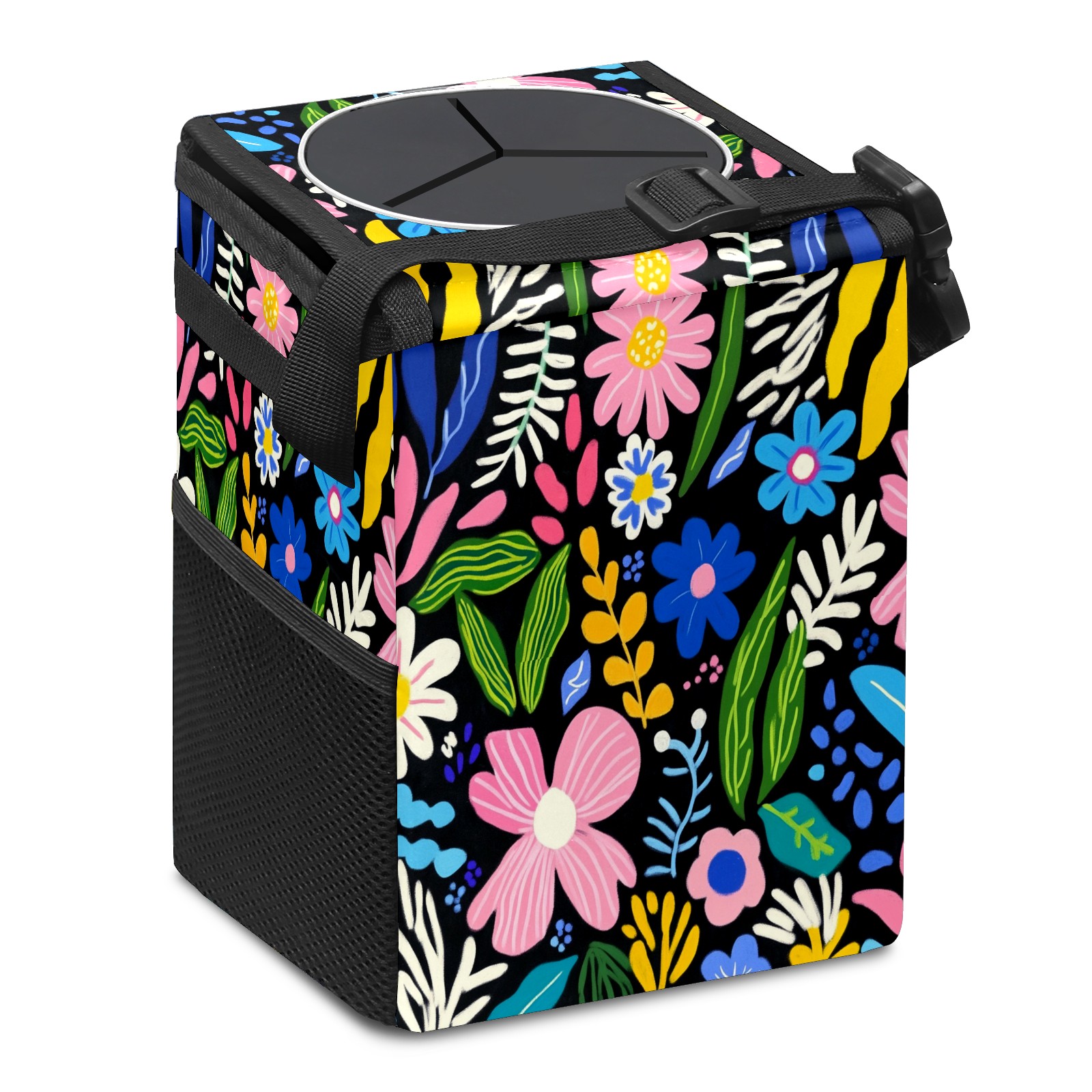 Car Trash Can with Lid, Small Portable Hanging Automotive Garbage Bin for Vehicles, Leakproof Waste Bag Container for SUV Truck Van Interior Auto Travel Road Trips(Various Flowers)