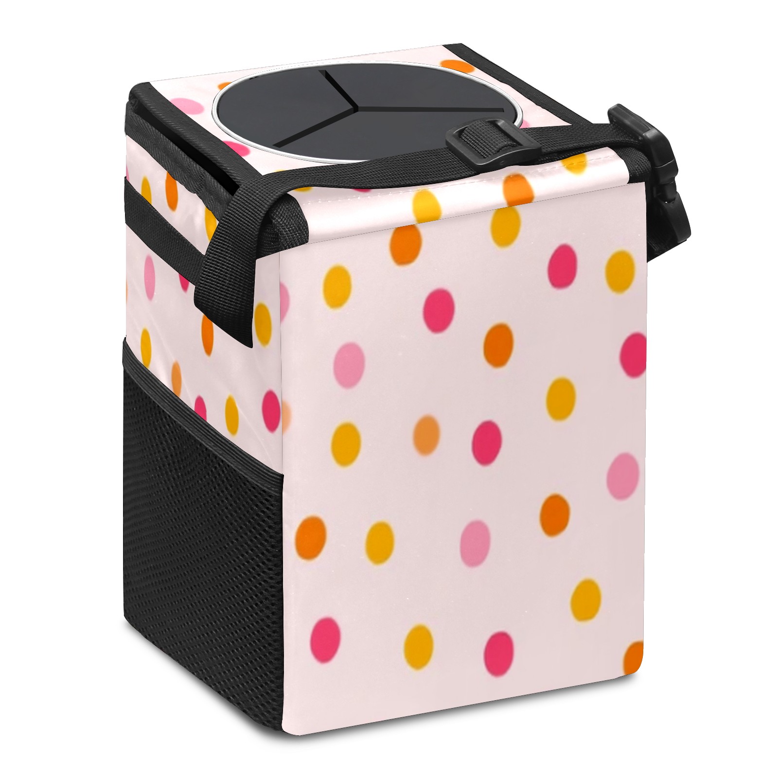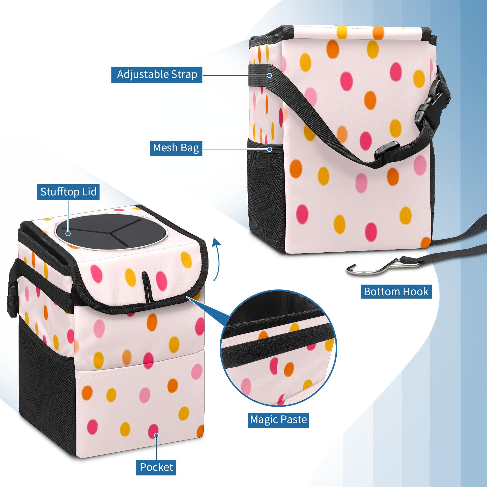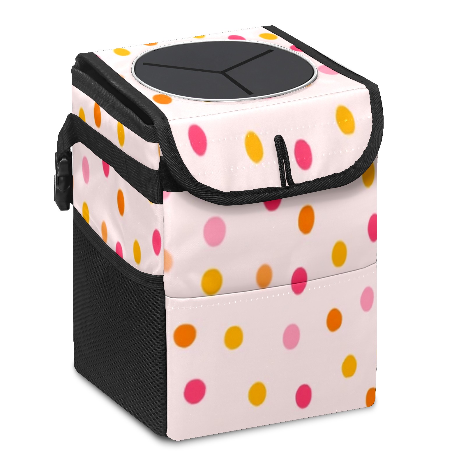 Car Trash Can with Lid, Small Portable Hanging Automotive Garbage Bin for Vehicles, Leakproof Waste Bag Container for SUV Truck Van Interior Auto Travel Road Trips(Pink Polka Dot)