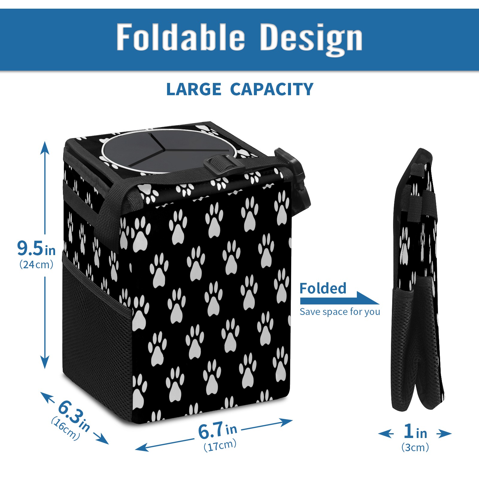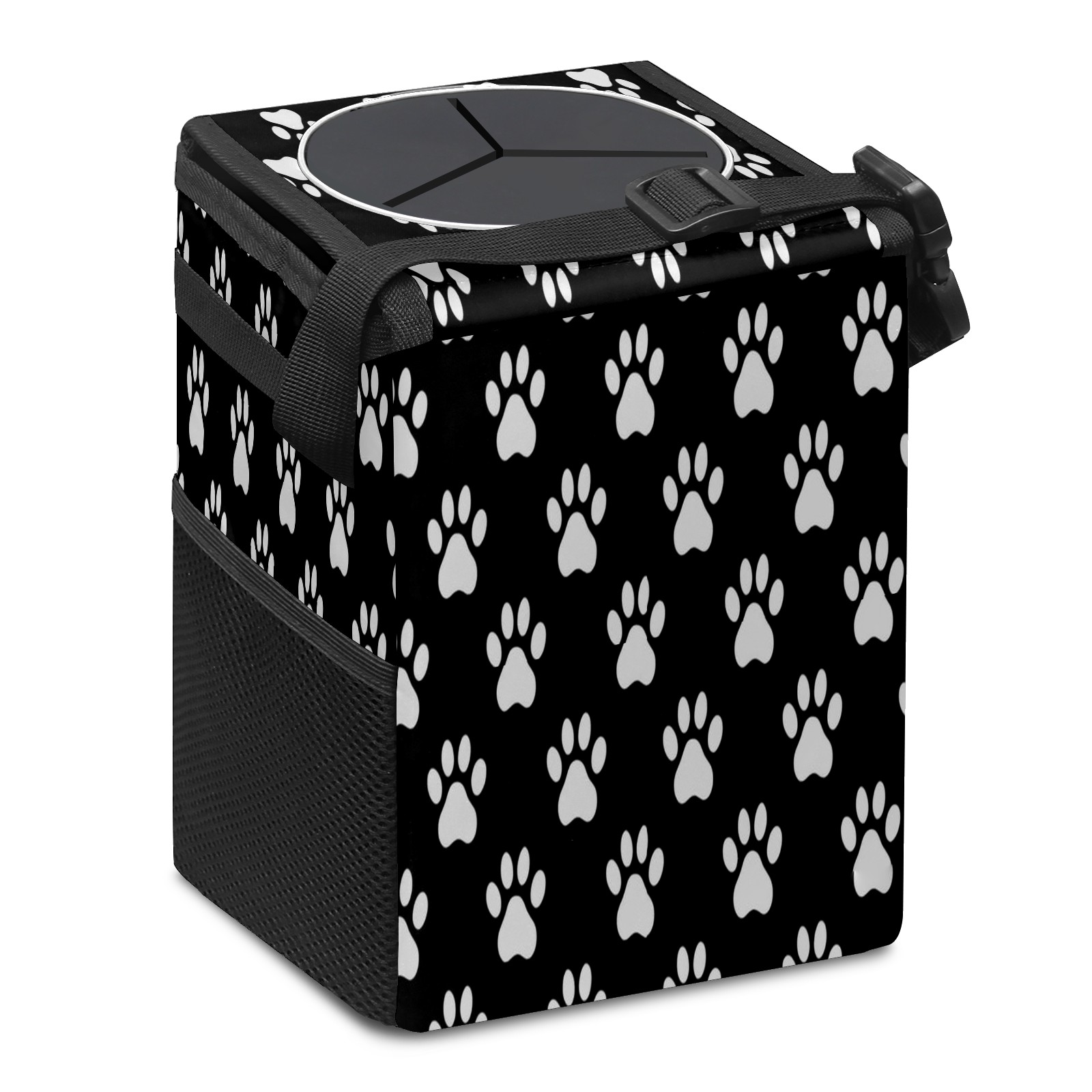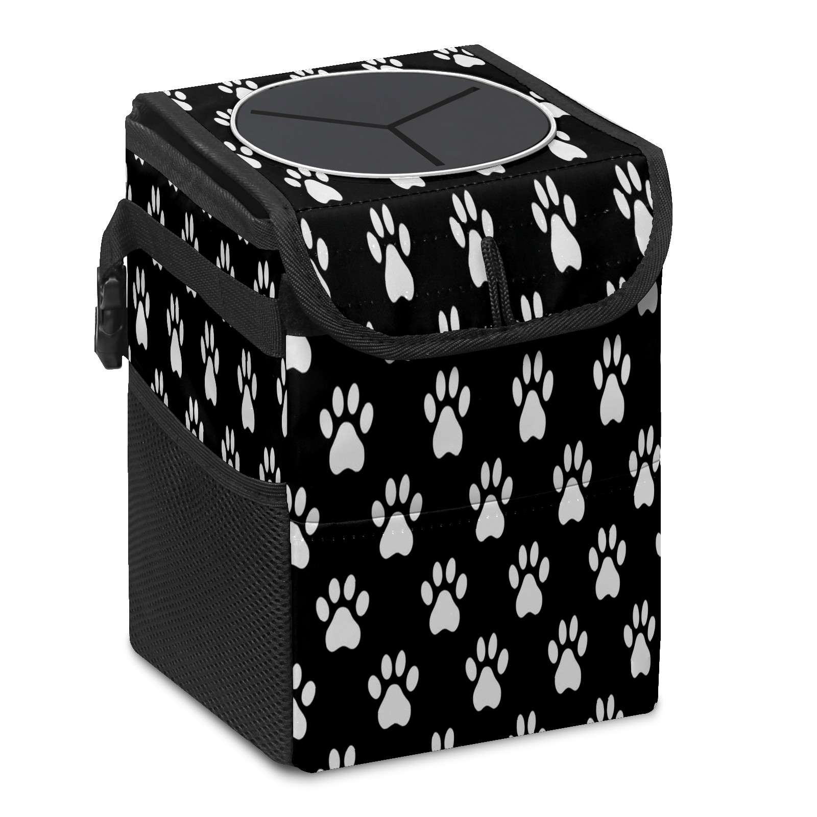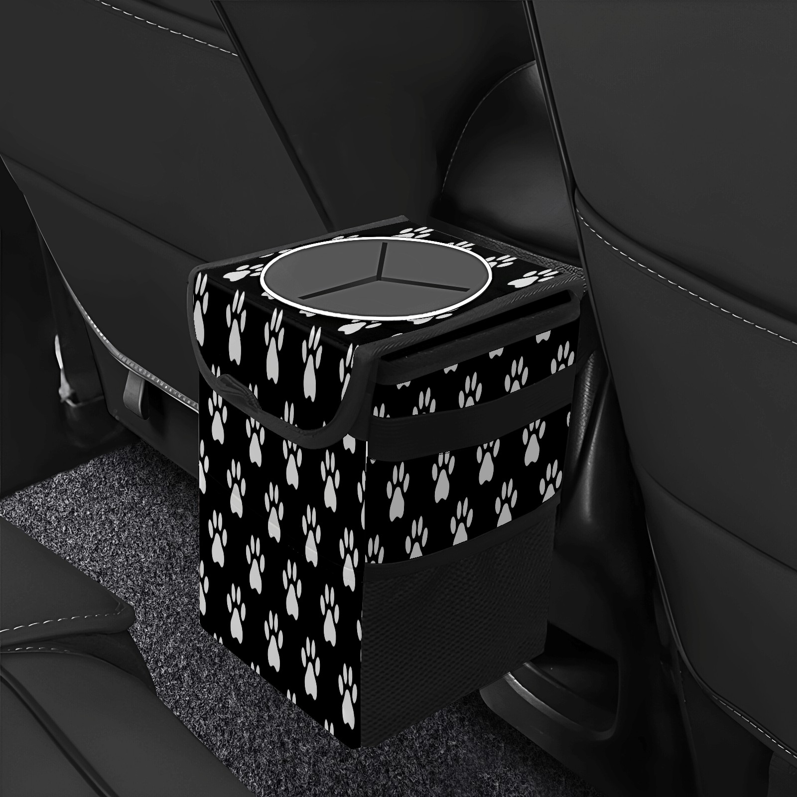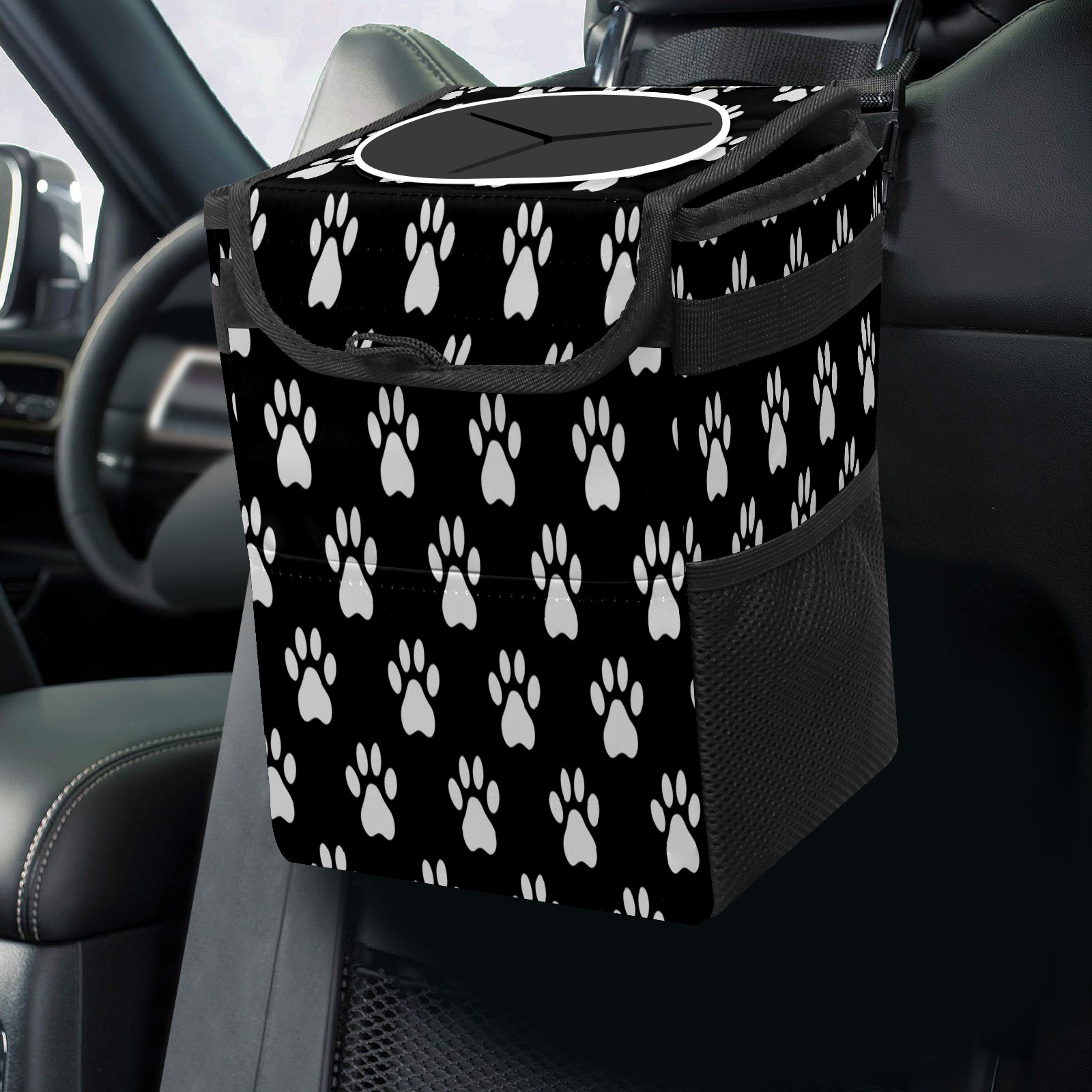 Car Trash Can with Lid, Small Portable Hanging Automotive Garbage Bin for Vehicles, Leakproof Waste Bag Container for SUV Truck Van Interior Auto Travel Road Trips(Paw Print)