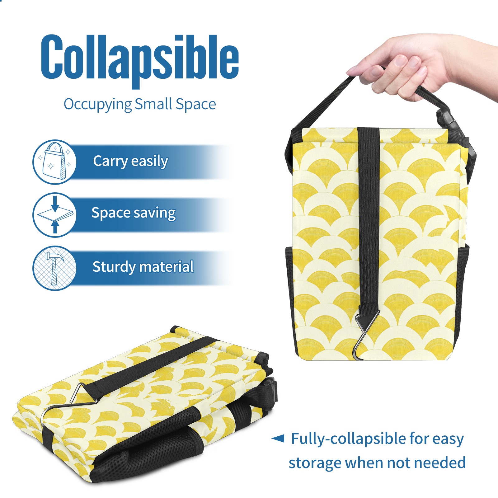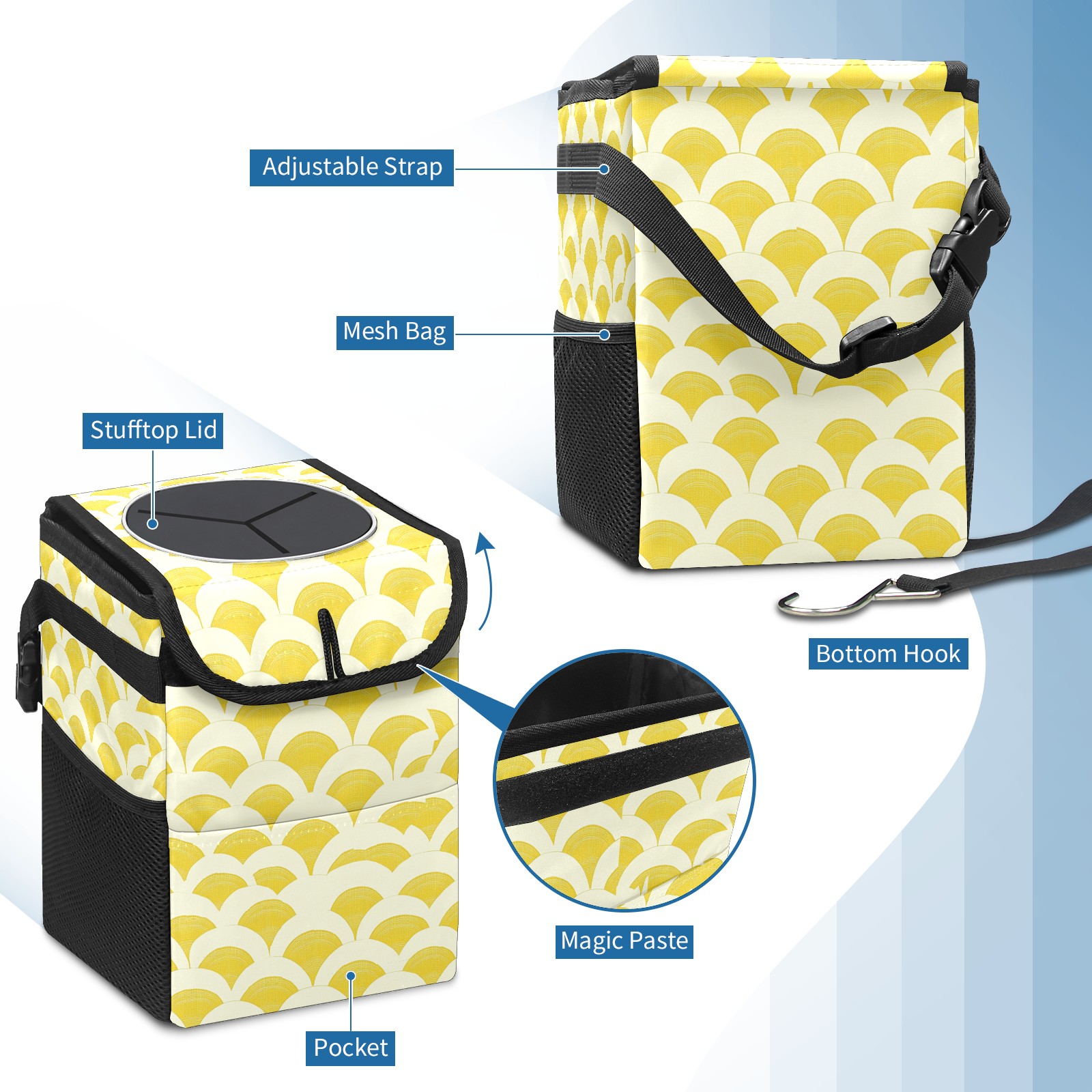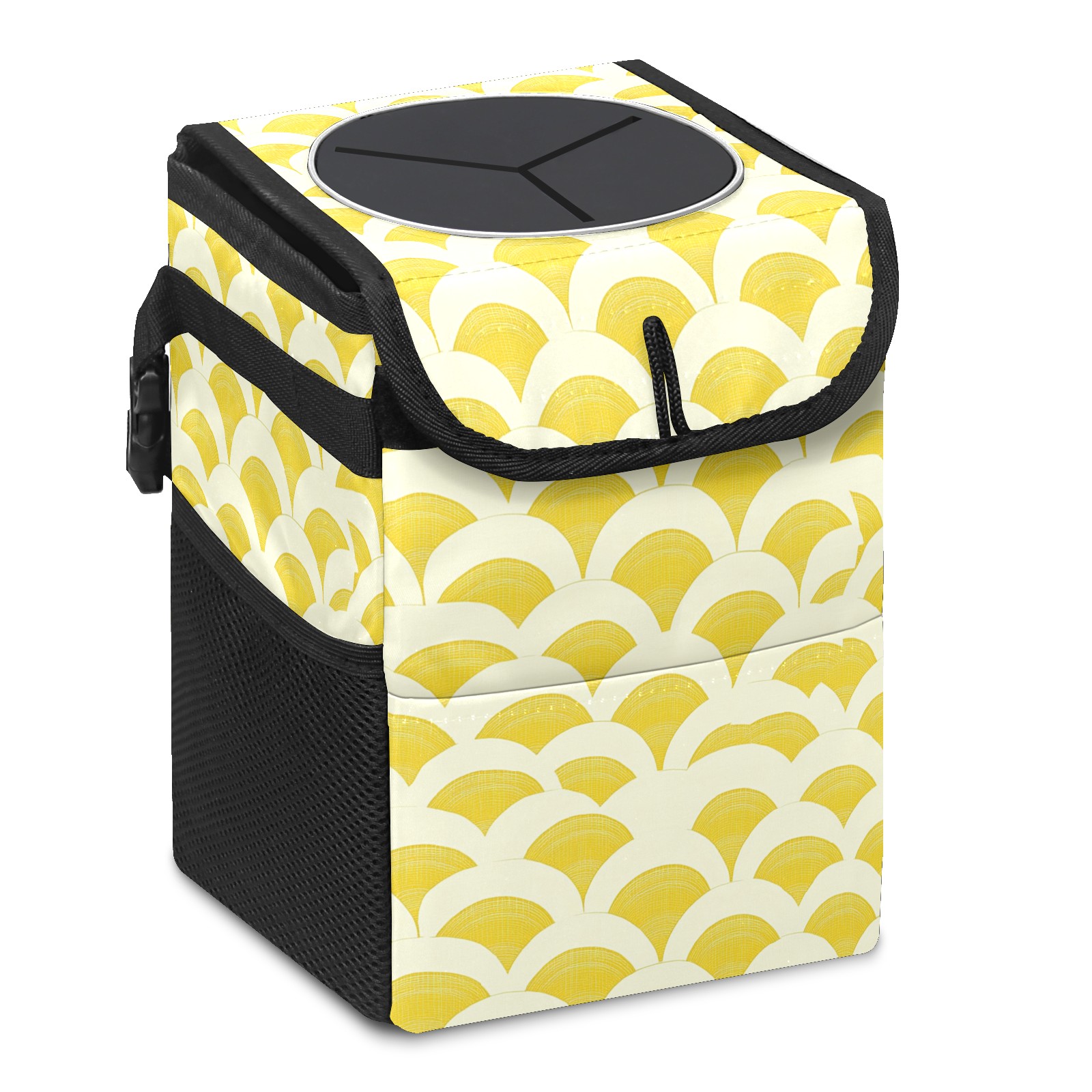 Car Trash Can with Lid, Small Portable Hanging Automotive Garbage Bin for Vehicles, Leakproof Waste Bag Container for SUV Truck Van Interior Auto Travel Road Trips(Japanese-inspired Geometric)